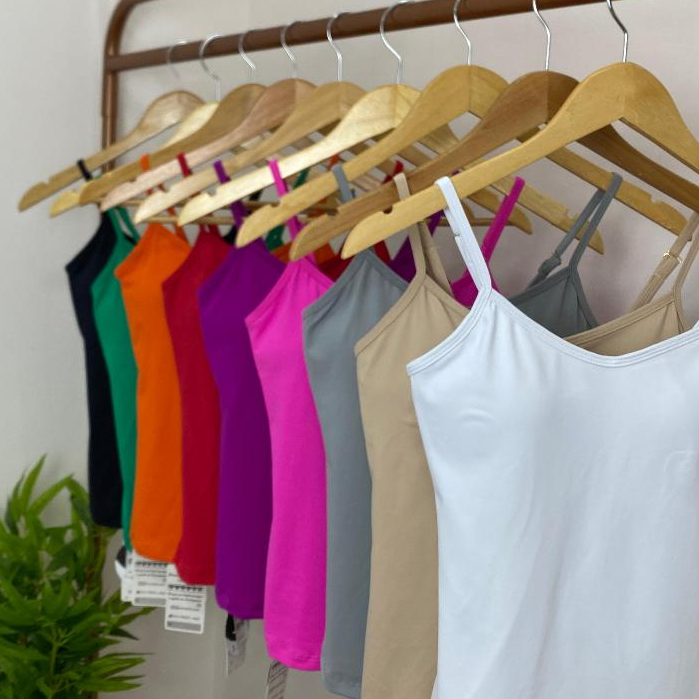 Regata Feminina Regulável Suplex Liso Bojo Alcinha Verão Decotada Básica Calor Confortável