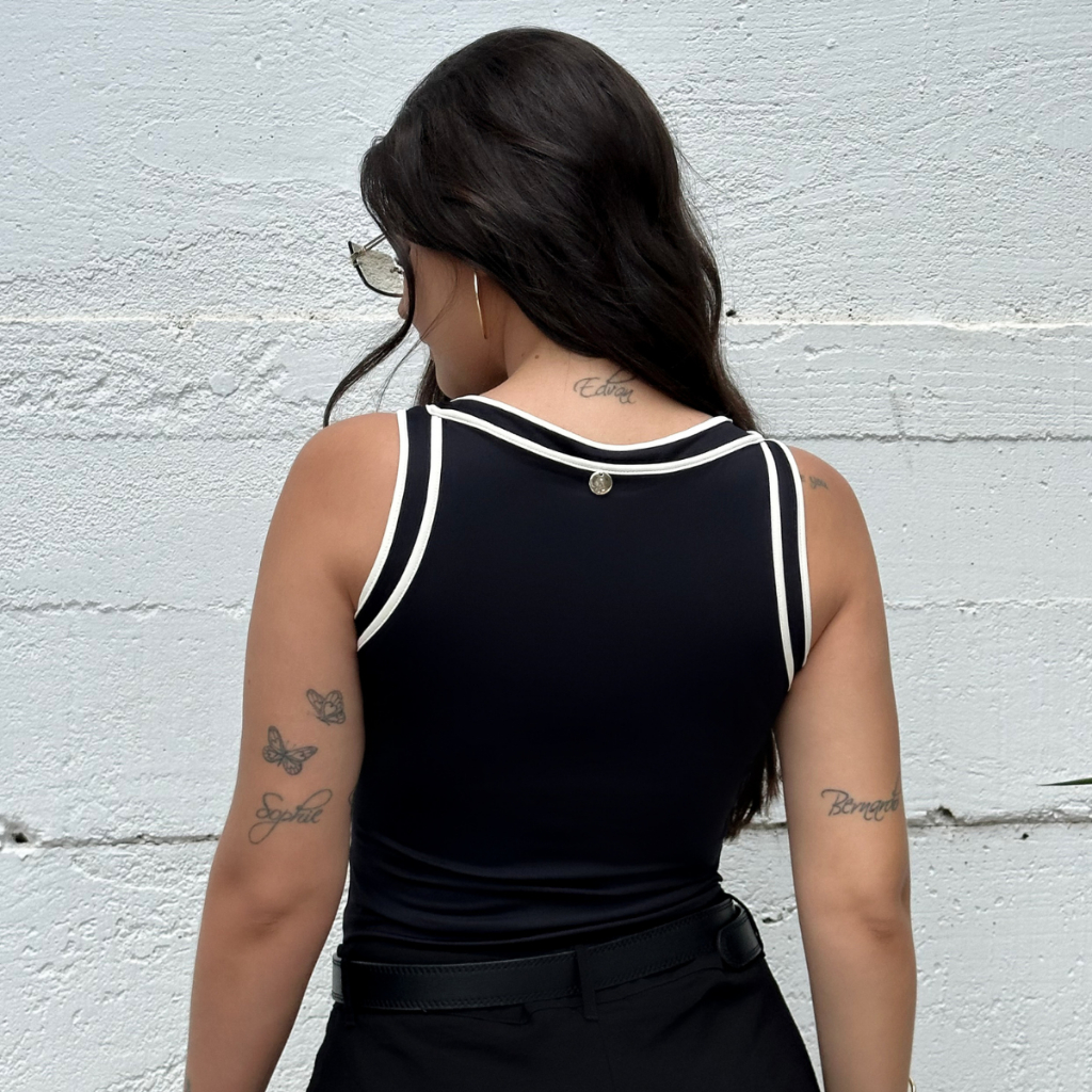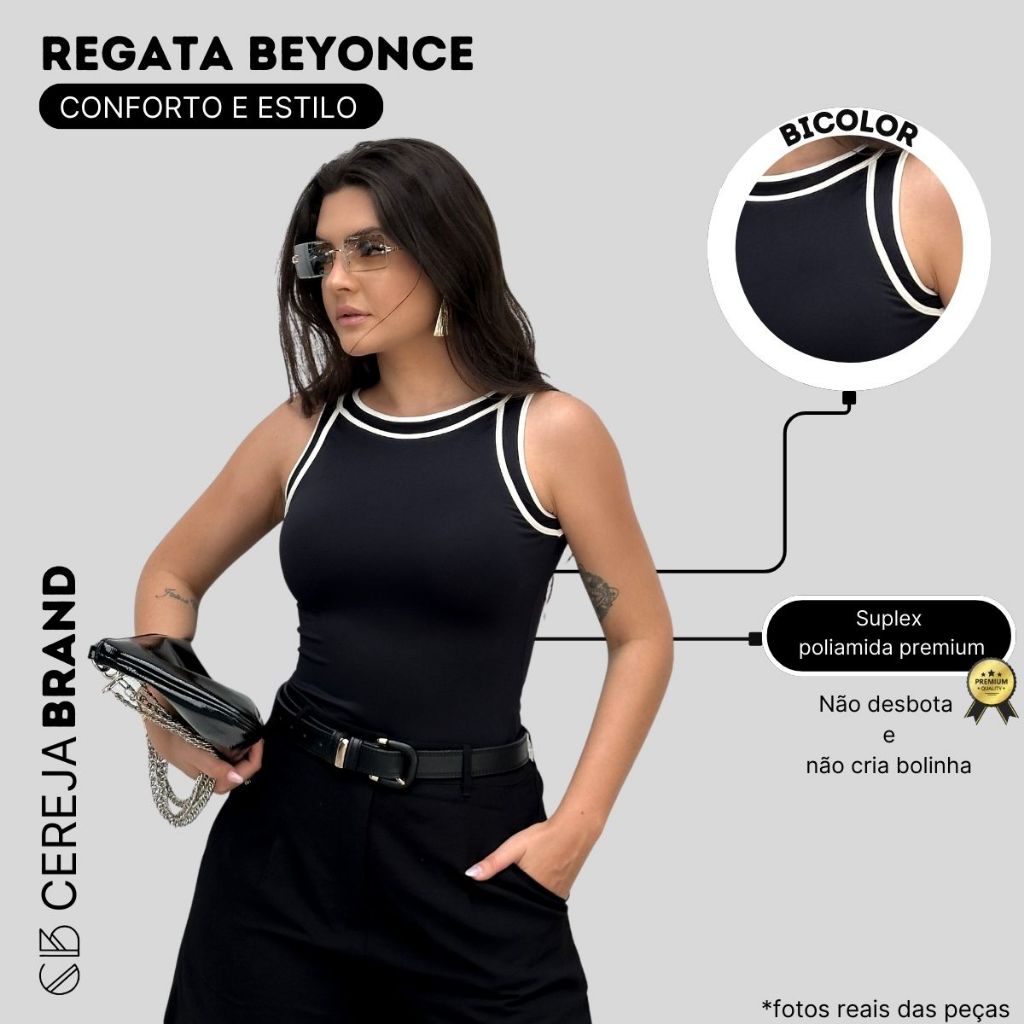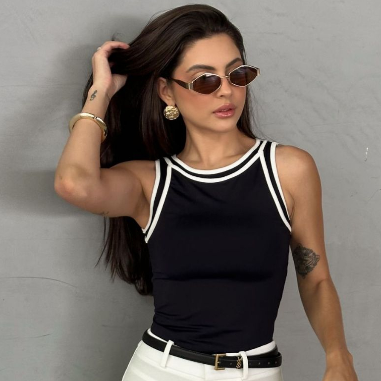Regata Feminina Blusa Básica Bicolor Confortável Gola Redonda