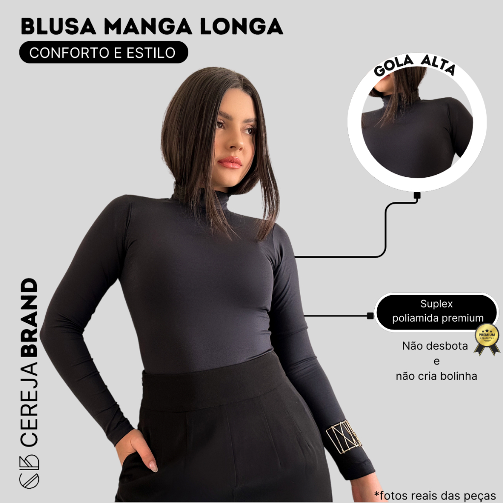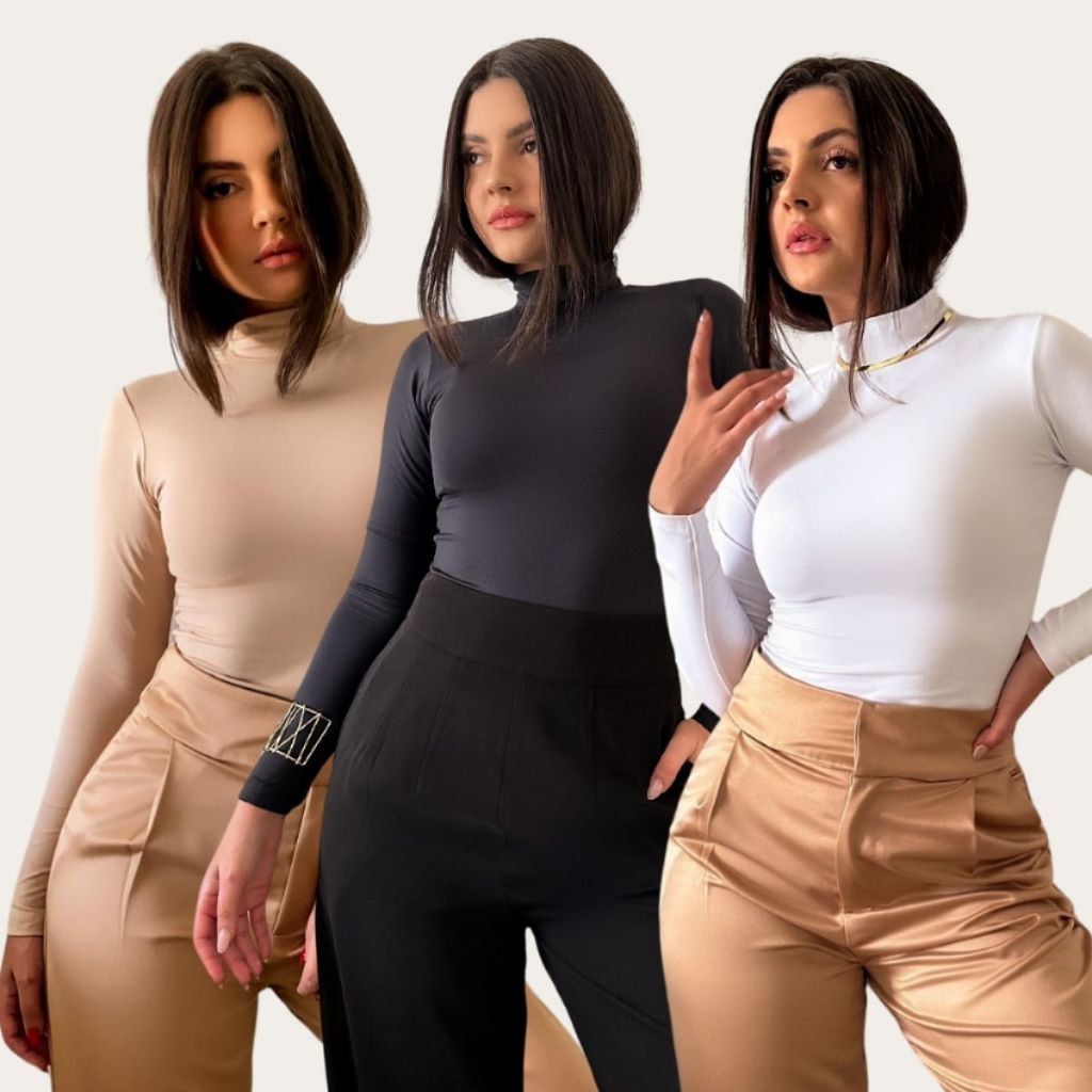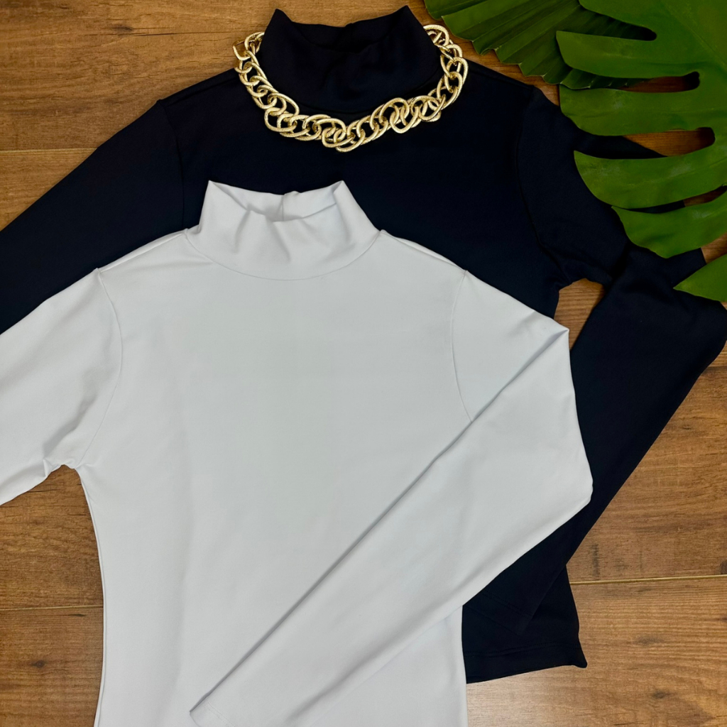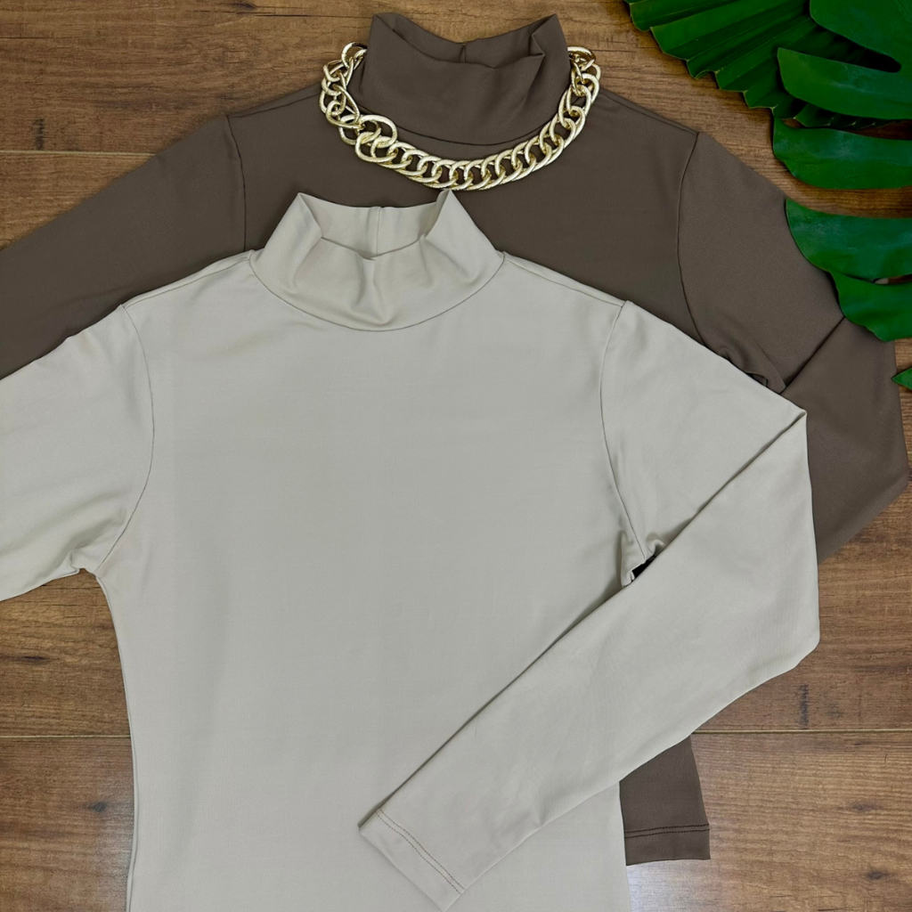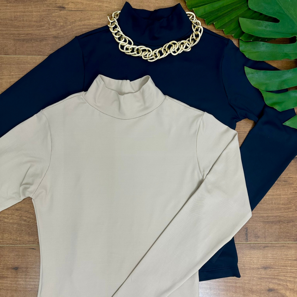 Kit 2 Blusa Manga Longa Gola Alta Confortável Inverno Noite Básica