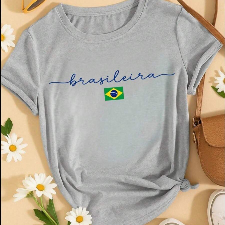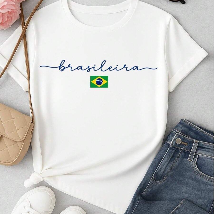 Camiseta Feminina Brasileira Copa Brasil 100% Algodão Estampa Minimalista Casual Confortável