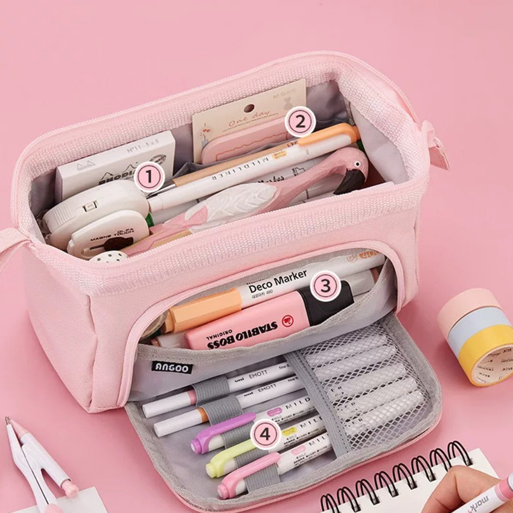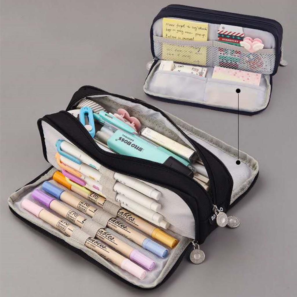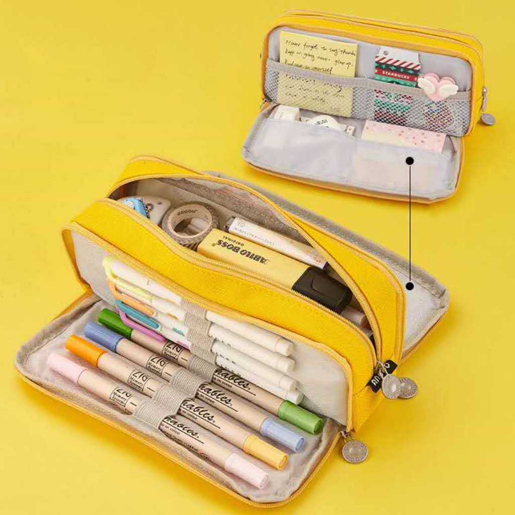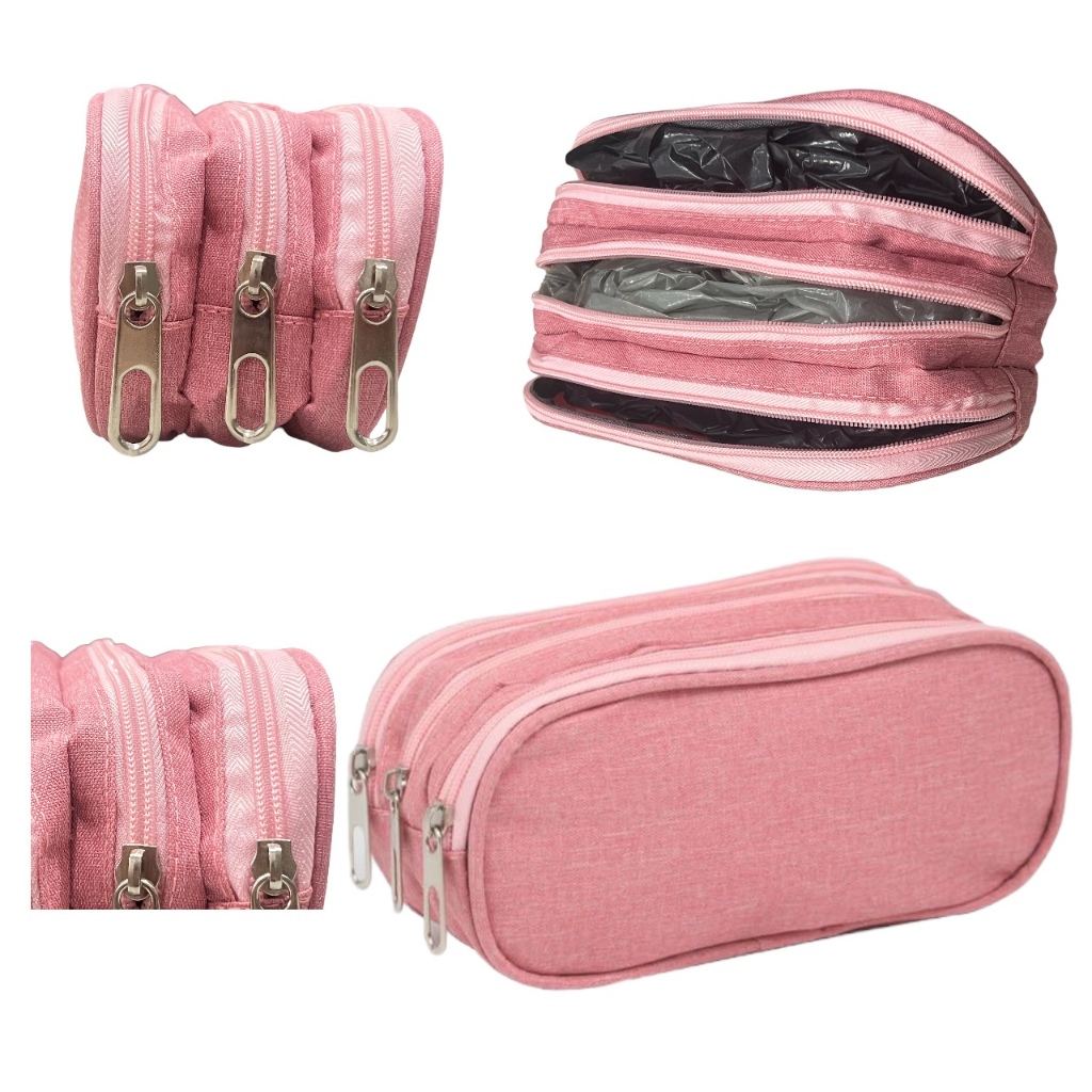 Estojo Escolar Triplo Grande Com 3 Ziperes Tres Compartimentos