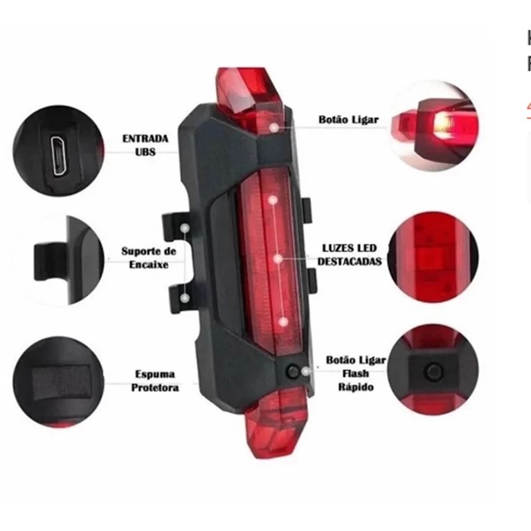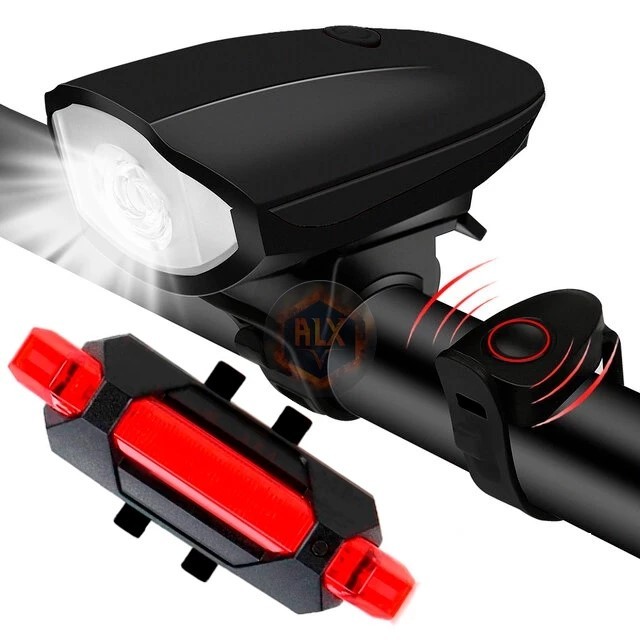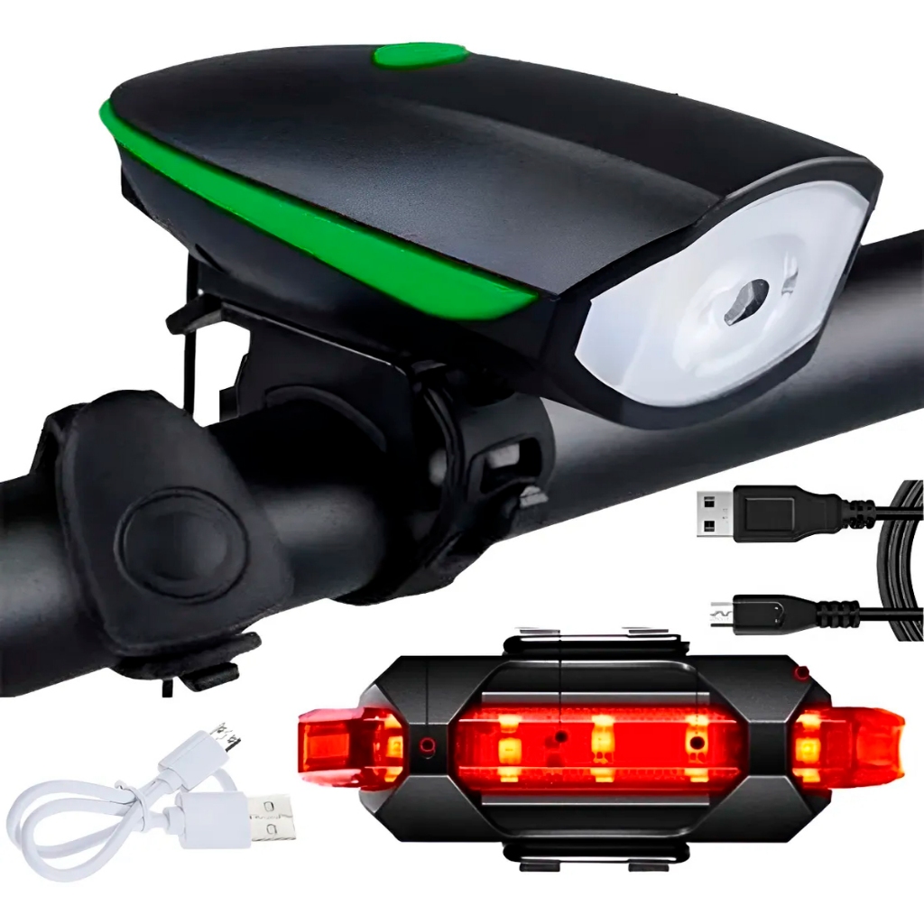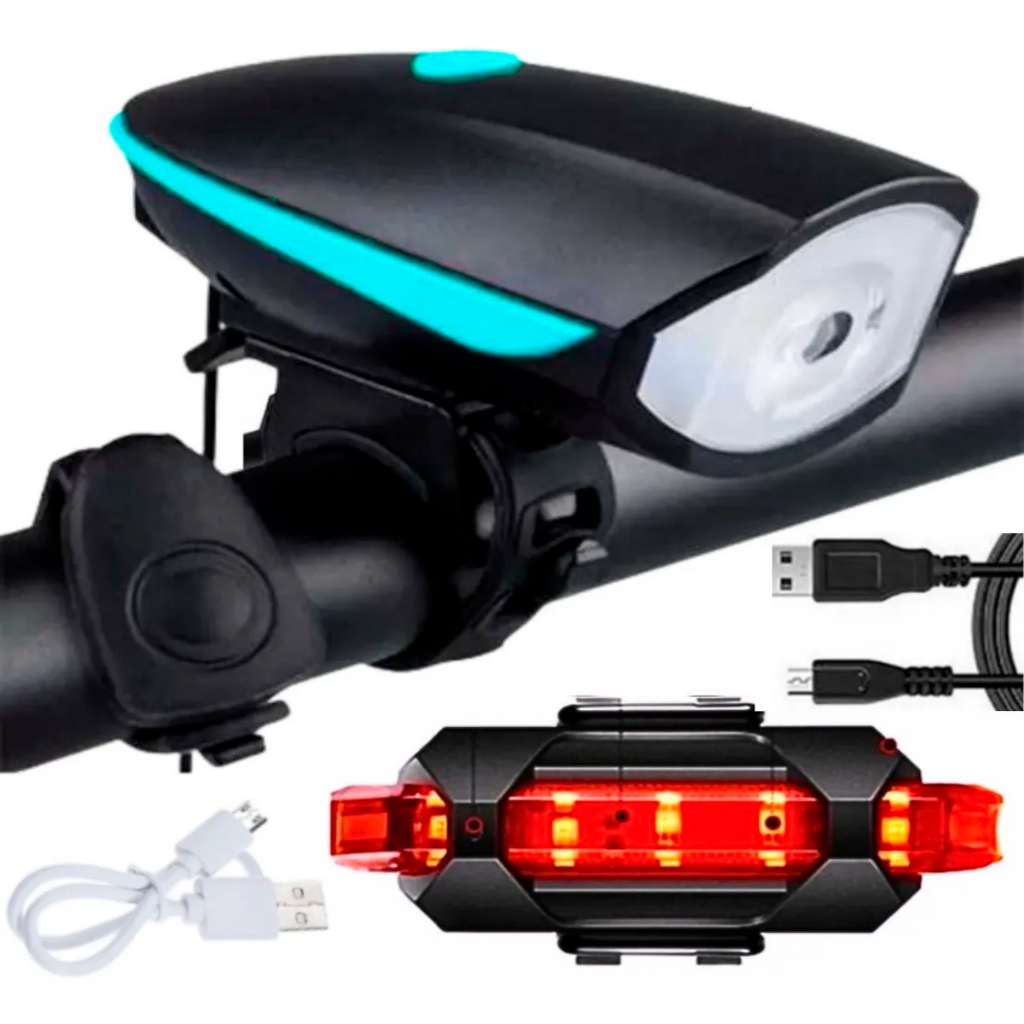 Kit de Farol Para Bike C/ Buzina Recarregável + Sinalizador Traseiro recarregável
