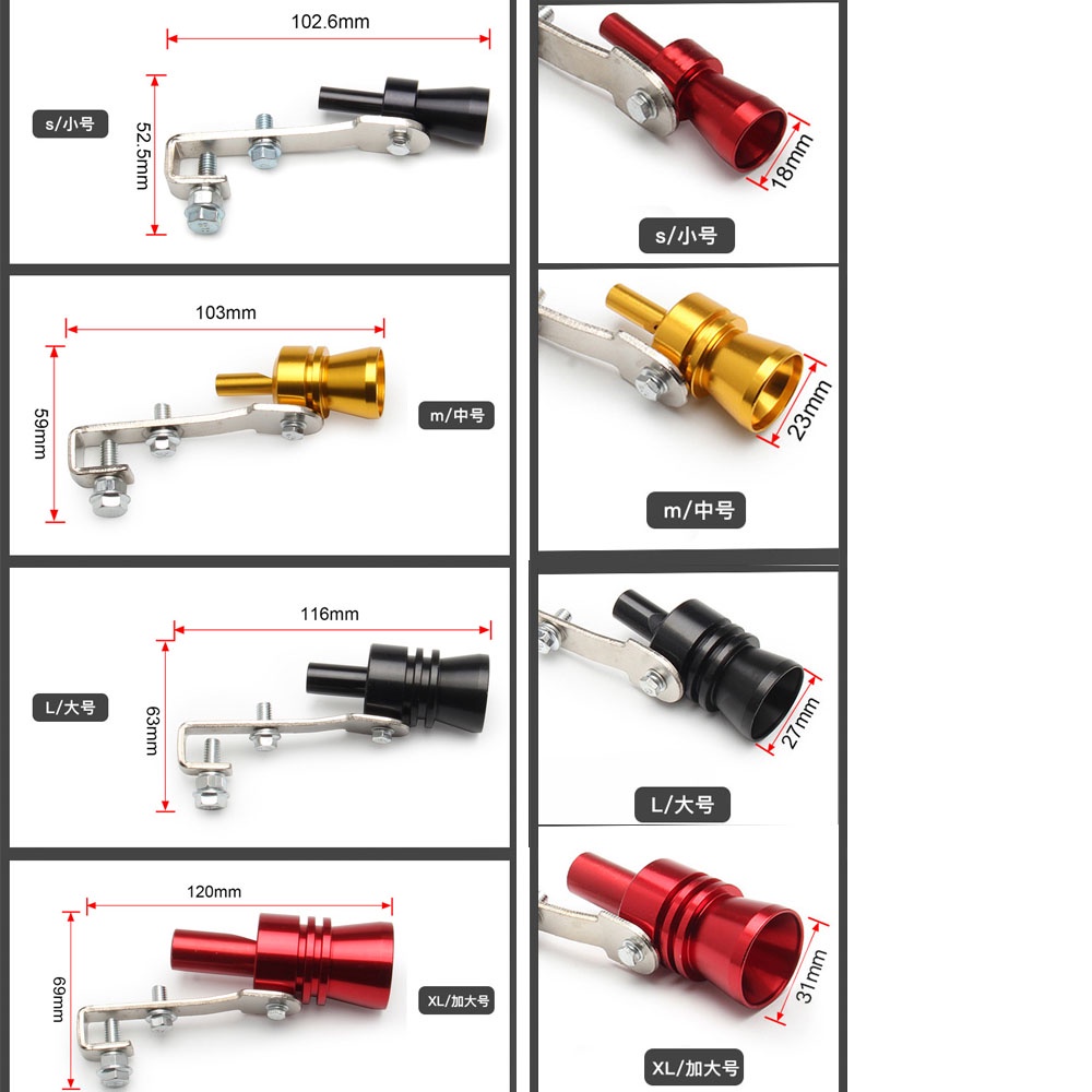 Turbo Universal Simulador De Som Apito Tubo De Escape Do Carro Veículo Silenciador S/M/L/XL