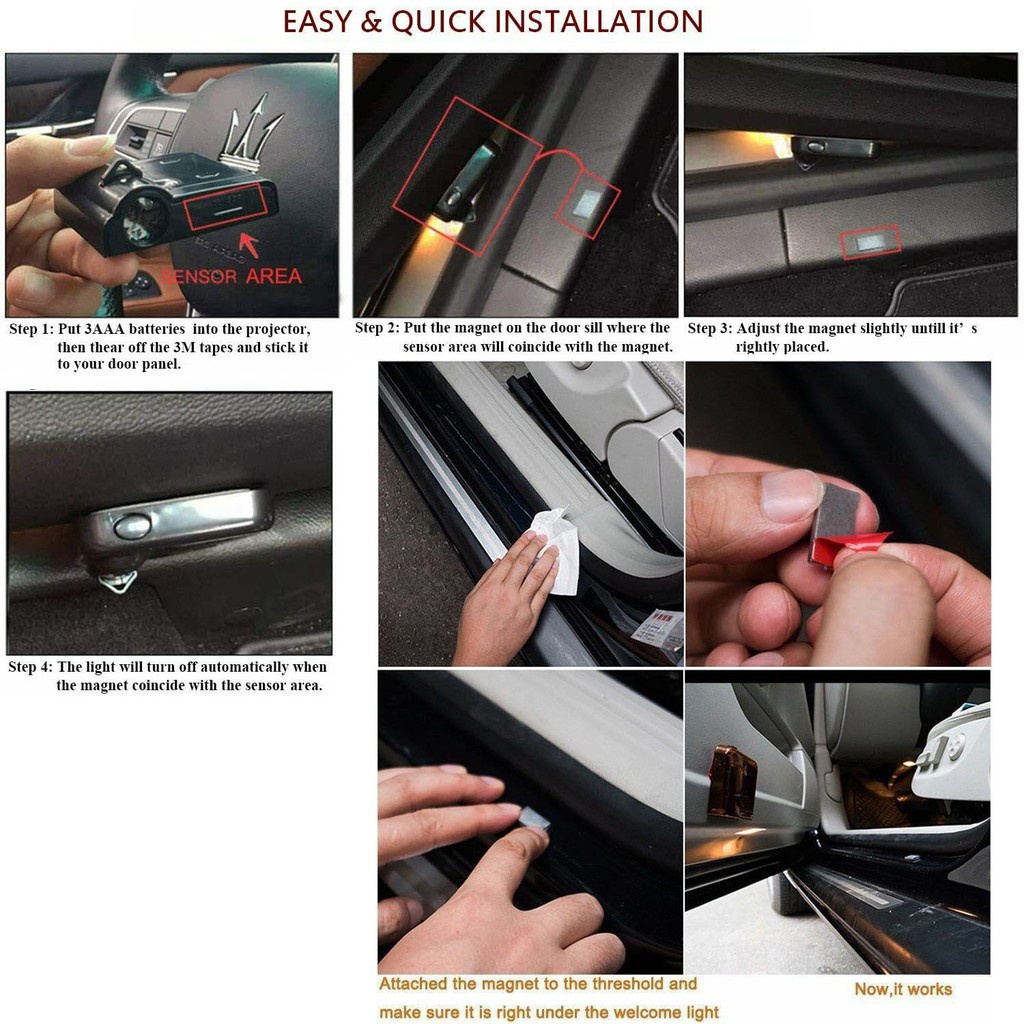 2PCS Logotipo Da Porta Do Carro Universal Luz Bem-Vindo A Projetor Sem Fio Atmosfera Acessórios