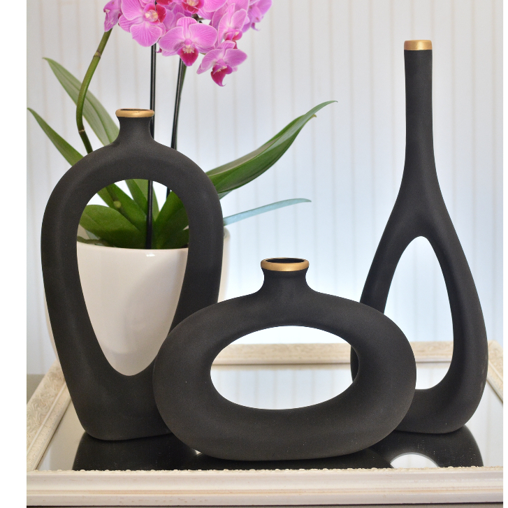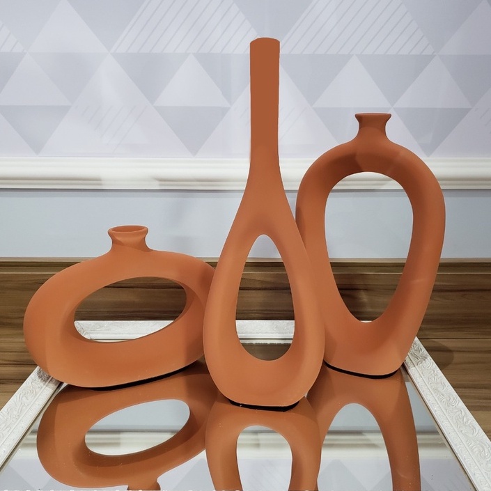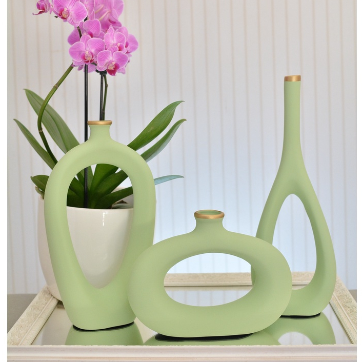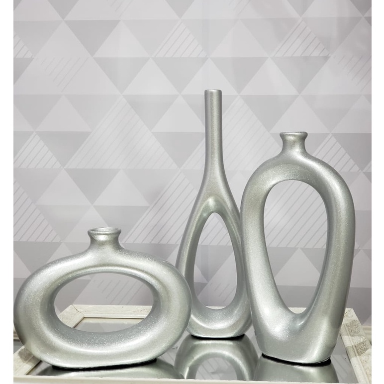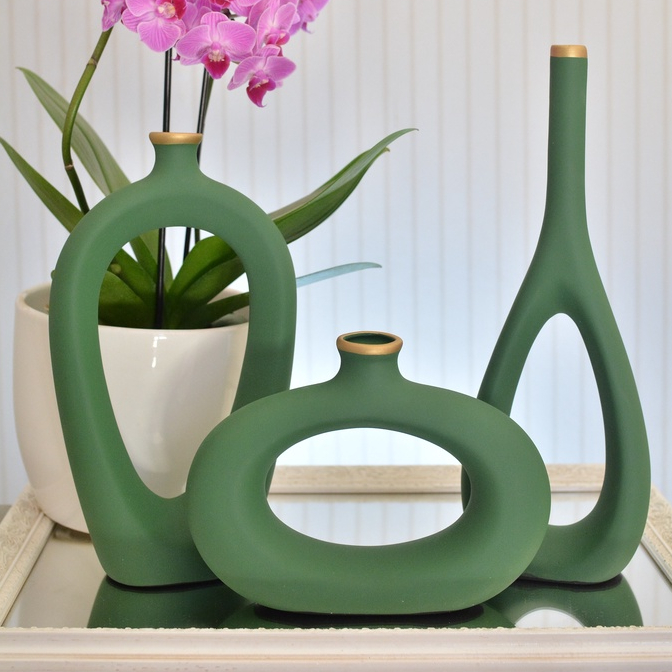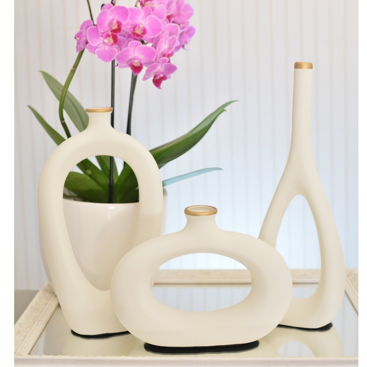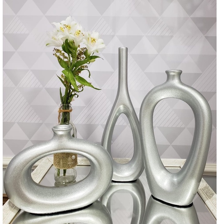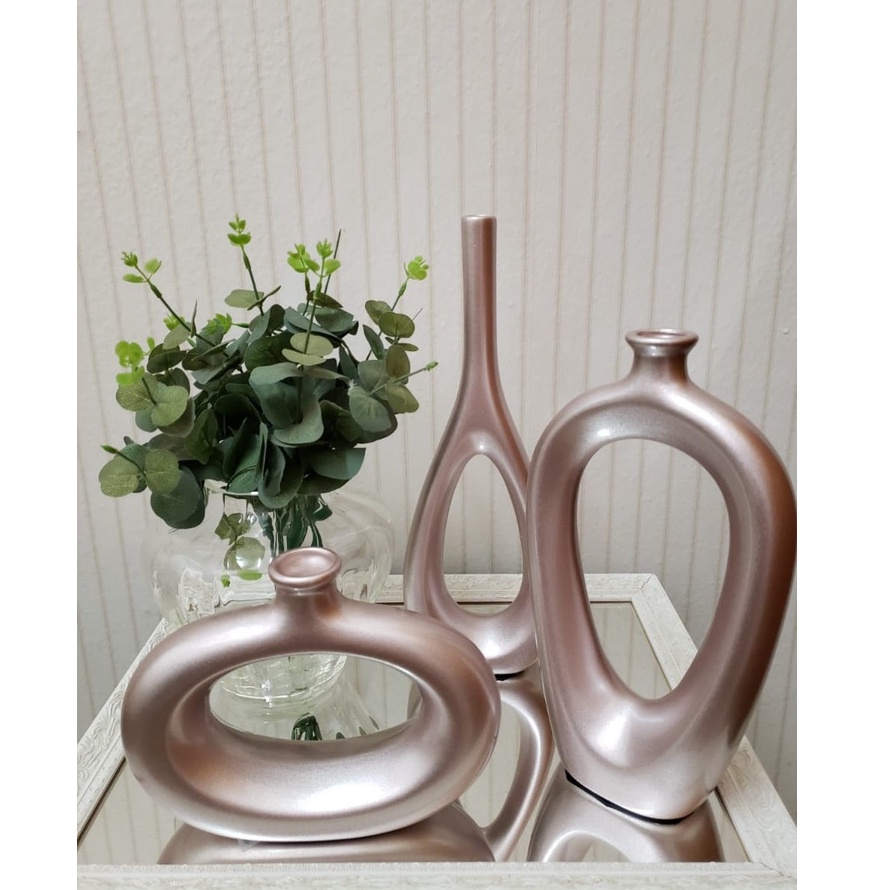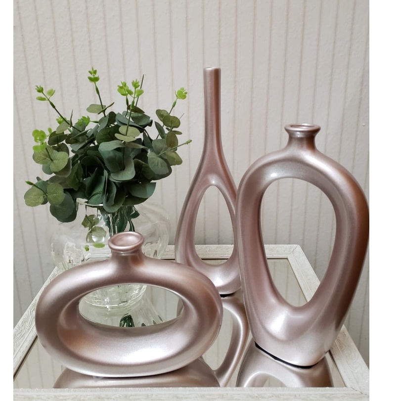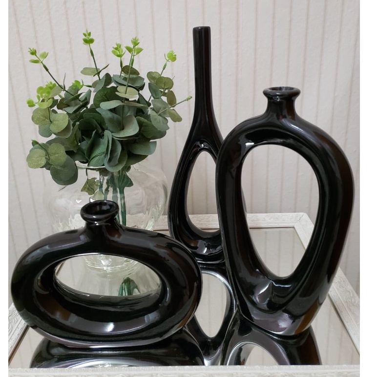 Decoração Elegante Kit Trio Vasos Ceramica Enfeite Decorativo Centro Mesa Sala rack Garrafas Estiliz