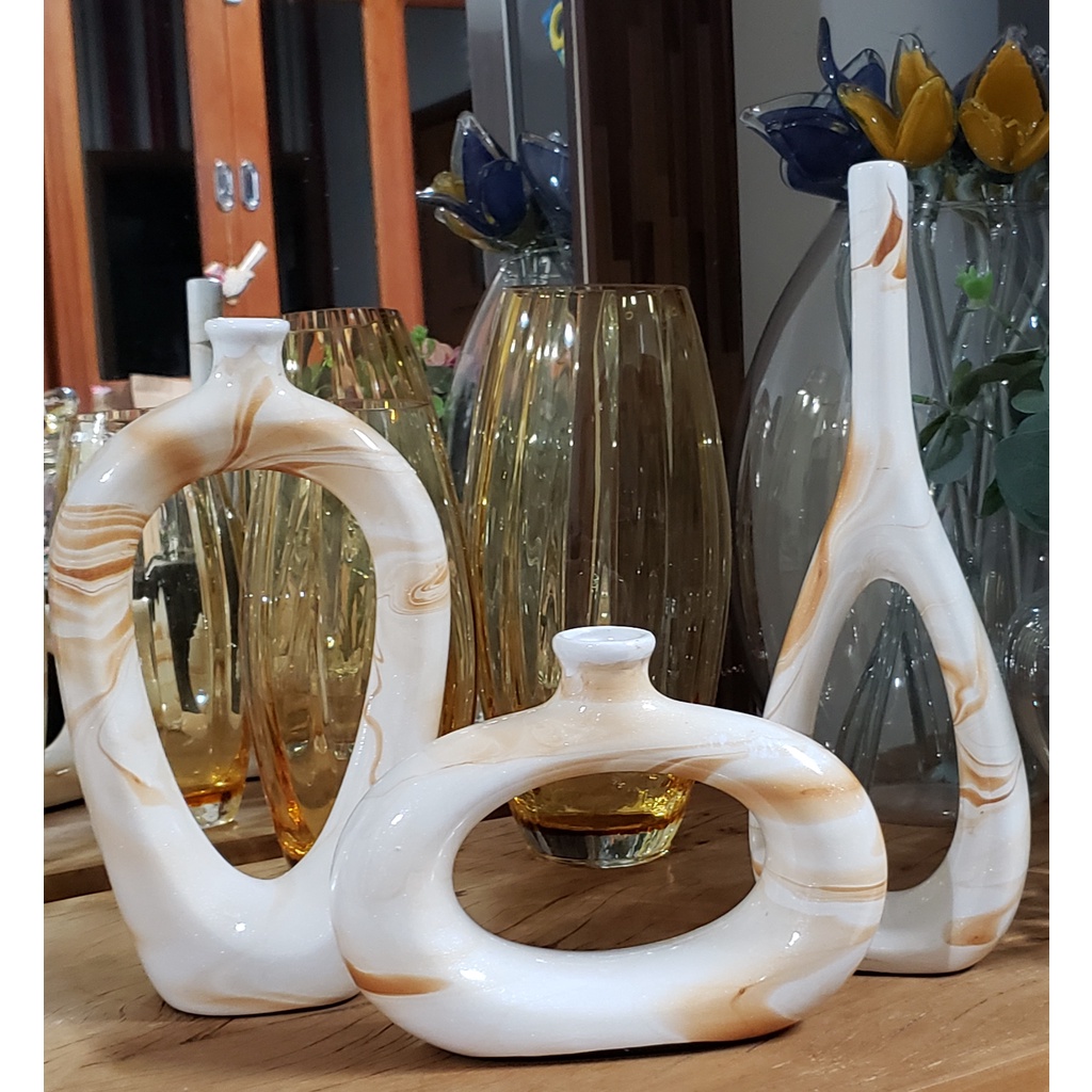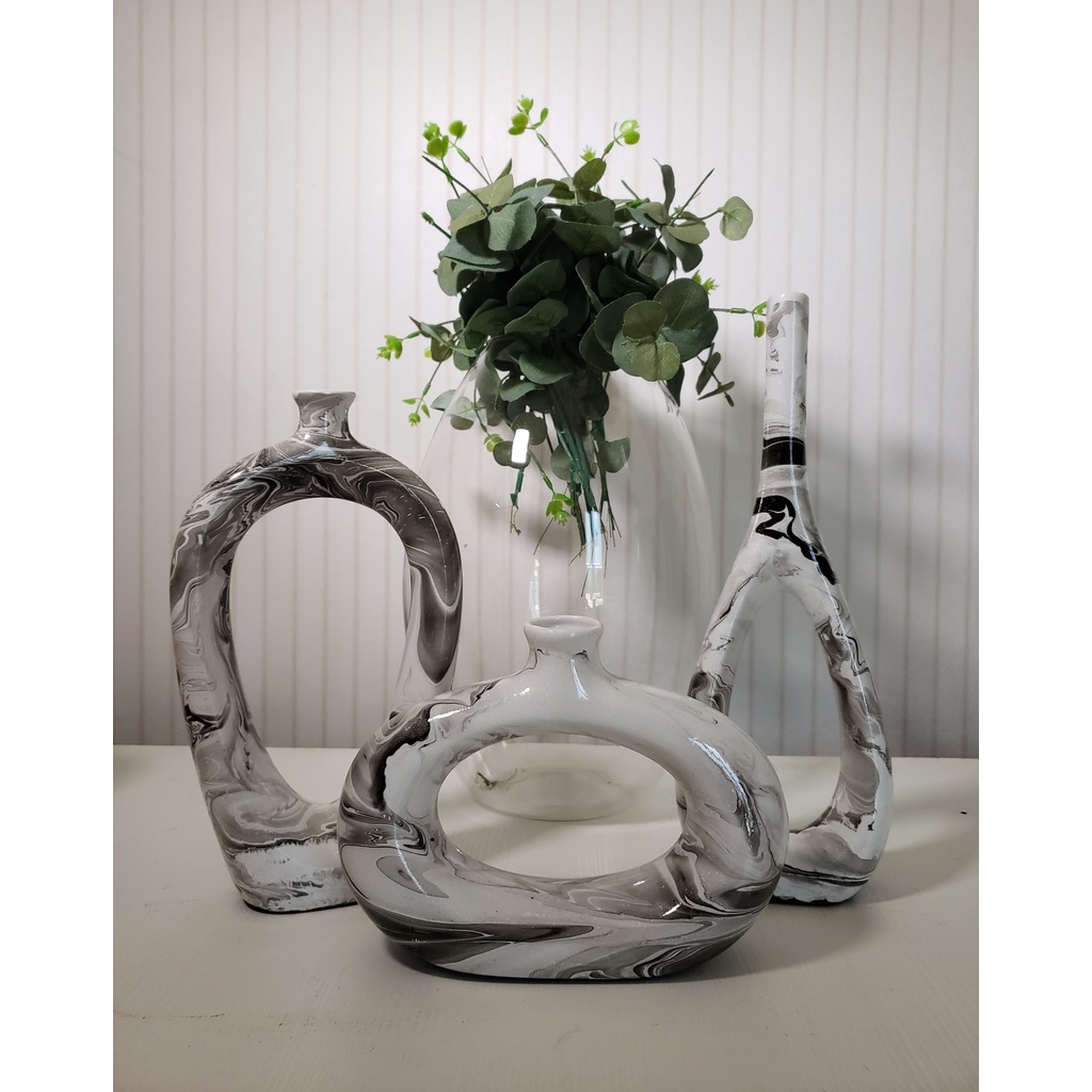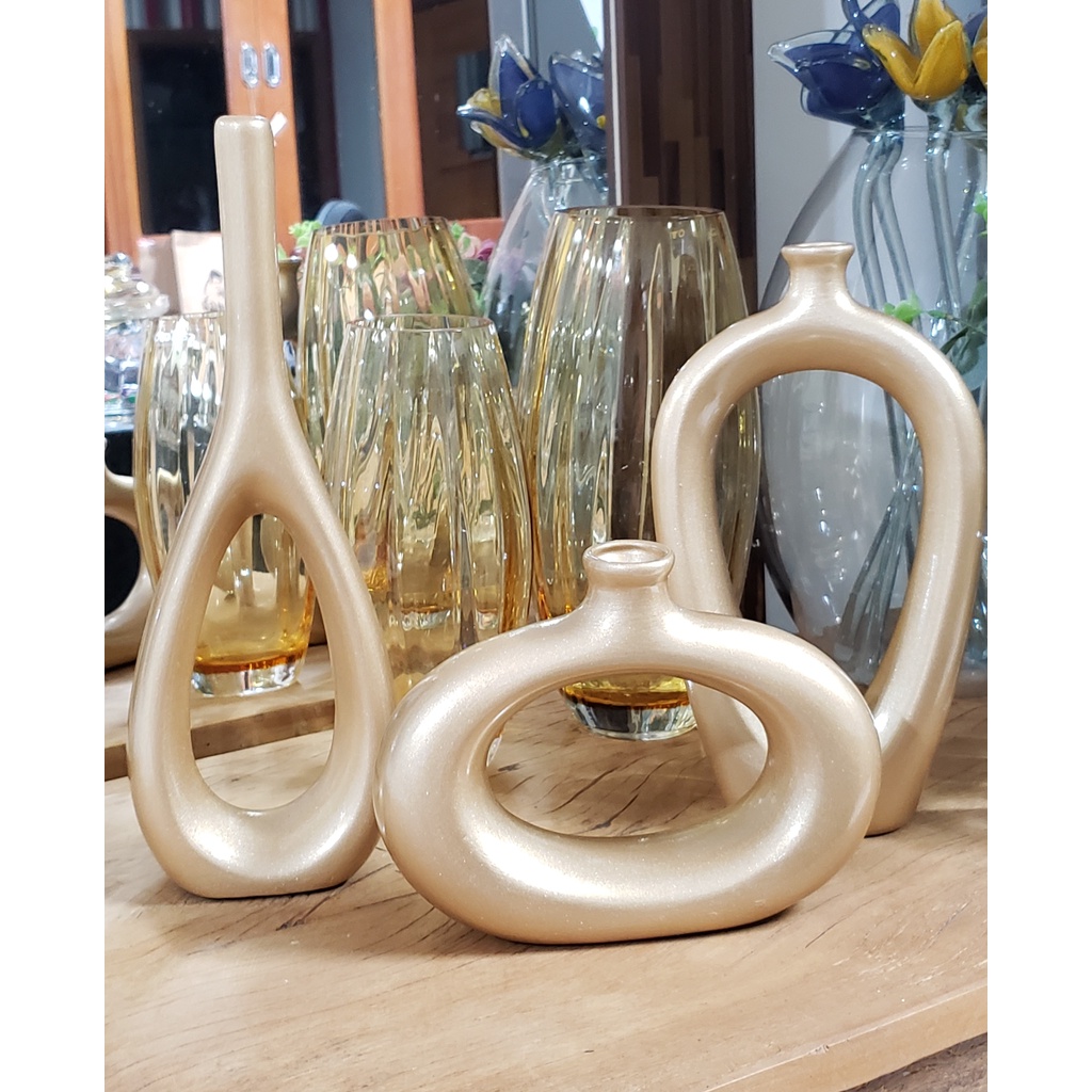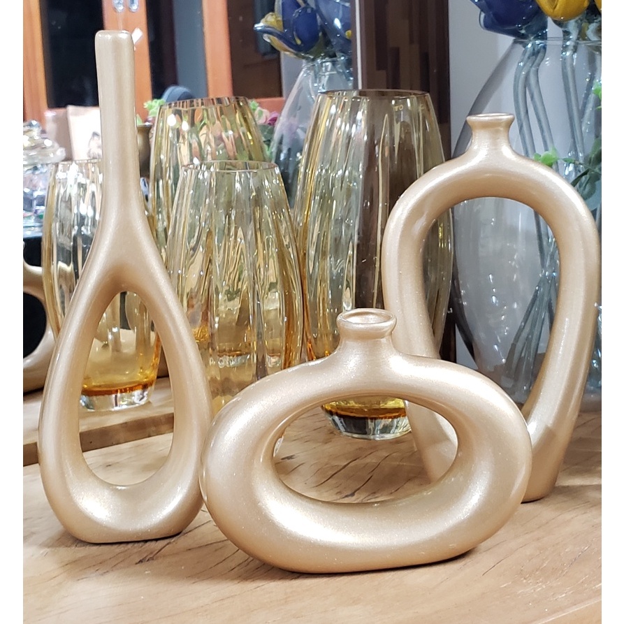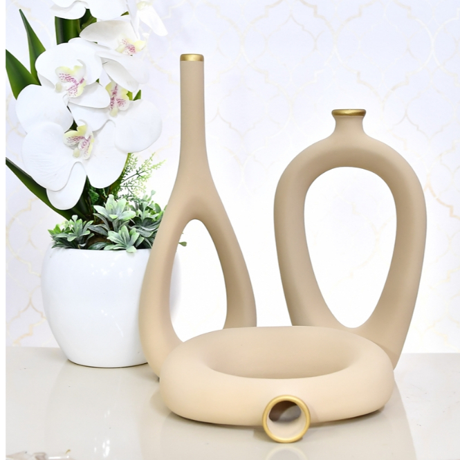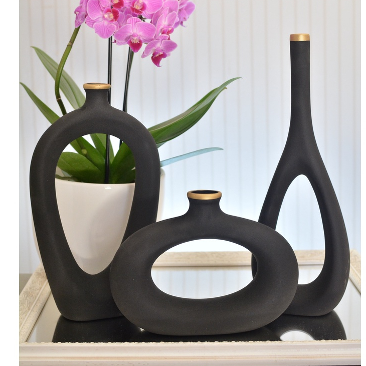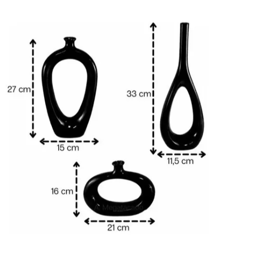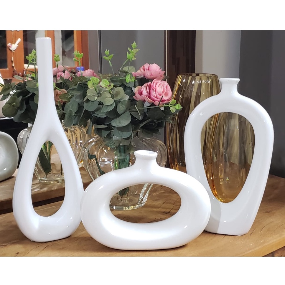 Decoração Elegante Kit Trio Vasos Ceramica Enfeite Decorativo Centro Mesa Sala rack Garrafas Estiliz