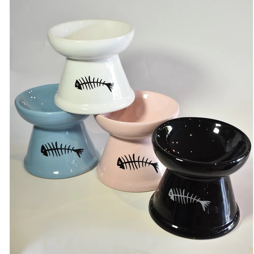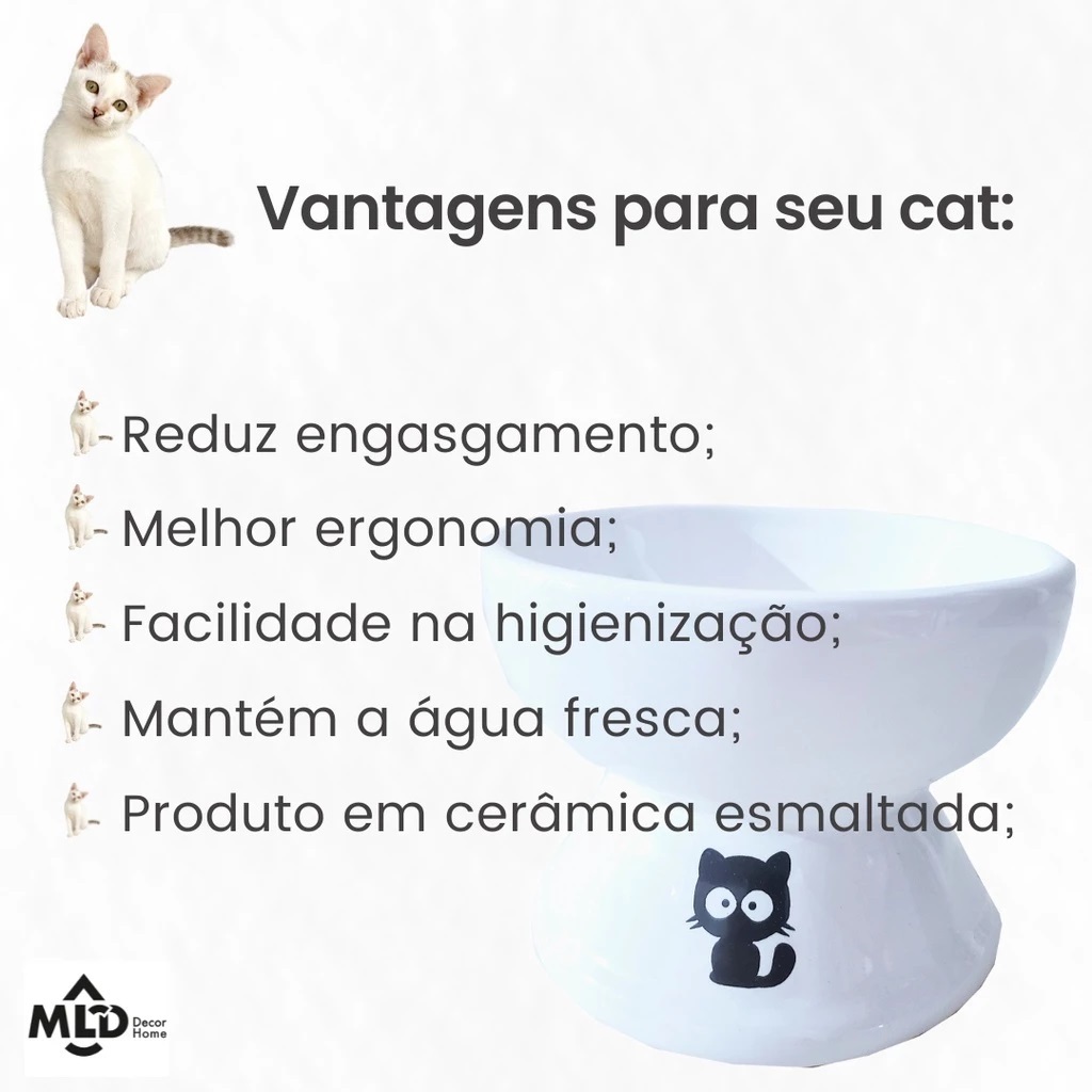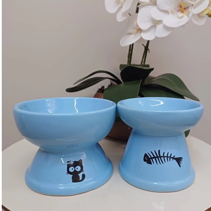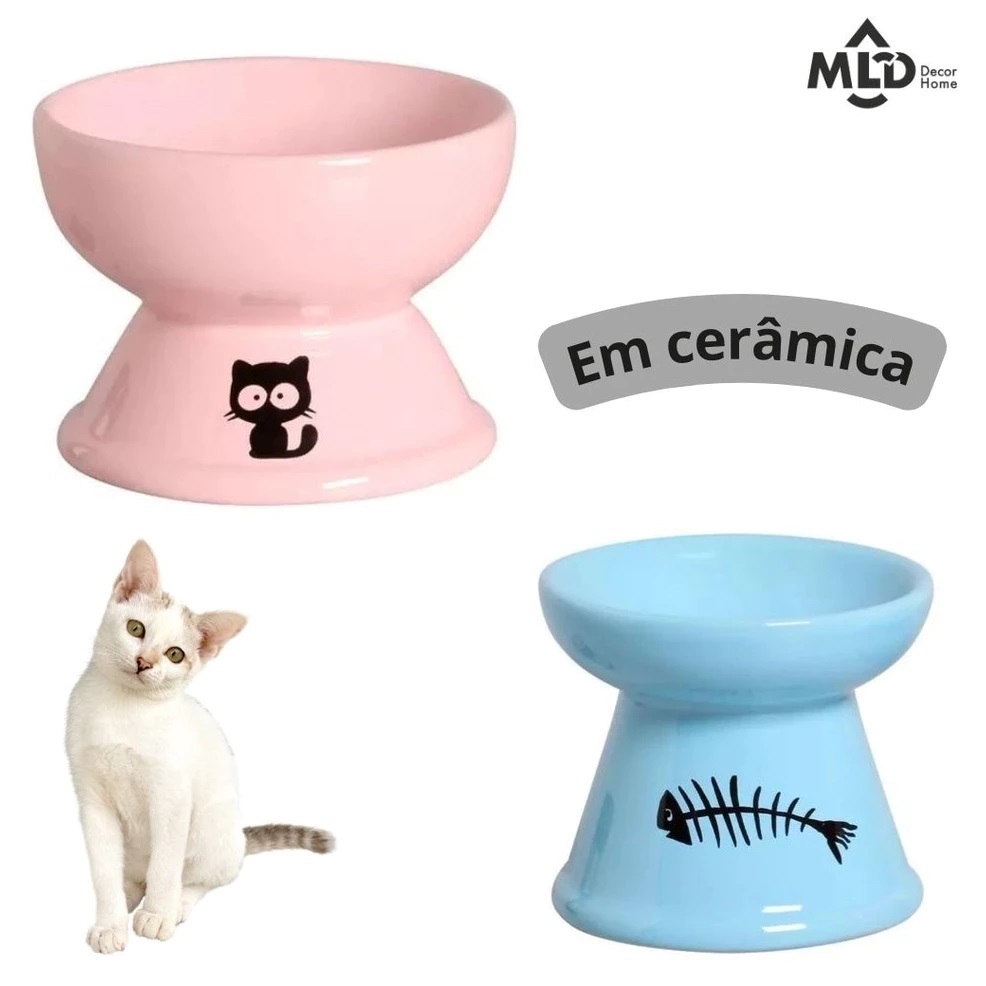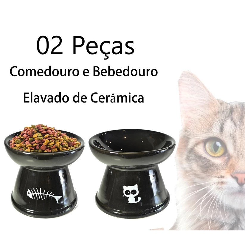 Kit 2 Comedouro Higiênico Cerâmica Elevado Gatos Prático Comedouro Bebedouro Cerâmica Pet Cachorros