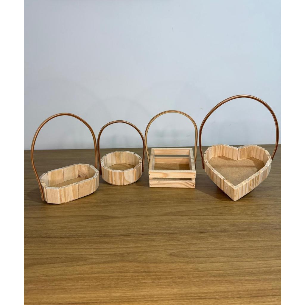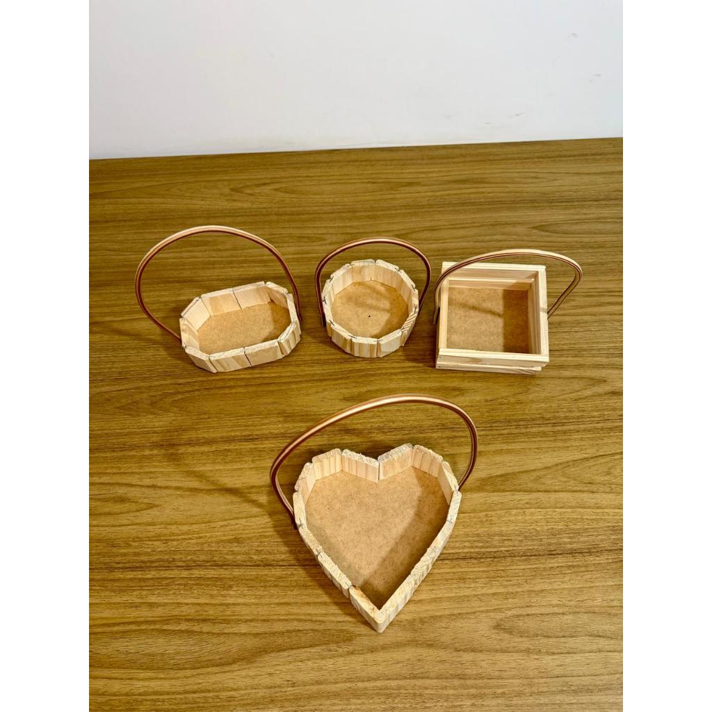 Kit Promocional 40 Cestas De Madeira Vazia Para presente Redonda, Oval, Quadrada e Coração