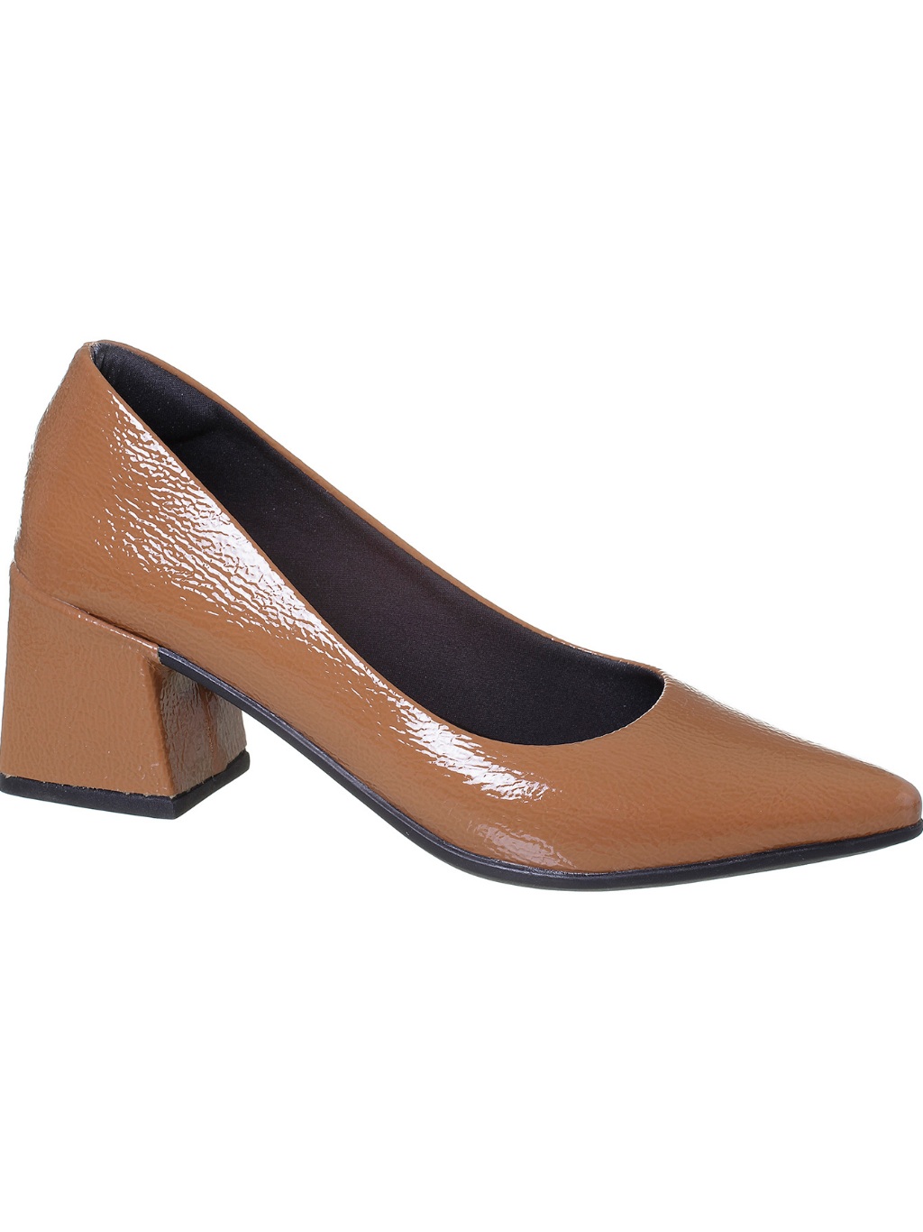 Scarpin Verniz Molhado Feminino Sapato Social Salto Grosso Médio 6,0 cm Bico Fino Naty Shoes