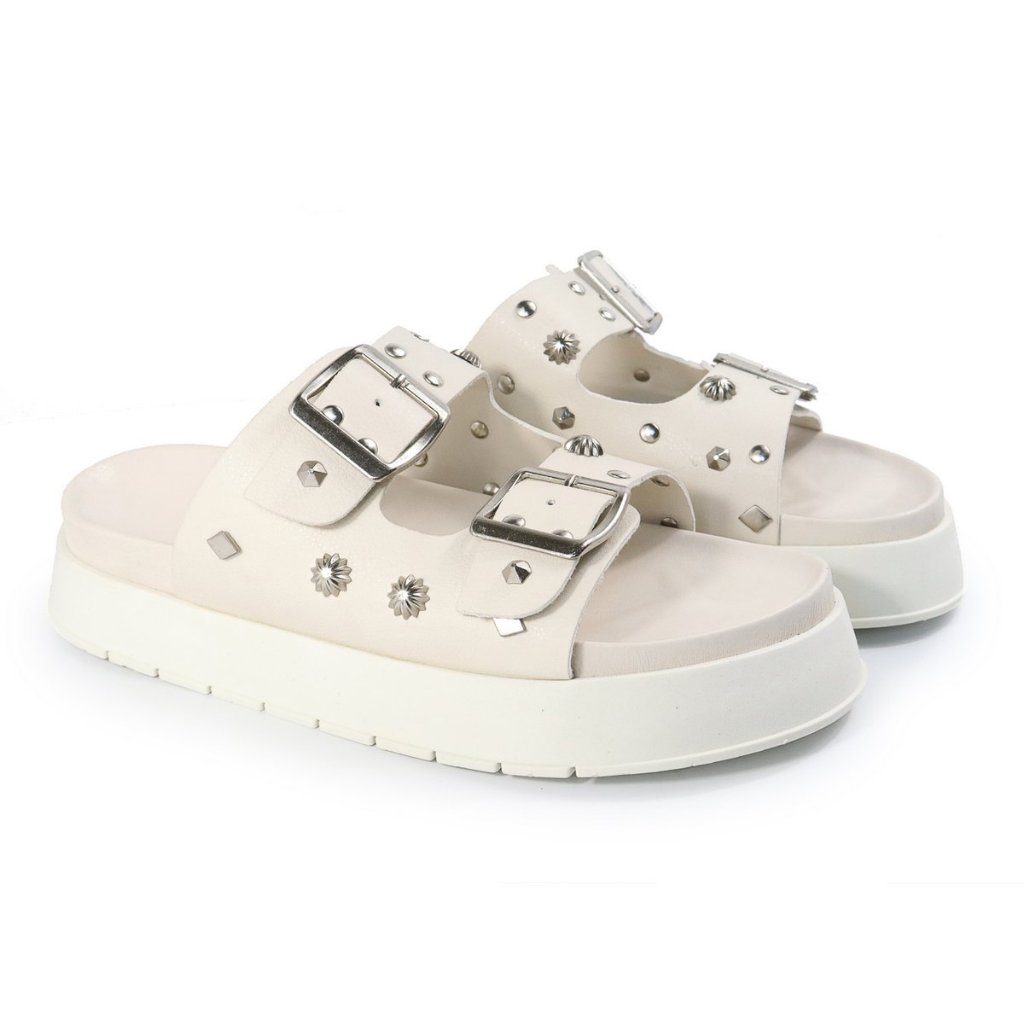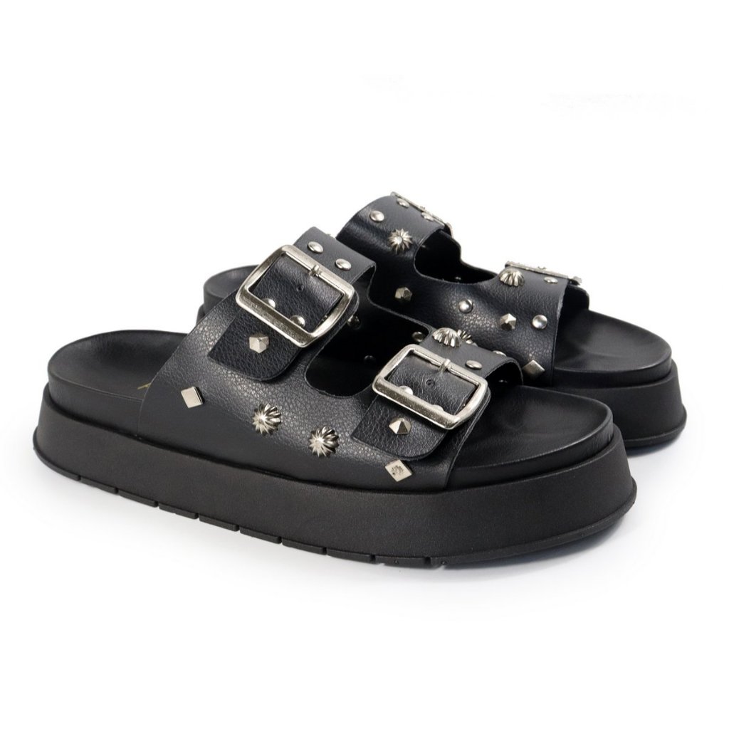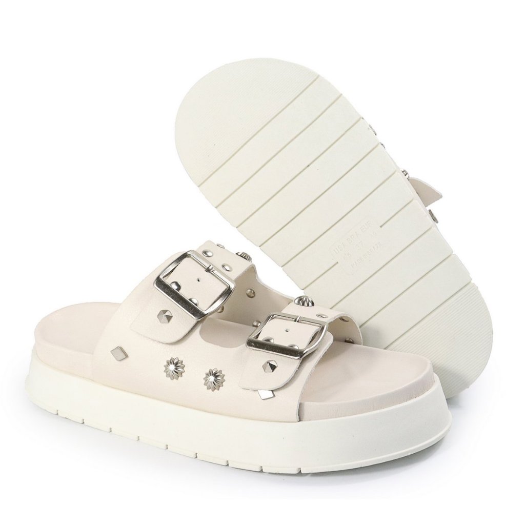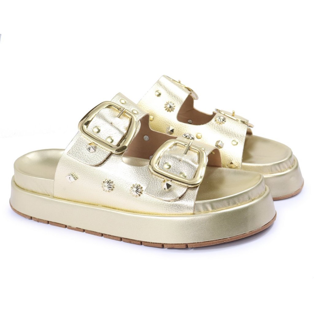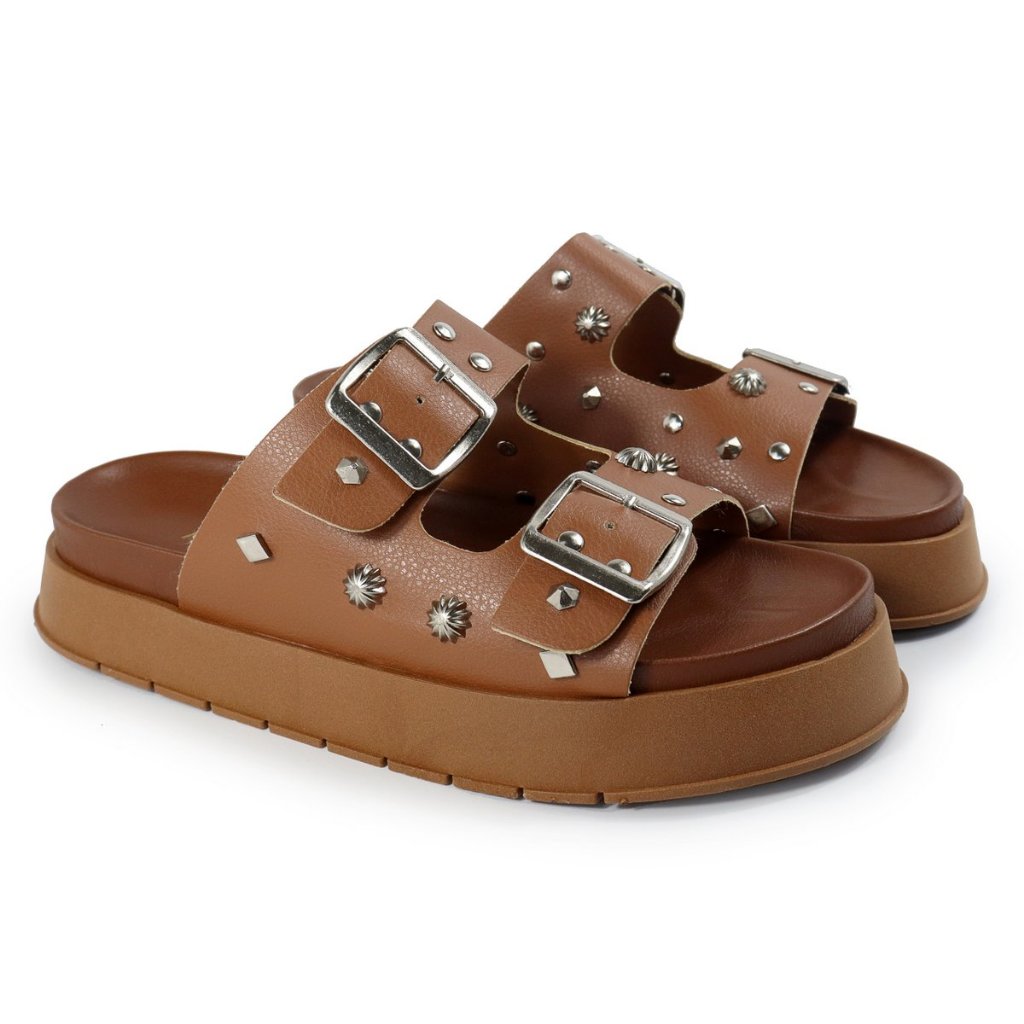 Papete Feminina Sandalia com Fivela e Detalhes Apliques