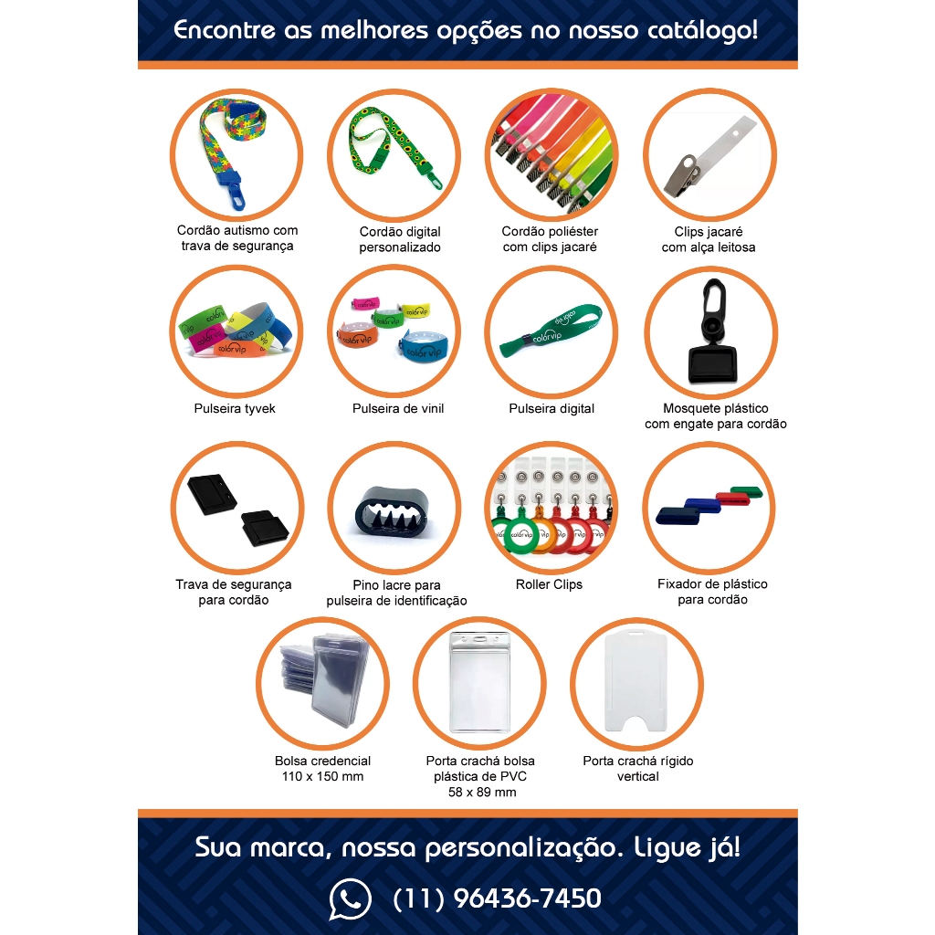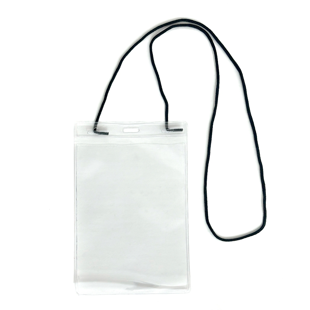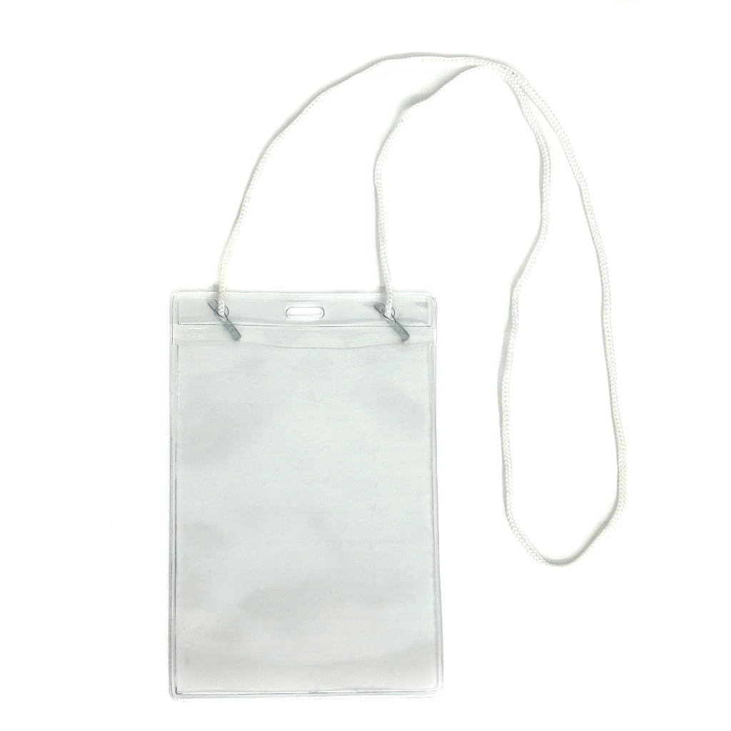 Kit 50 Bolsas Porta Credencial em PVC Transparente 110X150mm + Cordão Nylon PP