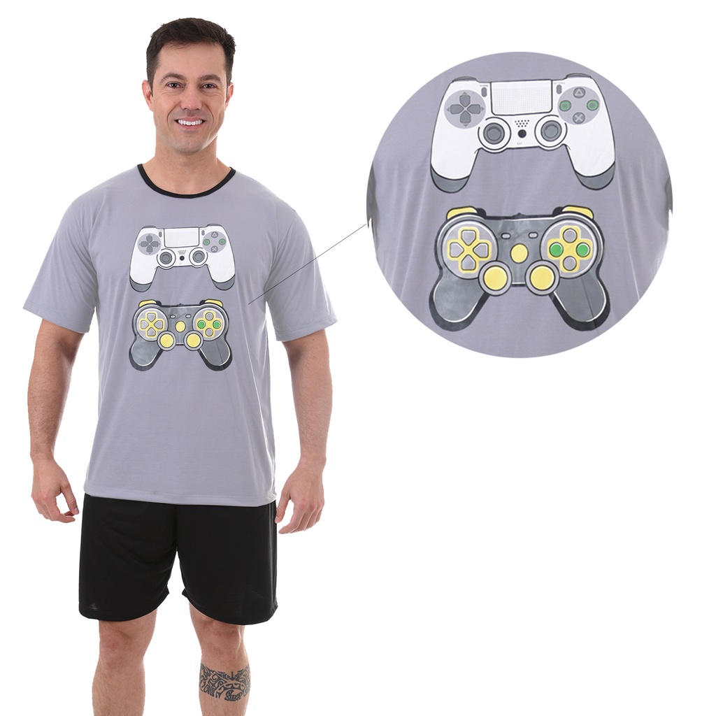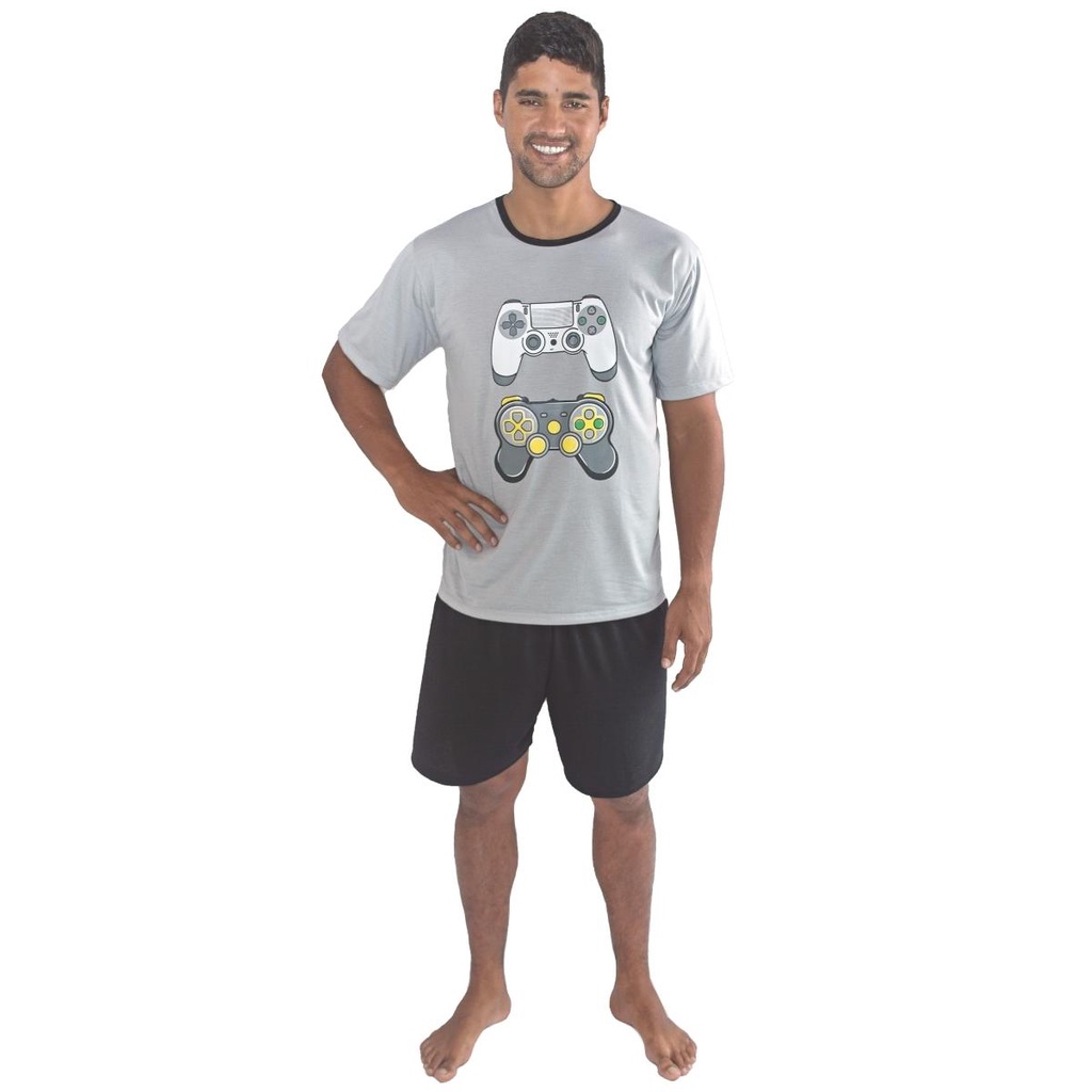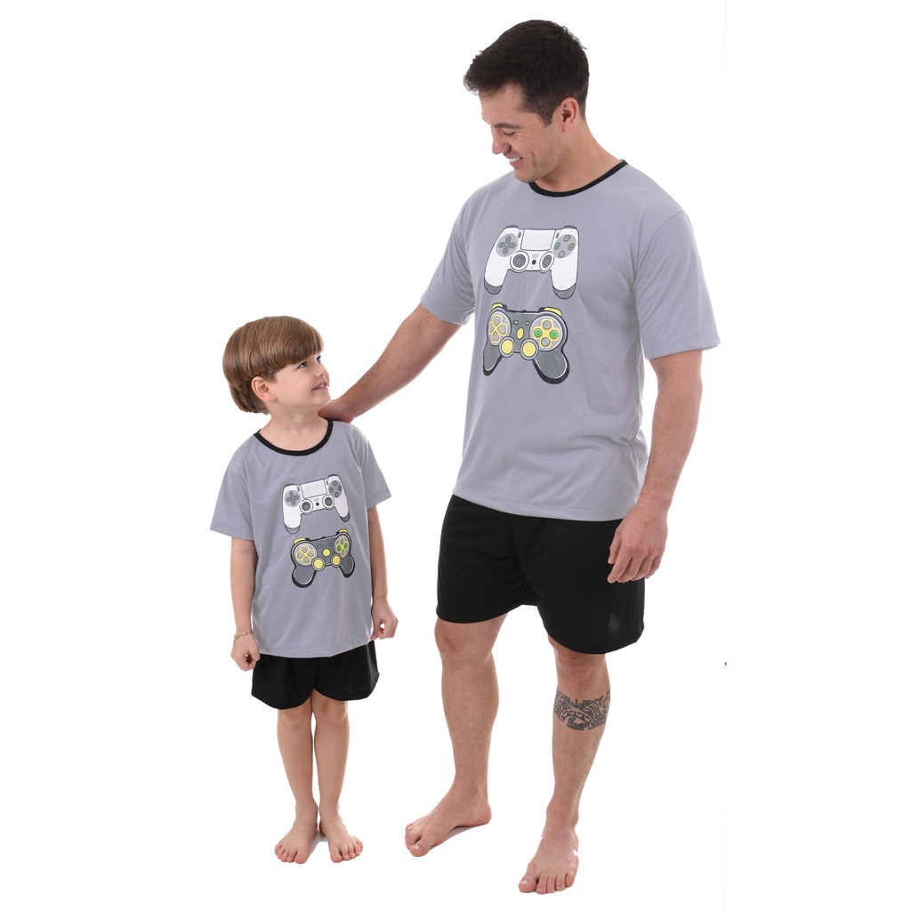 Kit Tal Pai Tal Filho Pijamas Short e Camiseta Video Game Jogos 506 507