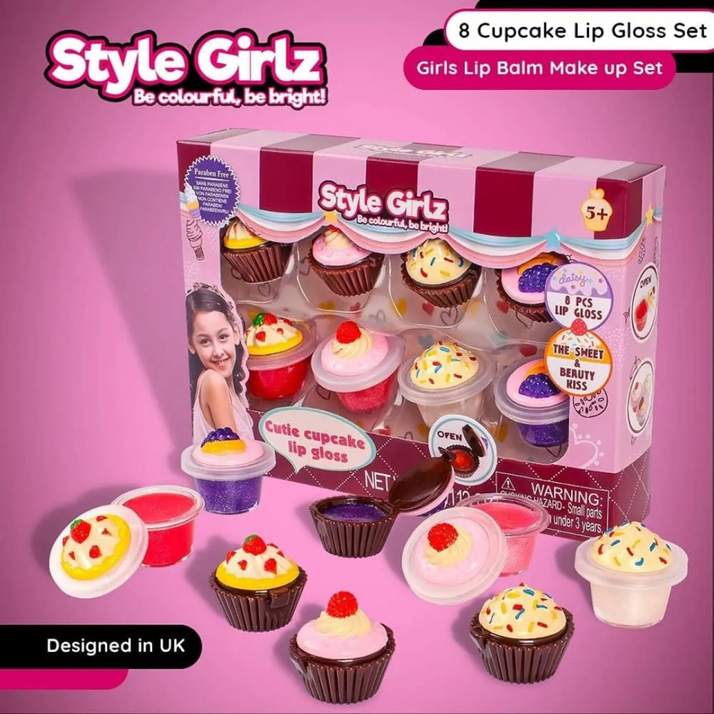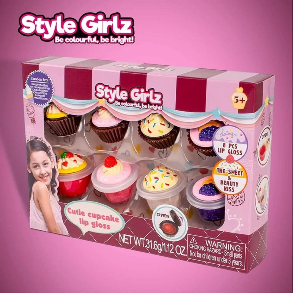 Gloss Infantil Hidratante Brilho Forma de Cupcake 8 Unidades Sem Corante Com Aroma