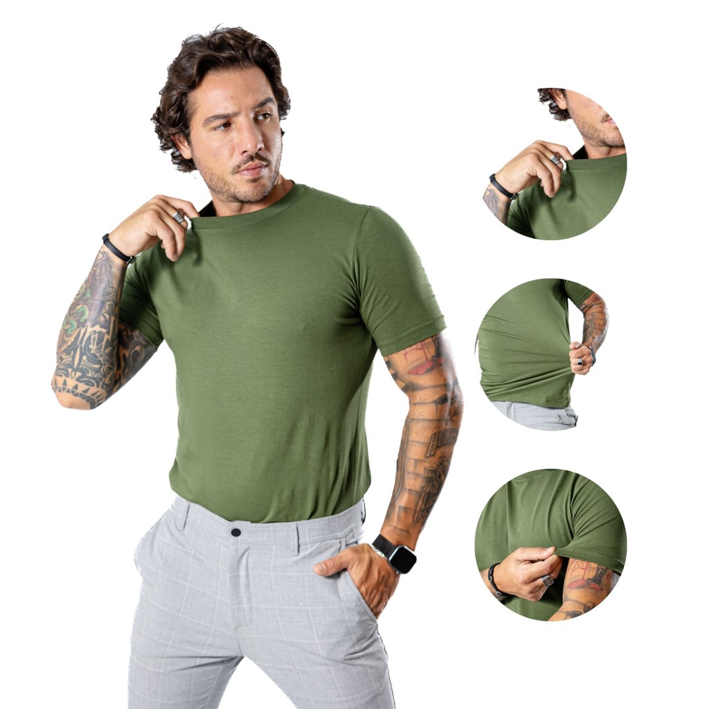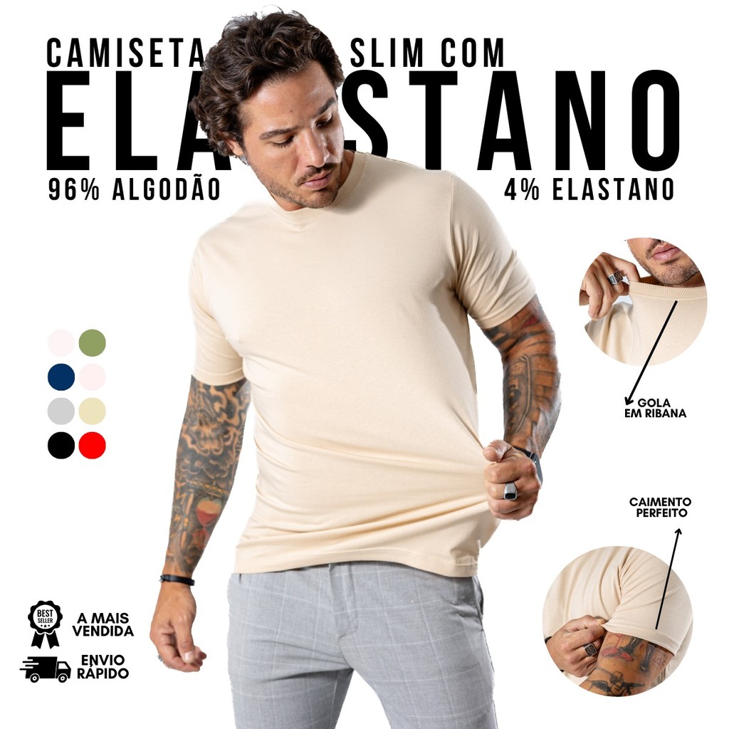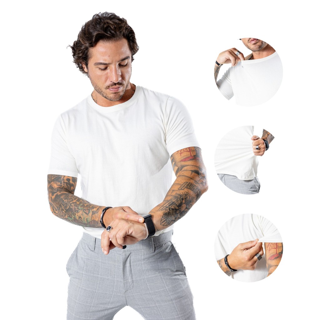 Camiseta Cotton Peruana Básica Premium Algodão Com Elastano Lisa P AO G1 Modelo Tradicional Original