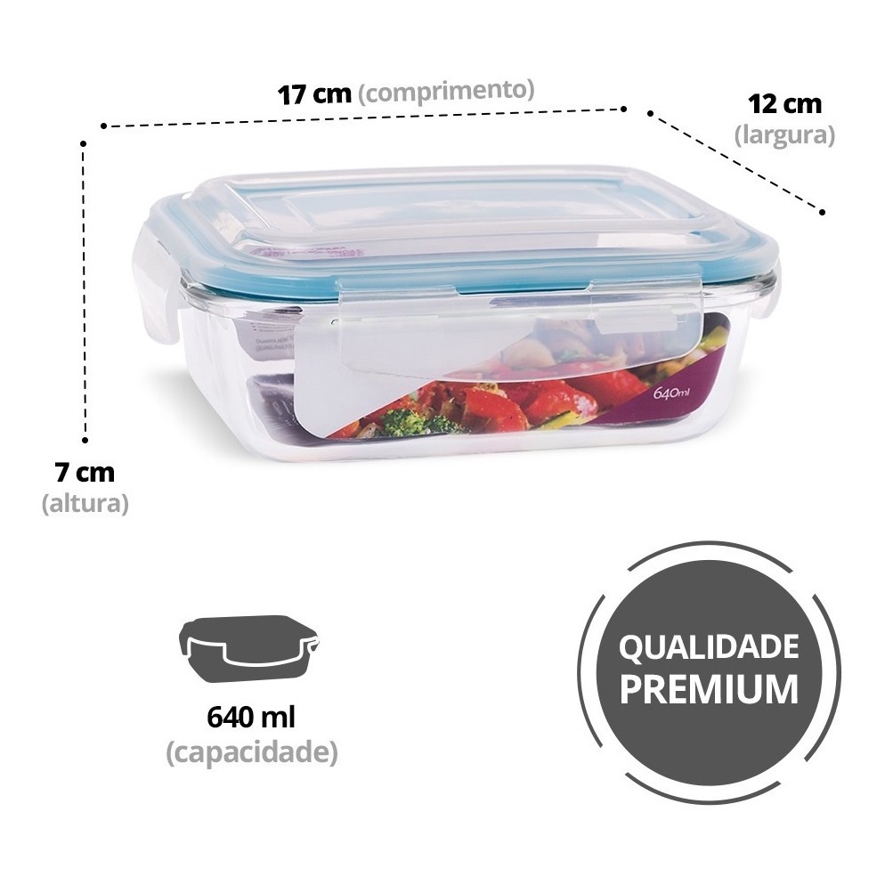 Pote Vidro Hermético Marmita Mantimentos com Tampa Comida Academia Fitness 640ml