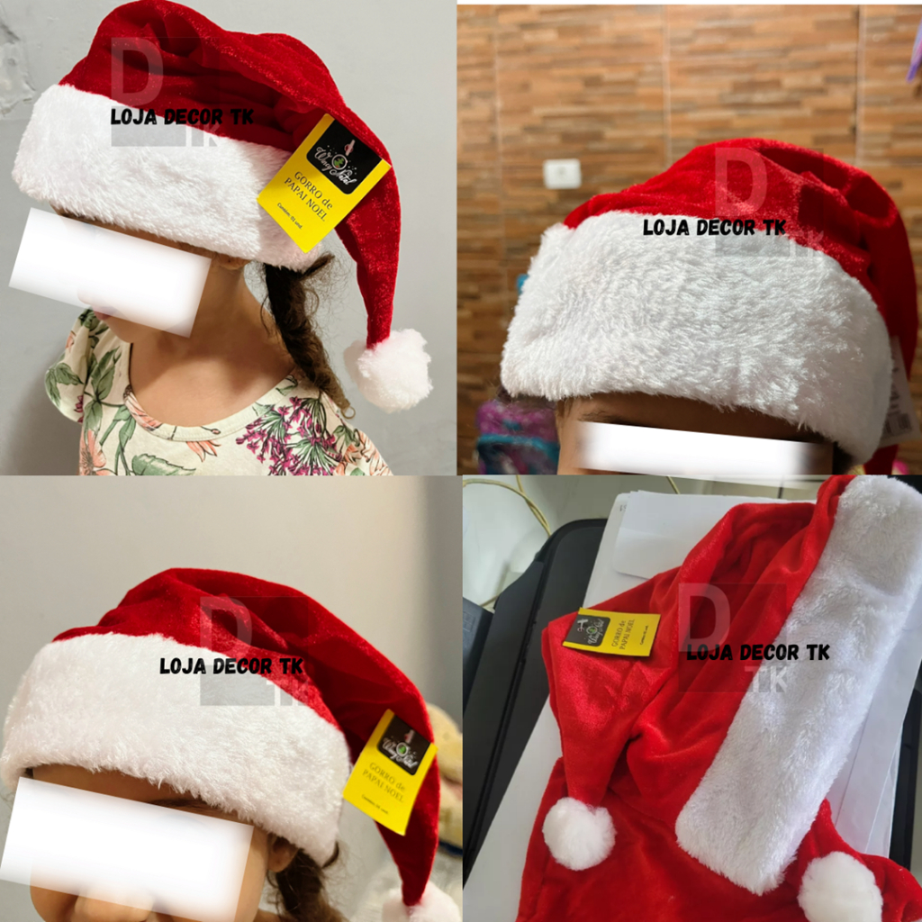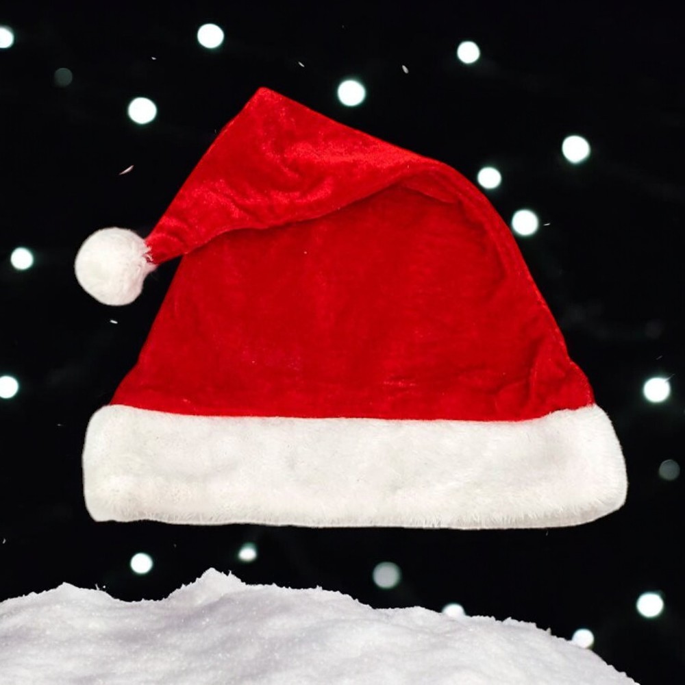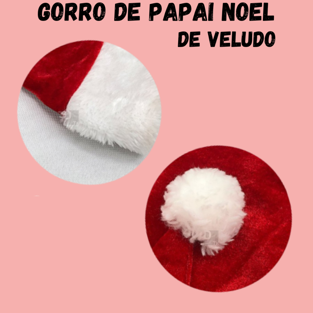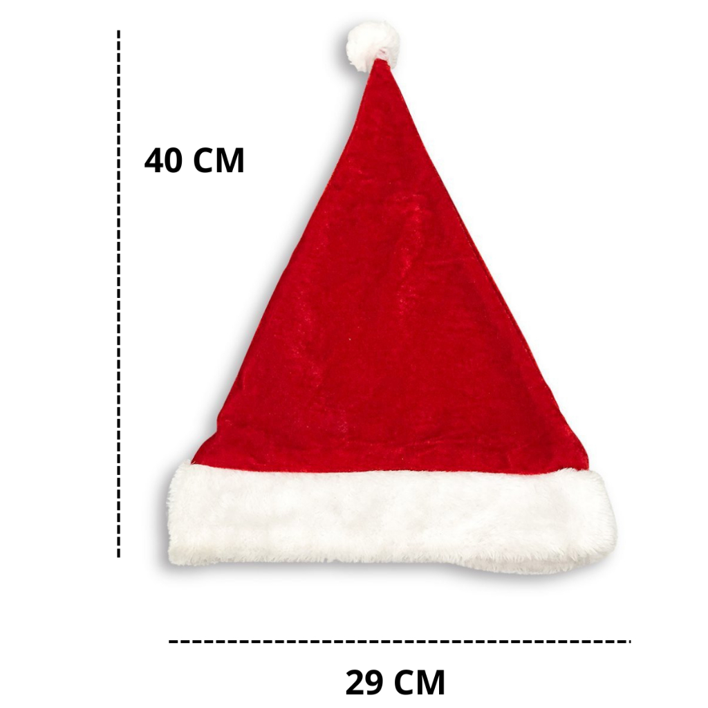 Gorro de Papai Noel de Veludo Vermelho 40 cm Natal Touca Chapél Natalino Pompom