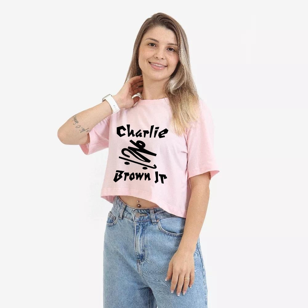 Cropped Camiseta Algodão Charlie Brown Jr. Skate Homenagem Blusa Feminina