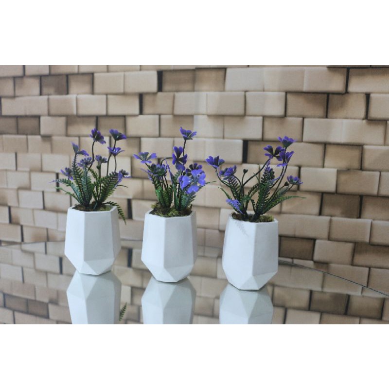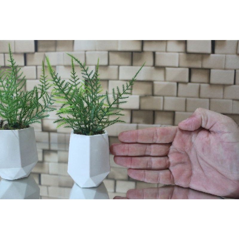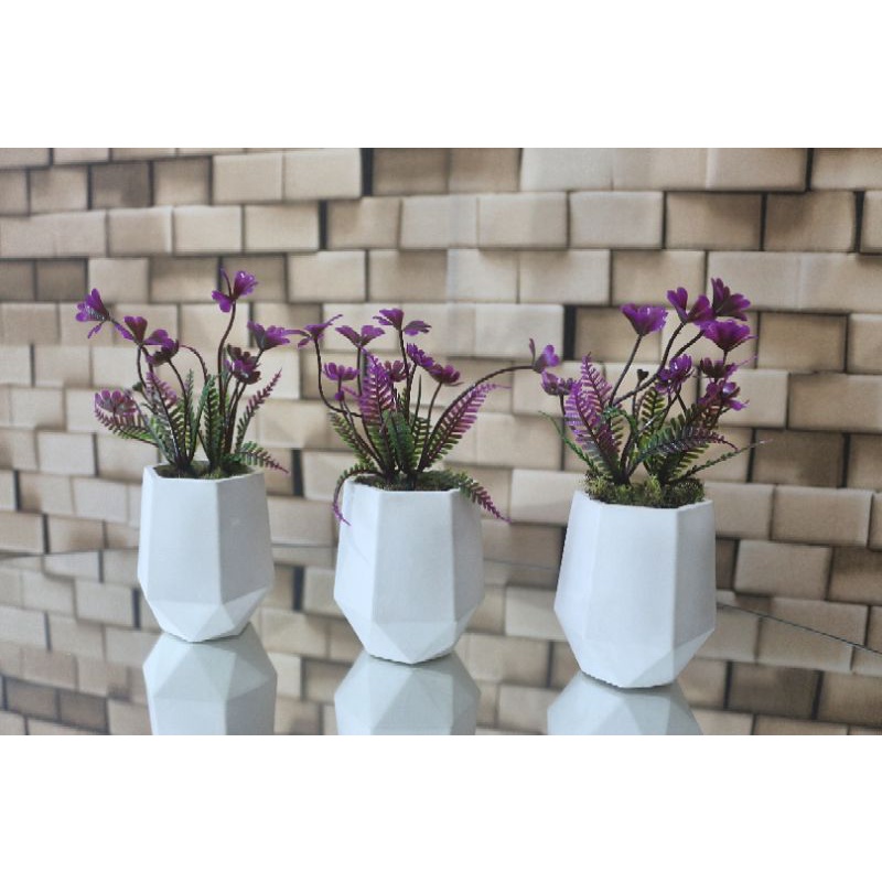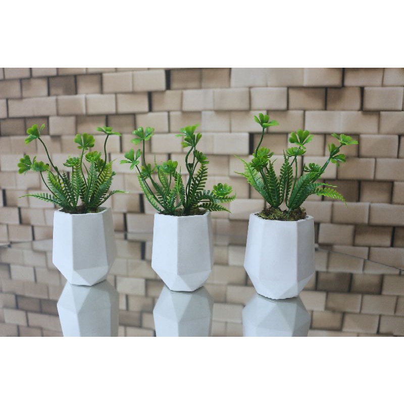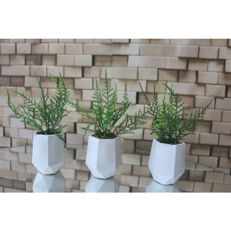 kit 3 vasos de gesso hexagonal com plantas artificiais, mini vasos, plantinha, folhagem