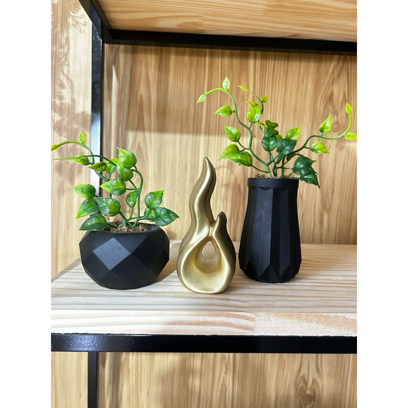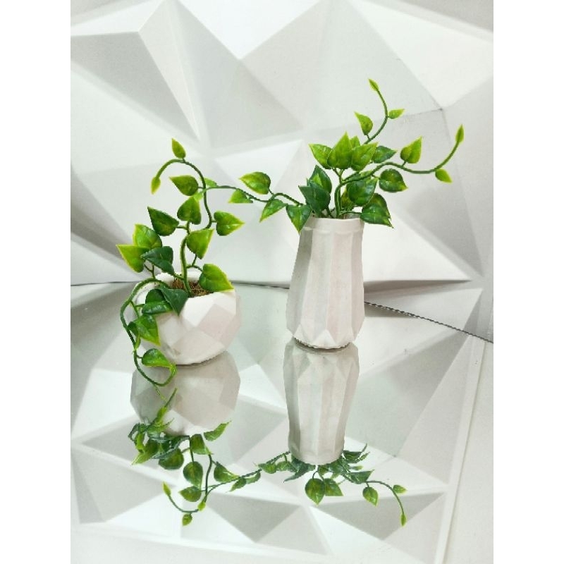 Kit gesso plantinha artificial vaso 3D, jibóia, folhagem, estátua moderna