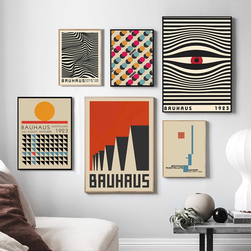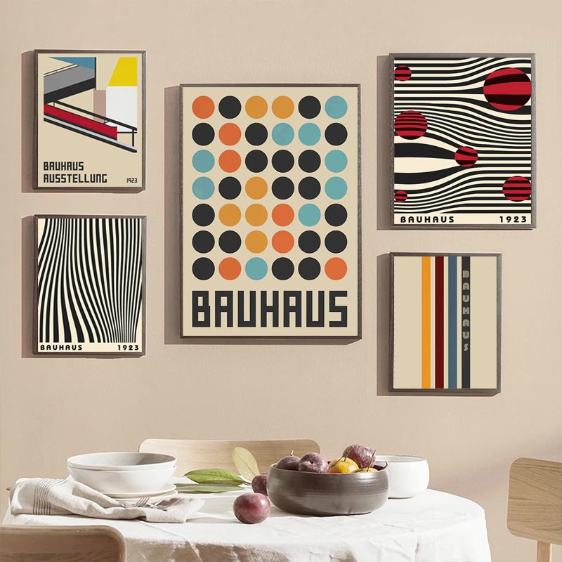 Linhas Abstratas Bauhaus Geometry Pôsteres De Listras Quadros Nórdicos Vintage De Parede Arte Tela Pintura E Impressões Para Decoração De Sala De Estar