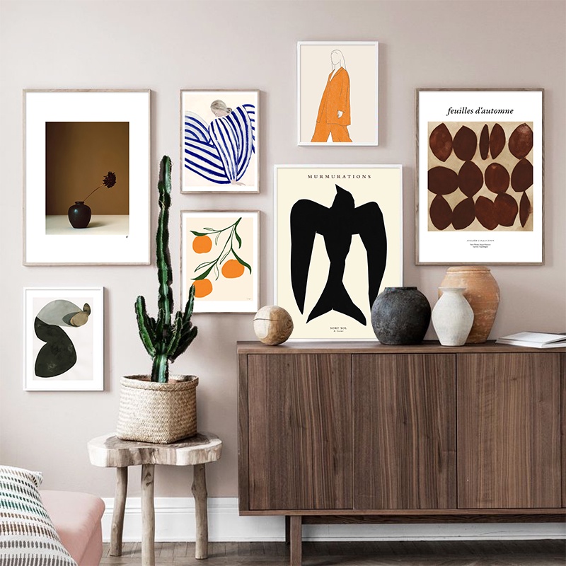 Pintura Geométrica Abstrata Em Tela Vaso Nórdico De Folhas Ginkgo Biloba Pôsteres De Arte Para Parede E Impressão De Fotos Decoração De Sala De Estar