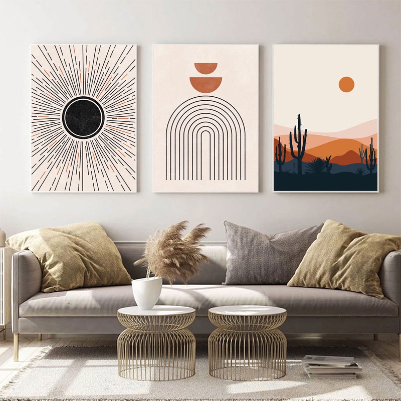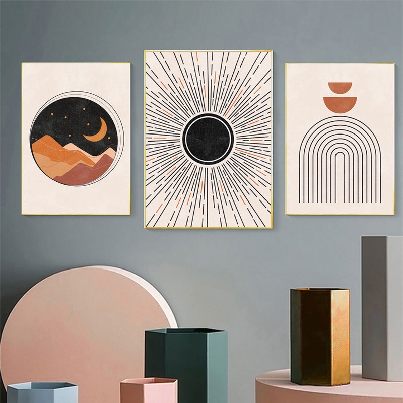 Pintura Boho Abstrata Planta De Sol Face Lunar Arte Laranja Pôsteres E Impressões Telas De Parede Nórdica Fotos Para Decoração De Salas