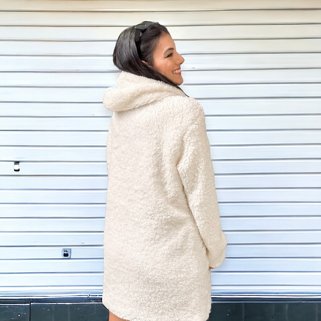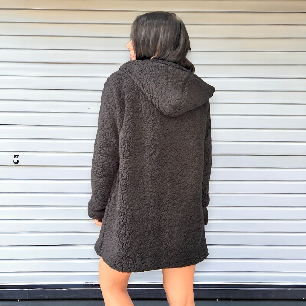 Casaco Sobretudo Teddy Com Capuz e Bolso Inverno Jaqueta Feminina Quentinha Manga Longa