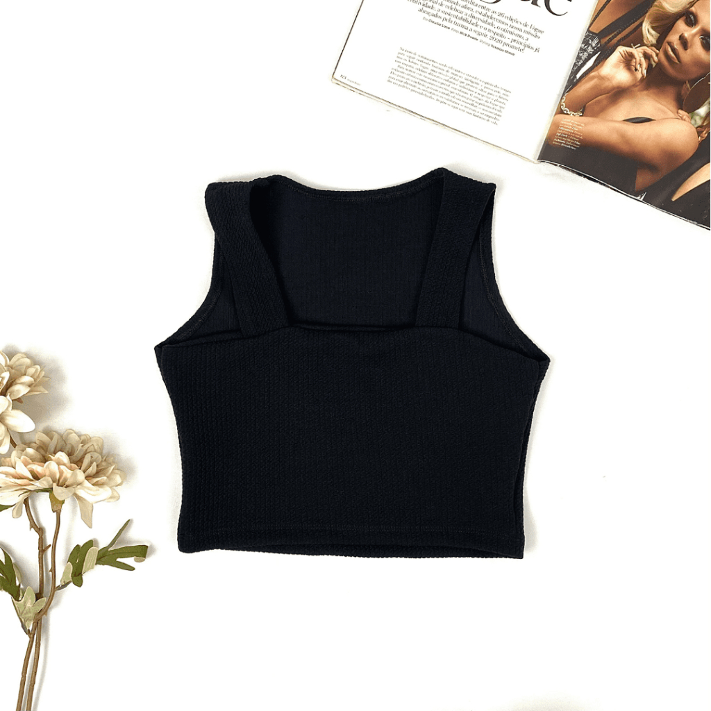 Cropped de Alcinha Basico Preto Blusinha Curta Decote Costa Fechada