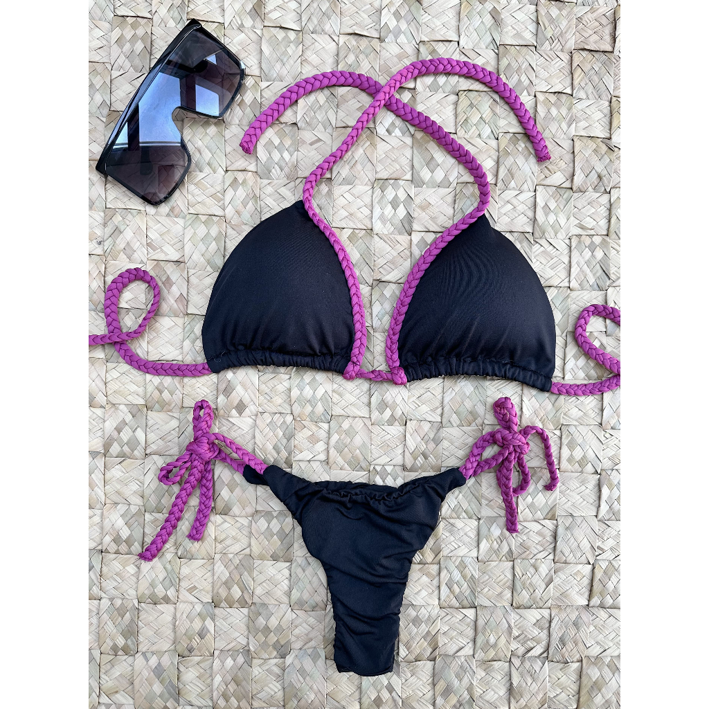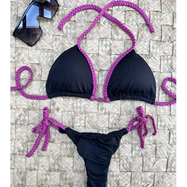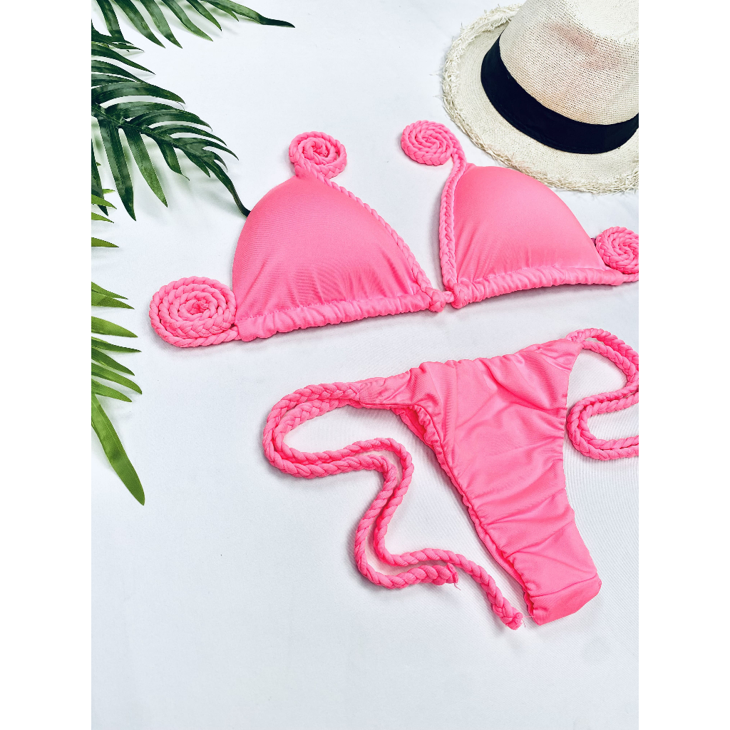 Biquini Moda Feminina Feminino Trançado Exclusivo Efeito 3D Verão 2025 Fio Dental