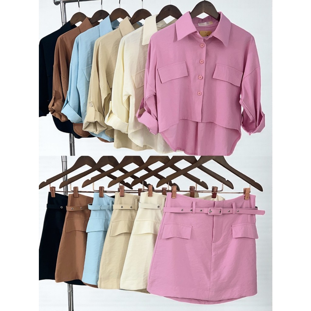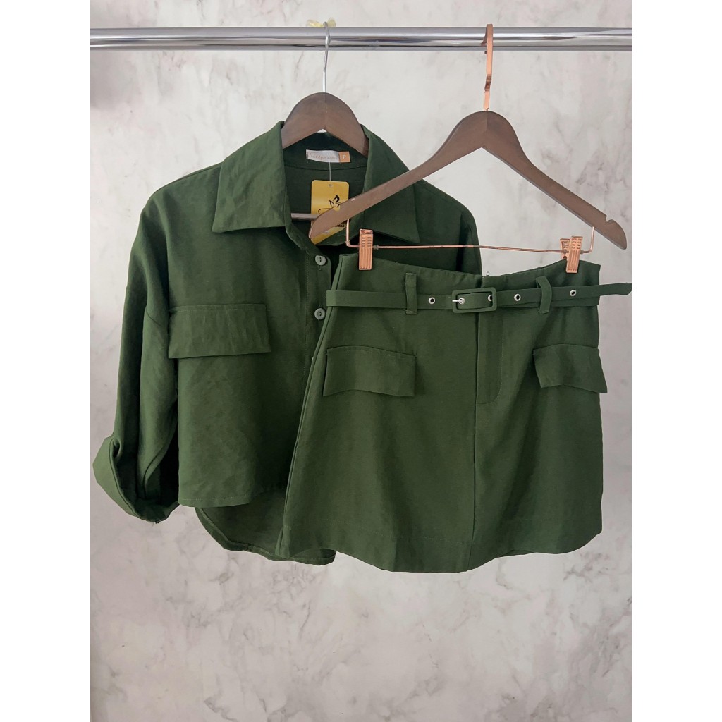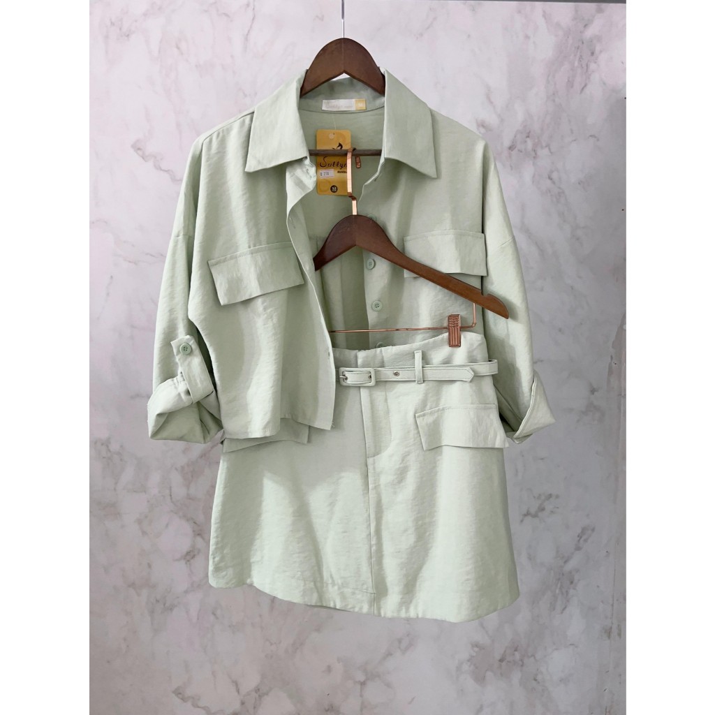 Conjunto Marrant Elegante | Camisa com Manga Três quarto e Short Saia Sofisticado | Com Cinto
