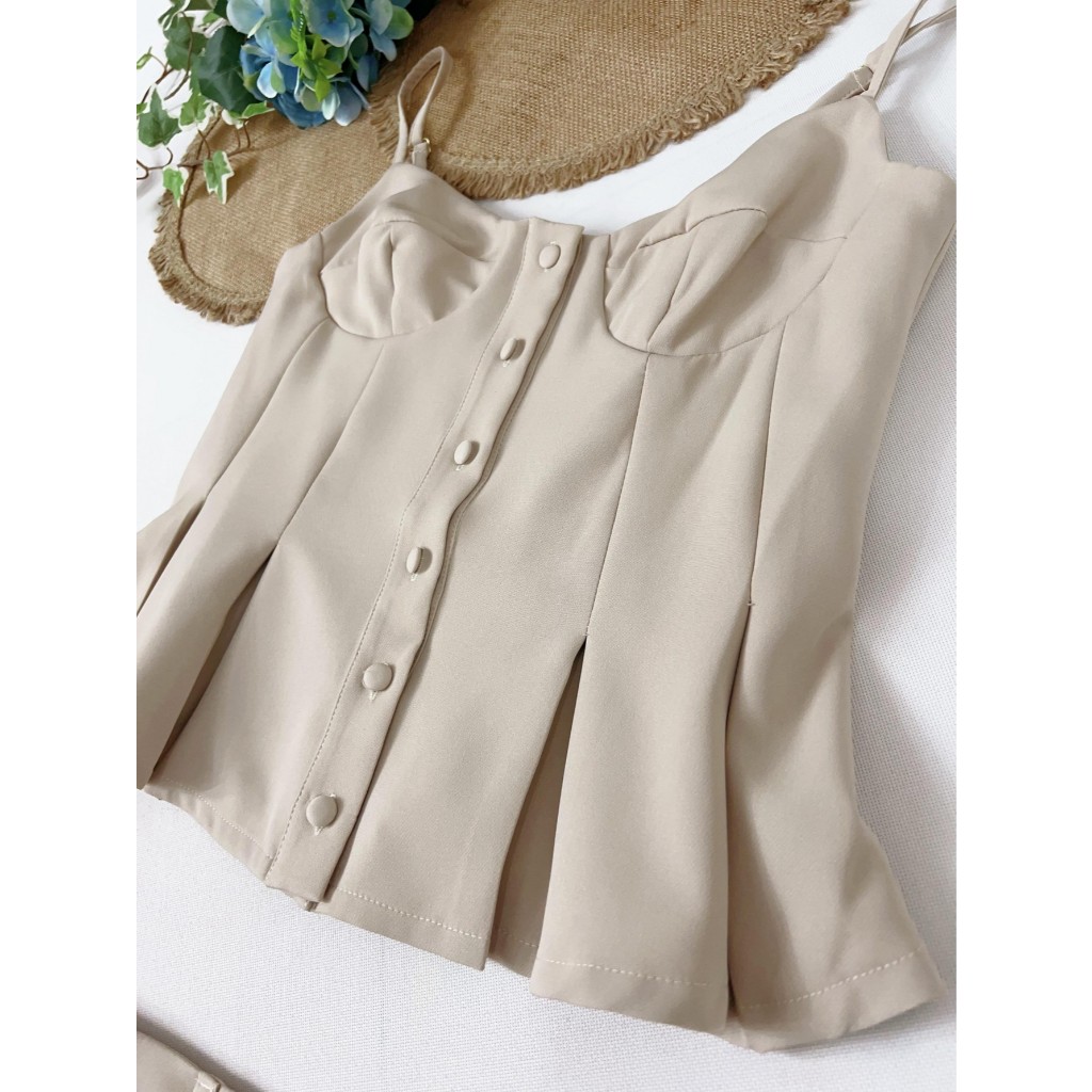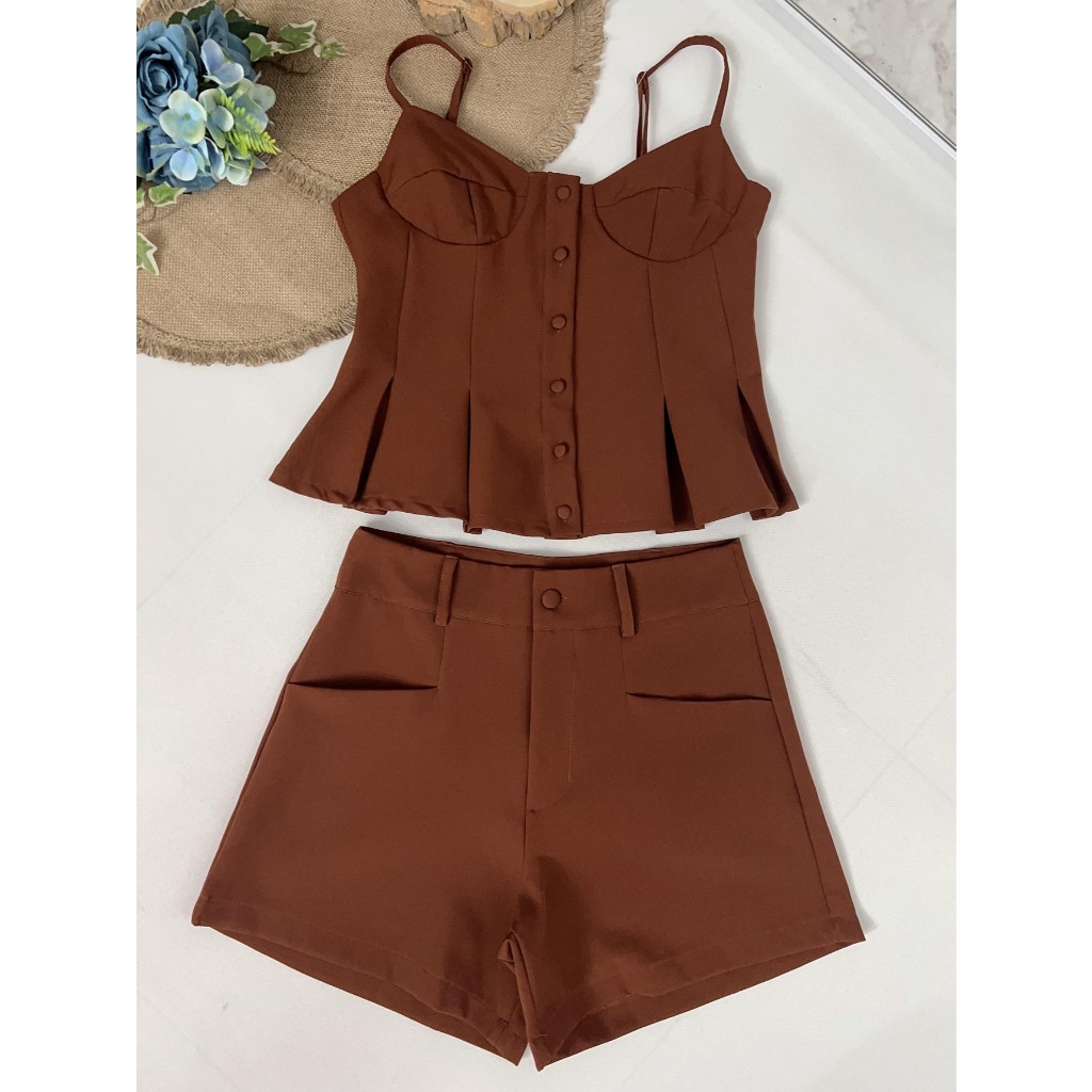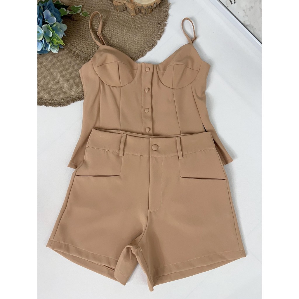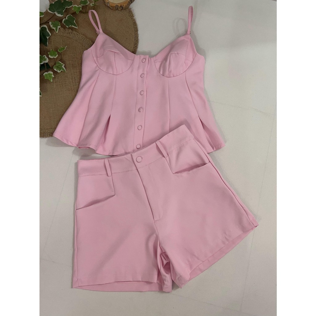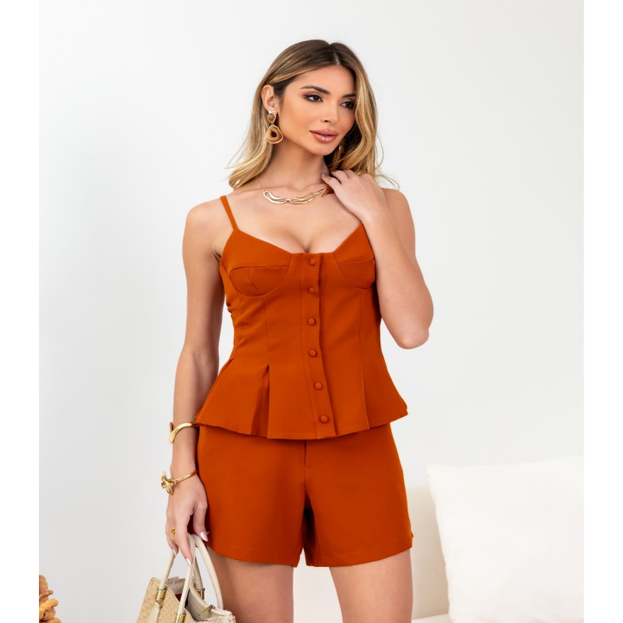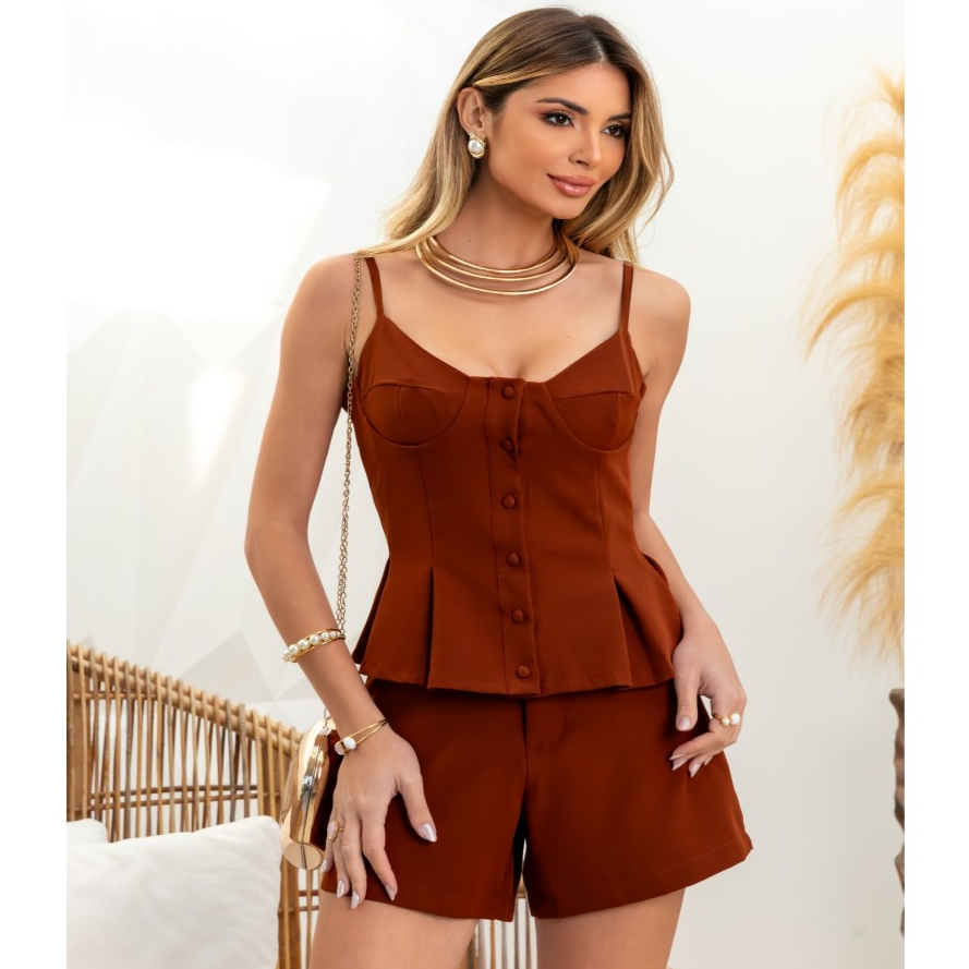 Conjunto Feminino Minimalista e Encantador|Alças Ajustáveis e Design em Baleia Aflorado|Barra Volume com Botões Funciona