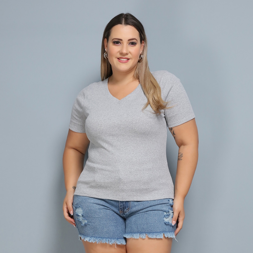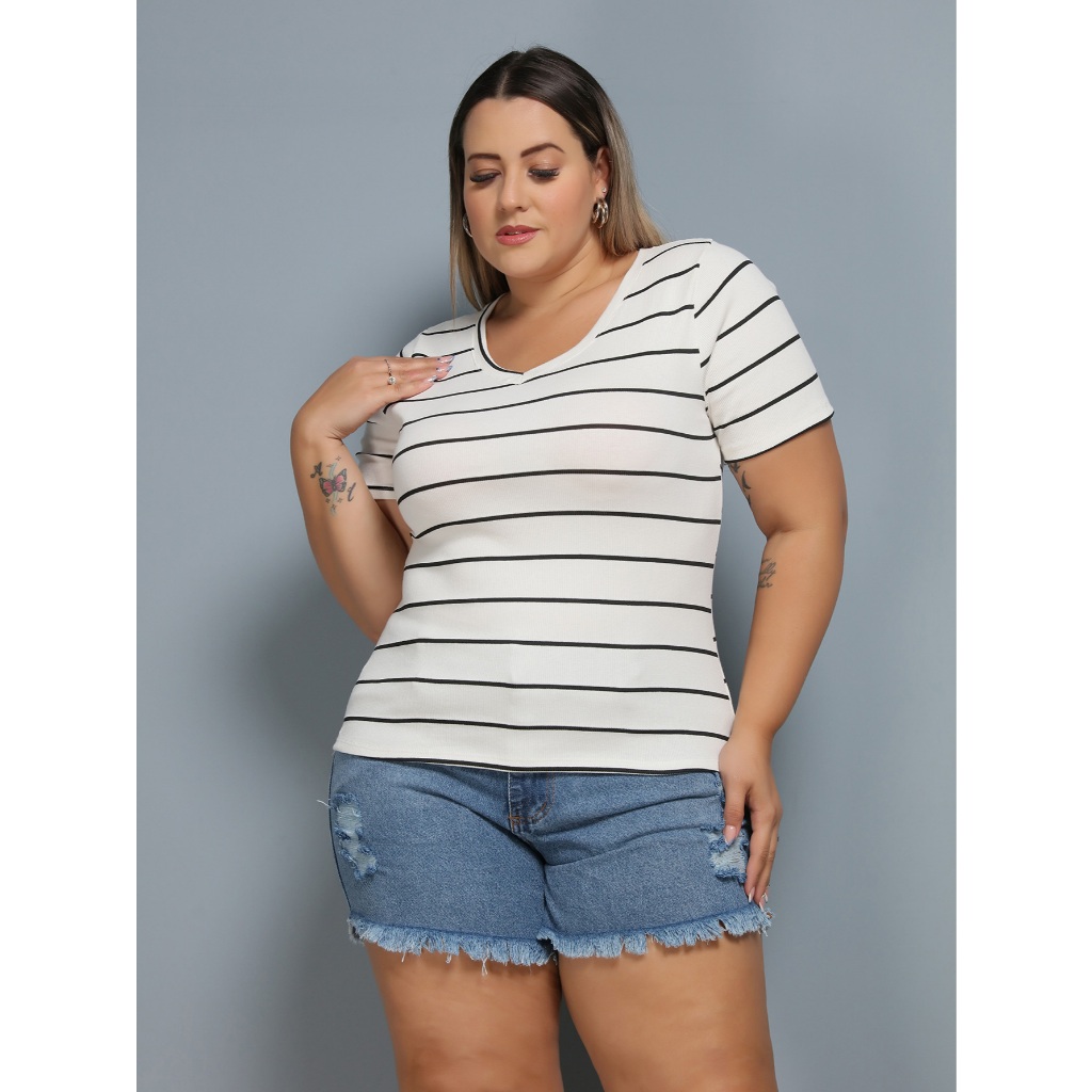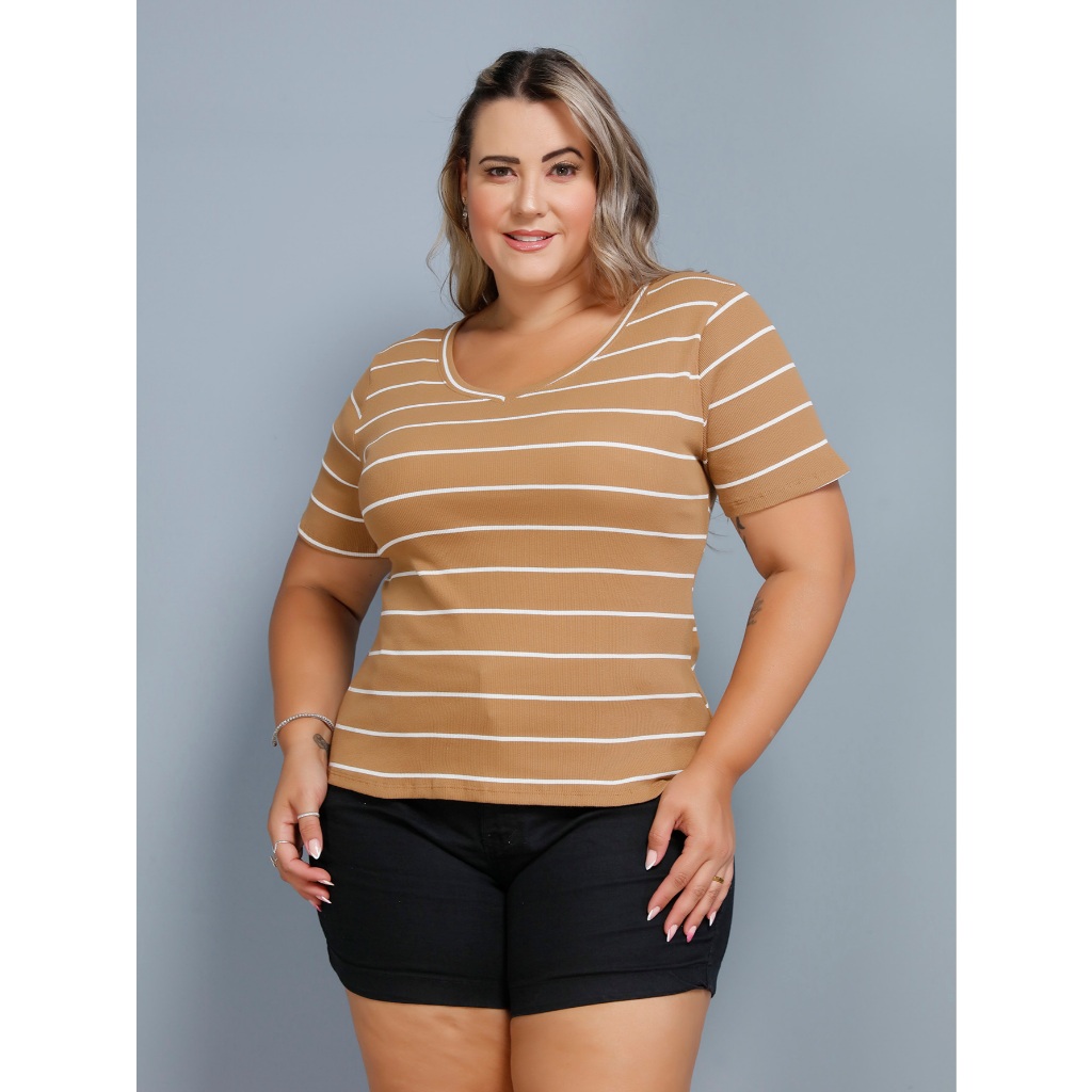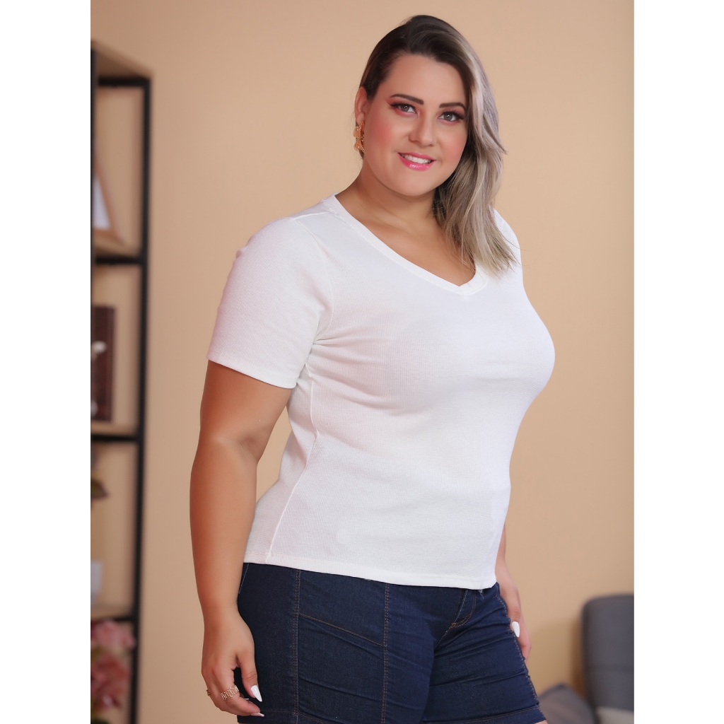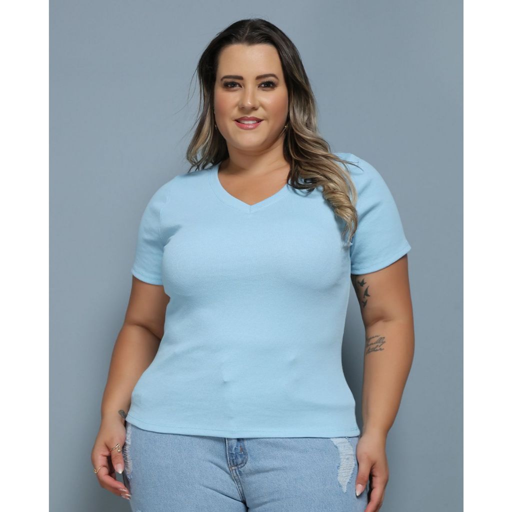 T Shirt Feminina Camisa Camiseta Canelada Plus Size