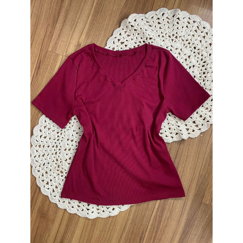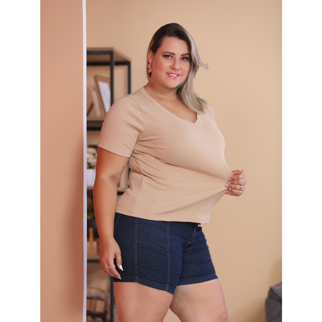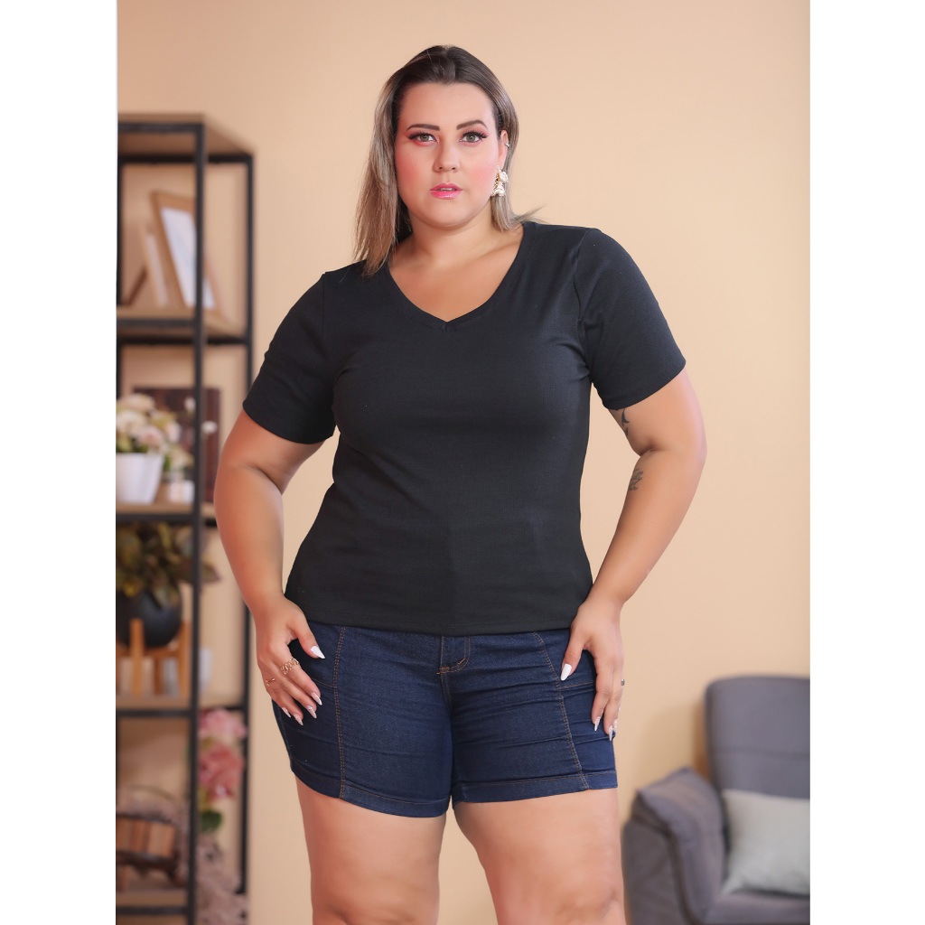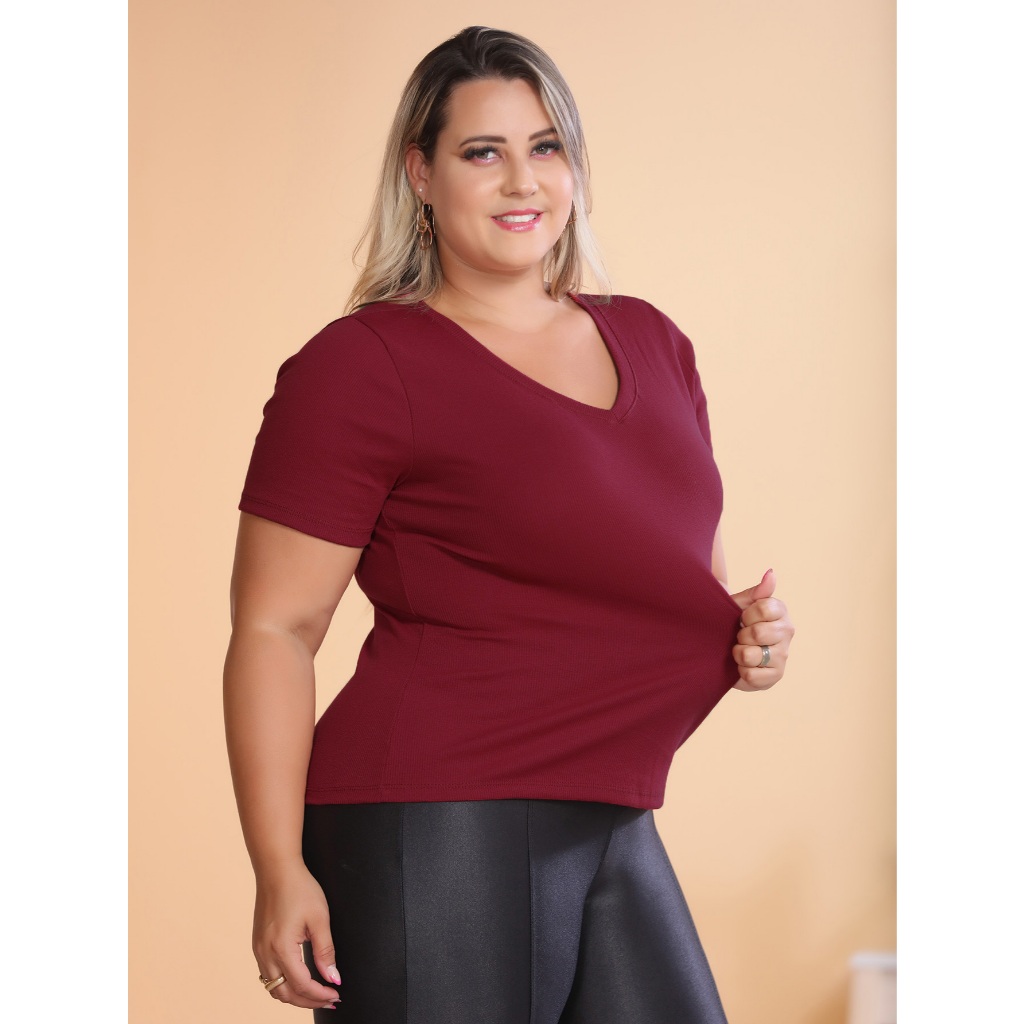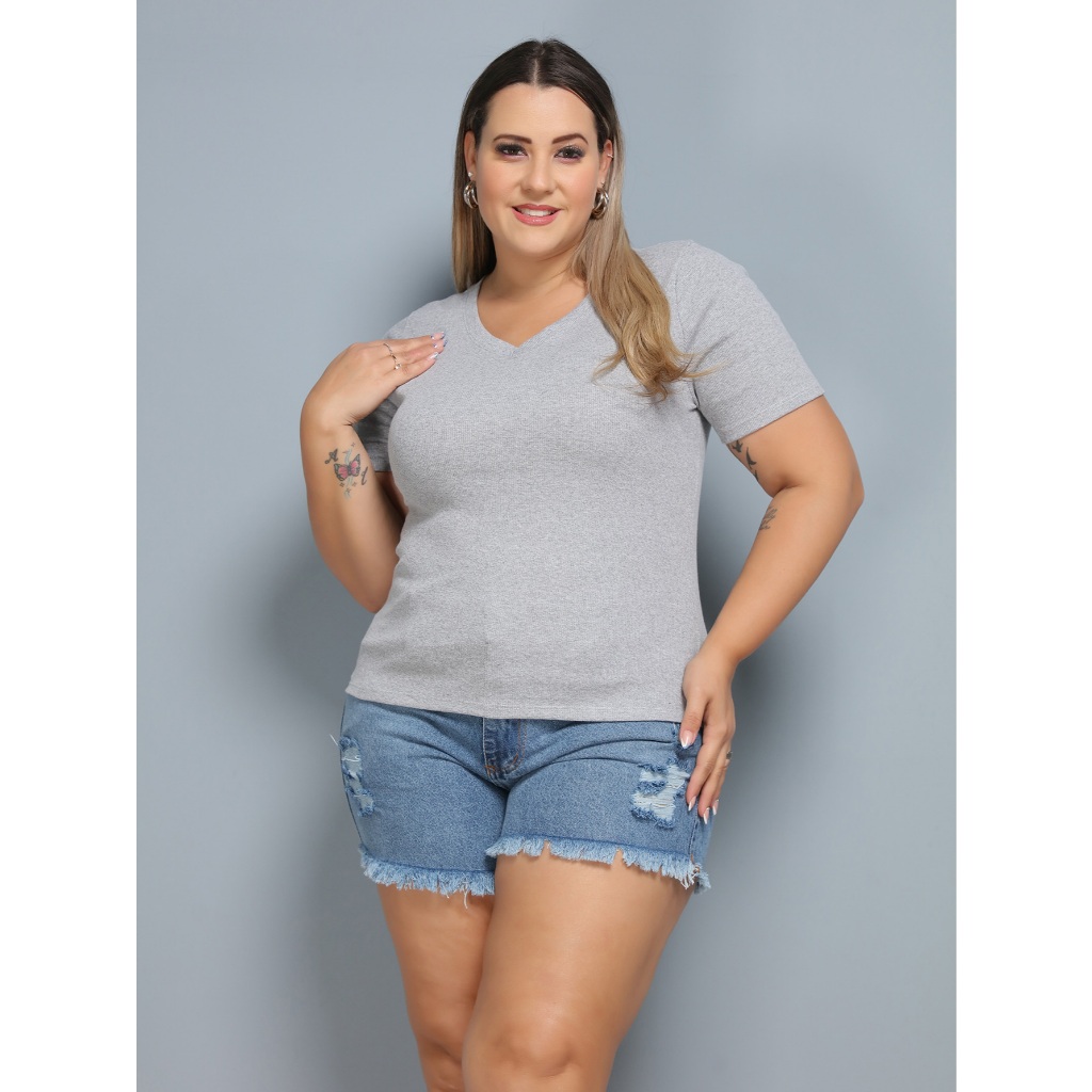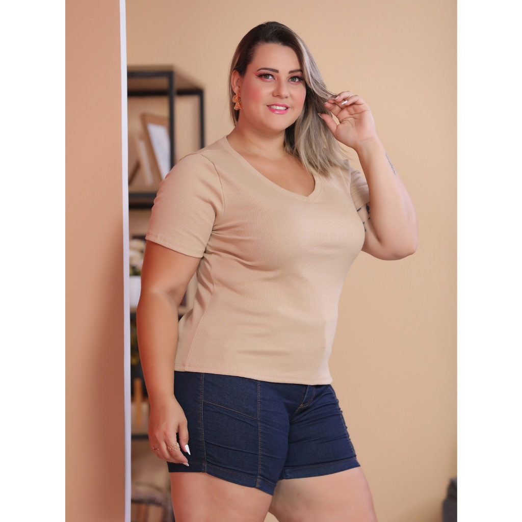 T Shirt Feminina Camisa Camiseta Canelada Plus Size