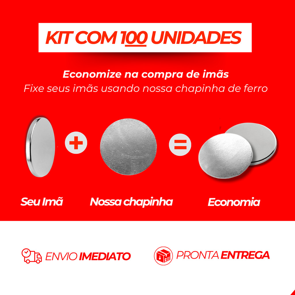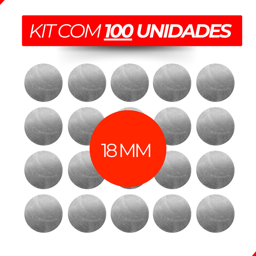 Kit 100 Chapinha de Metal (18 mm) Para Imã de Neodímio