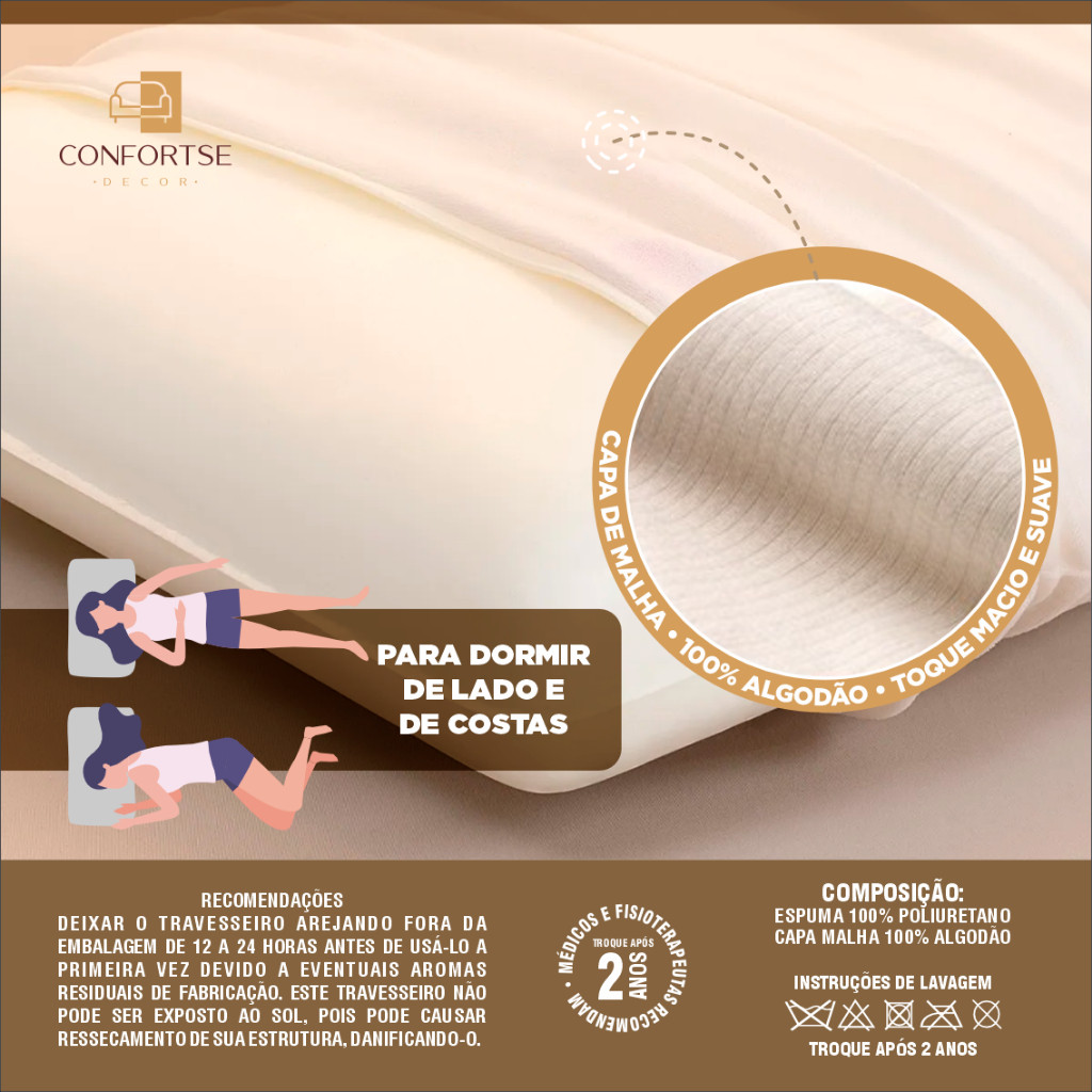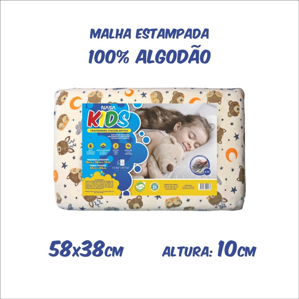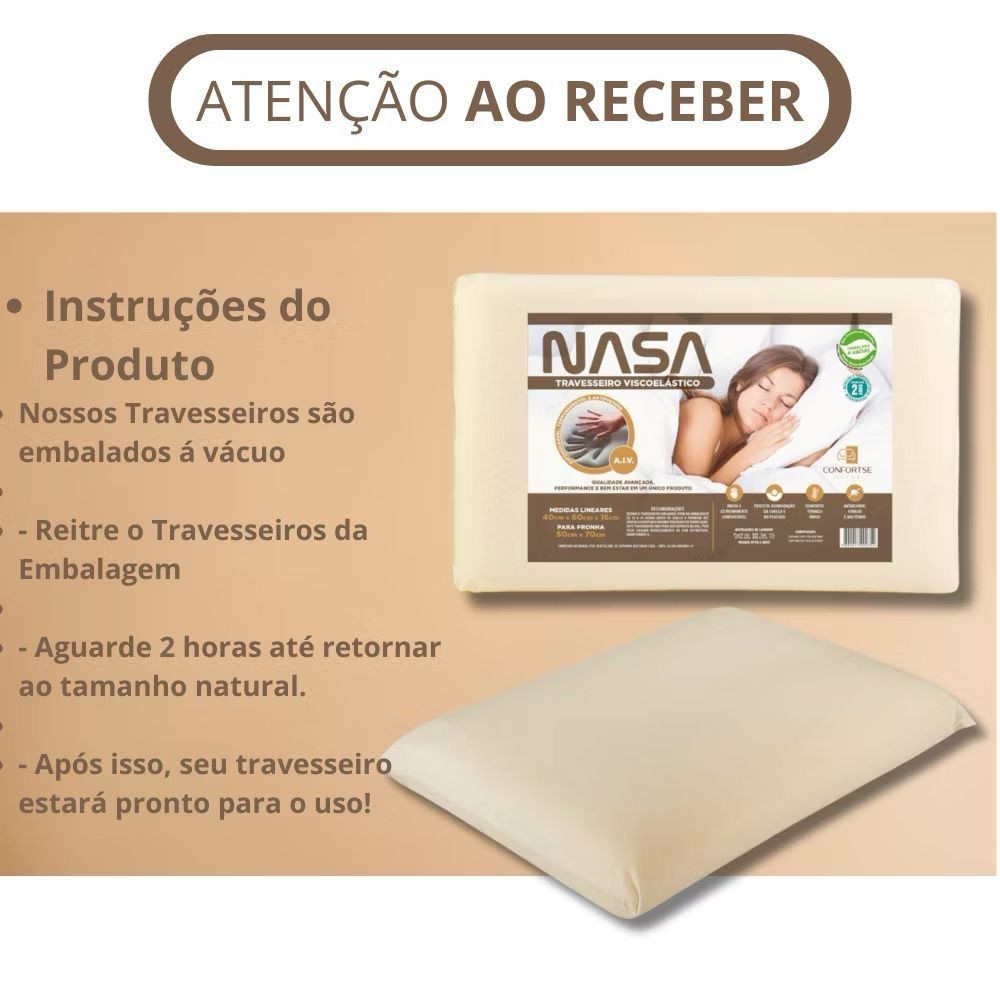 Kit Com 2 Travesseiro Nasa-X Original Viscoélastico Alto Antialérgico Antiácaro Ortopédico