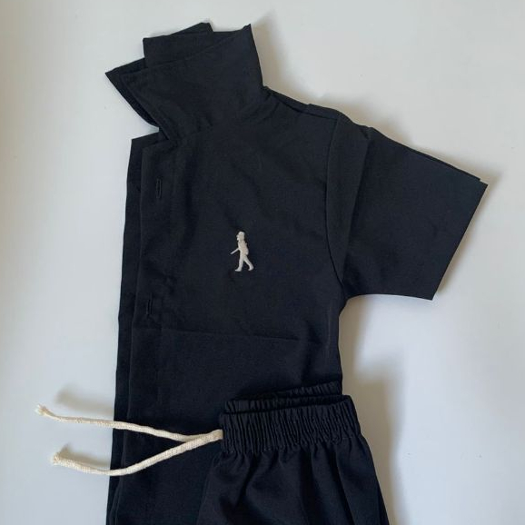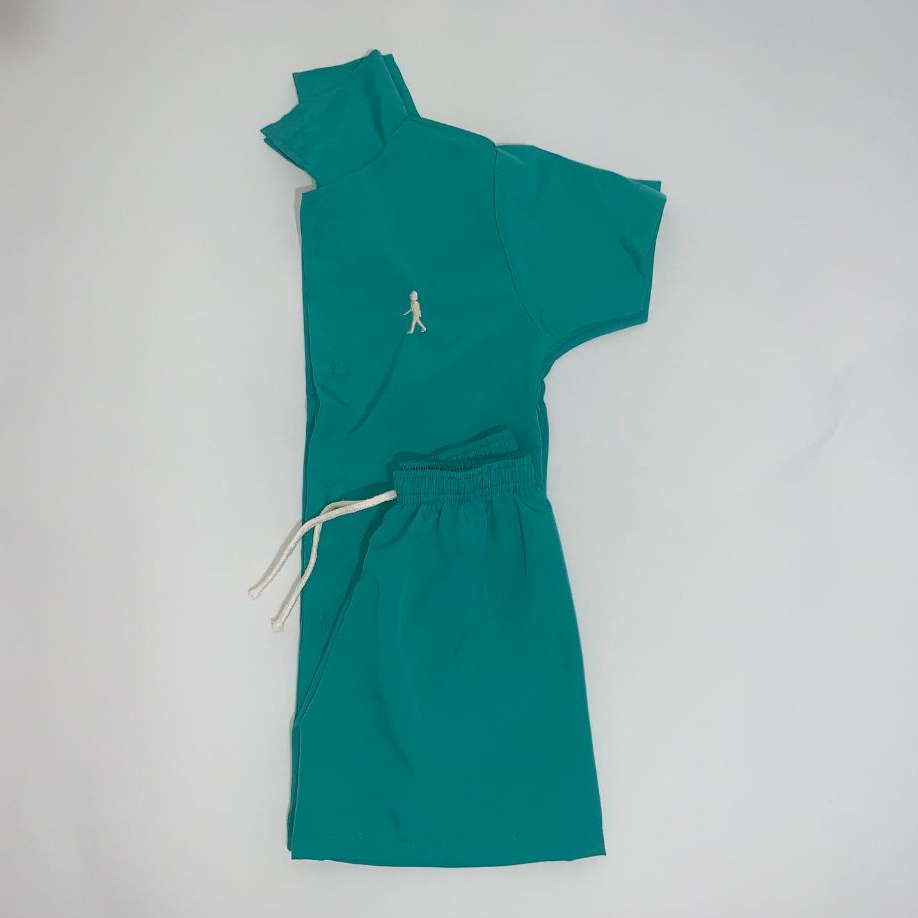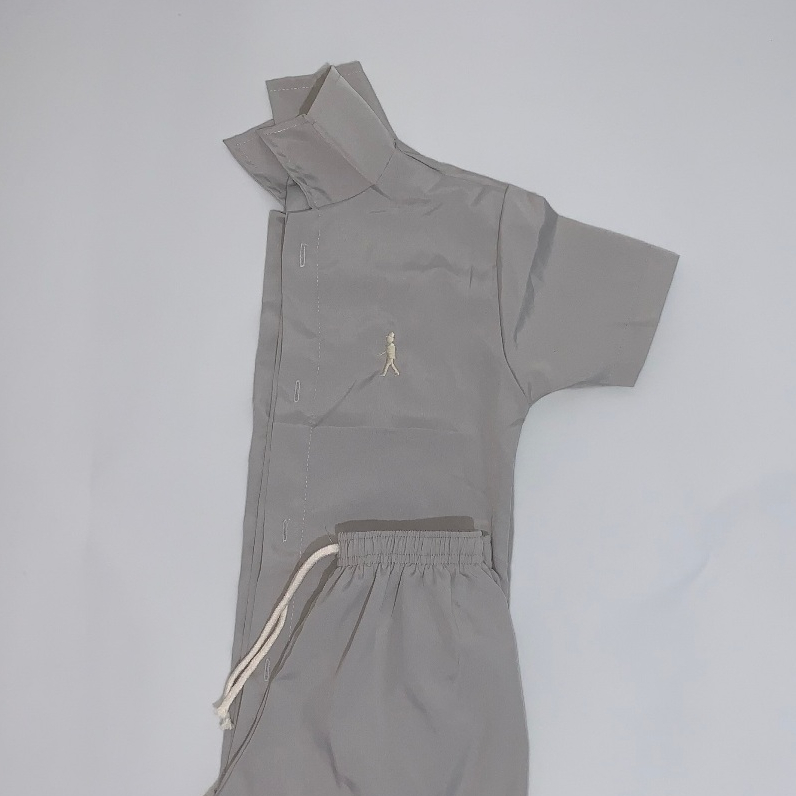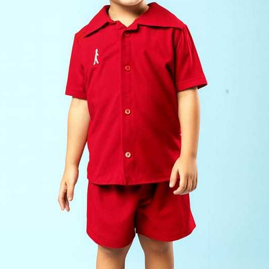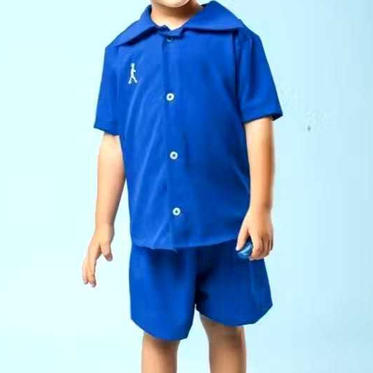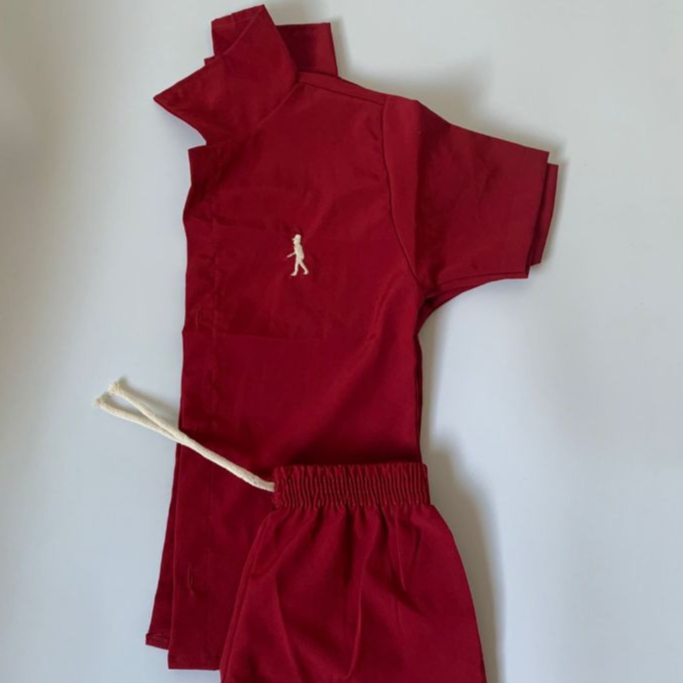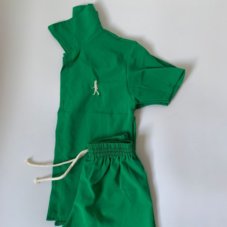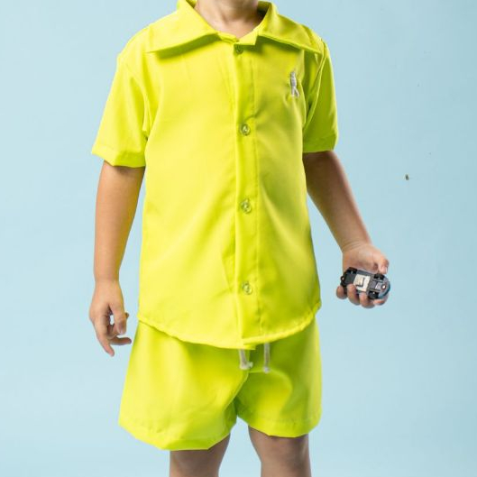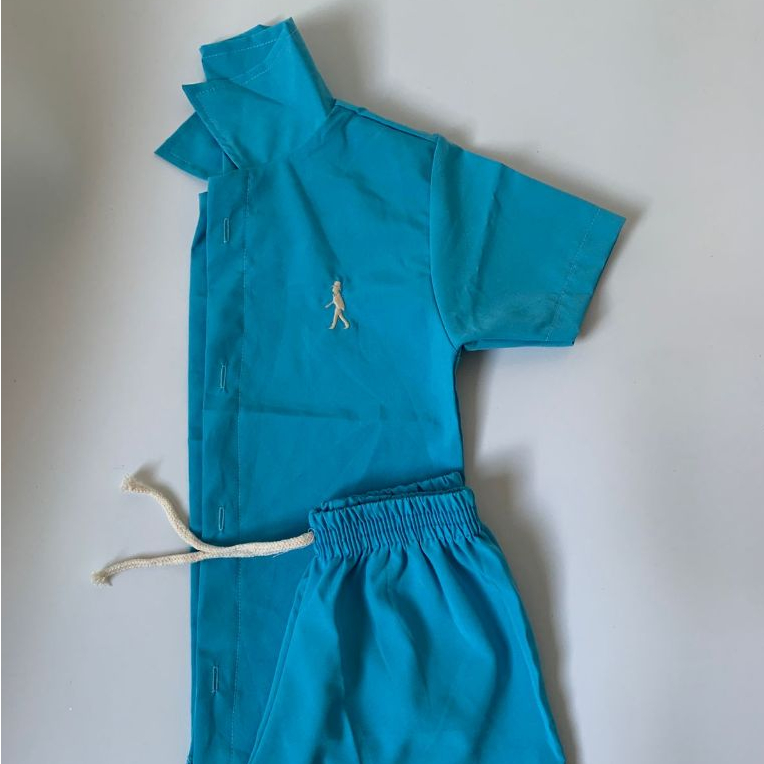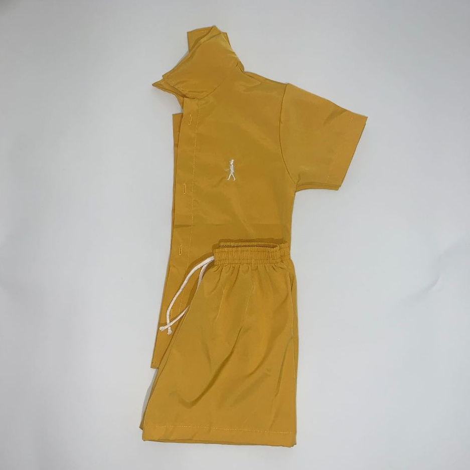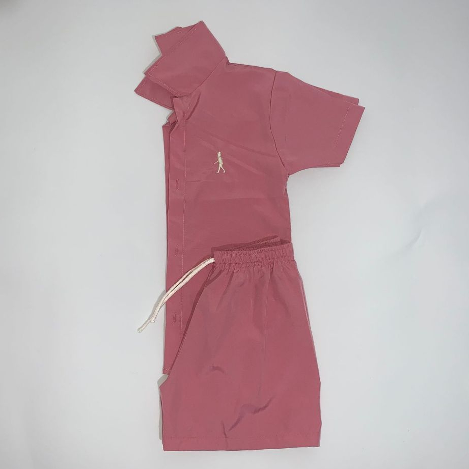 Conjunto Infantil Masculino 2 Peças Roupas de Criança Camisa de Botão e Short Bermuda Tecido Crepinho Menino