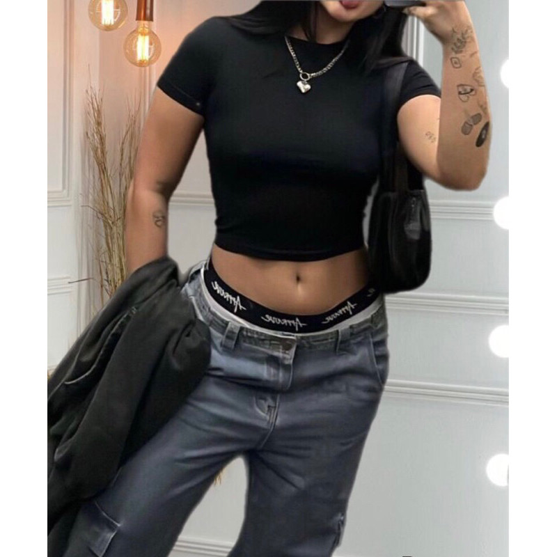 cropped Feminino Baby tee verão 2026 malha fria leve com proteção uv 50 .sexy casual