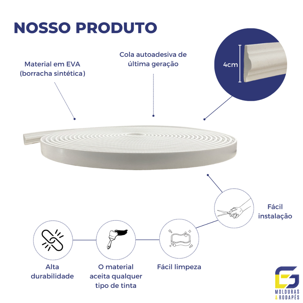 Roda Meio Moldura Boiserie de EVA Flexível e Autocolante Sirius 4cm X 1,5cm