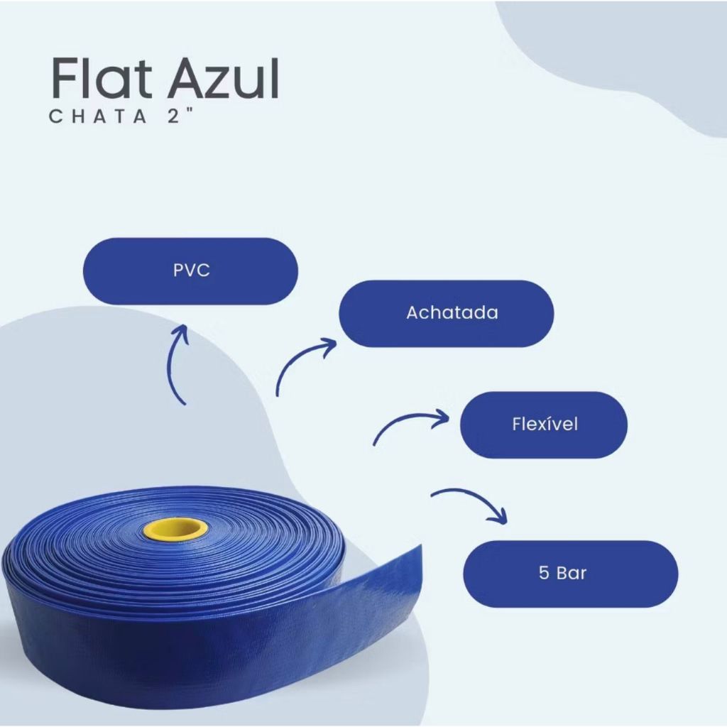 MANGUEIRA FLAT 2 POLEGADAS AZUL DE 30 METROS A 5 METROS, ESCOAR OU BOMBIAR AGUA E ESGOTO
