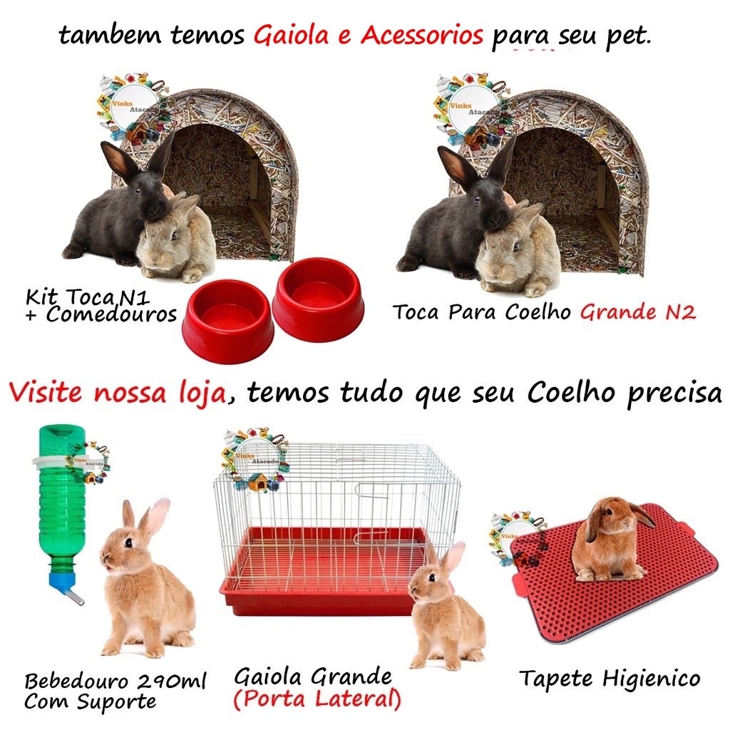 Kit Bebedouro E Comedouro Para Coelho Mini Coelho Chinchila Porquinho da Índia 290ml