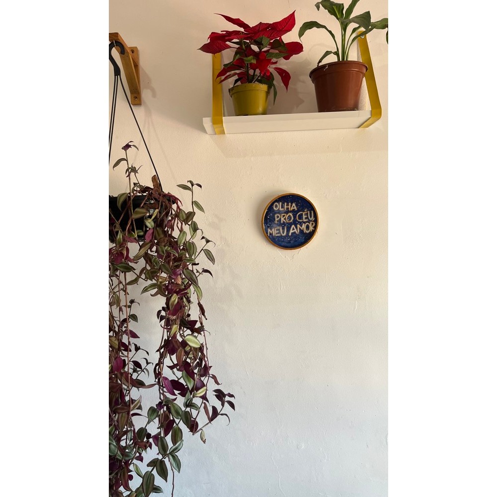 Quadrinho Redondo Decorativo "Olha Pro Céu Meu Amor" - Arte Artesanal feita a mão para Parede (16x16 cm)