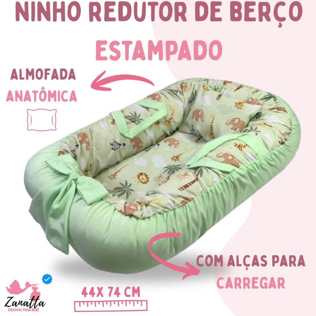 Kit Ninho Redutor Berço Bebe com Almofada Amamentação 2 Peças Enxoval Menina Menino Safari Verde