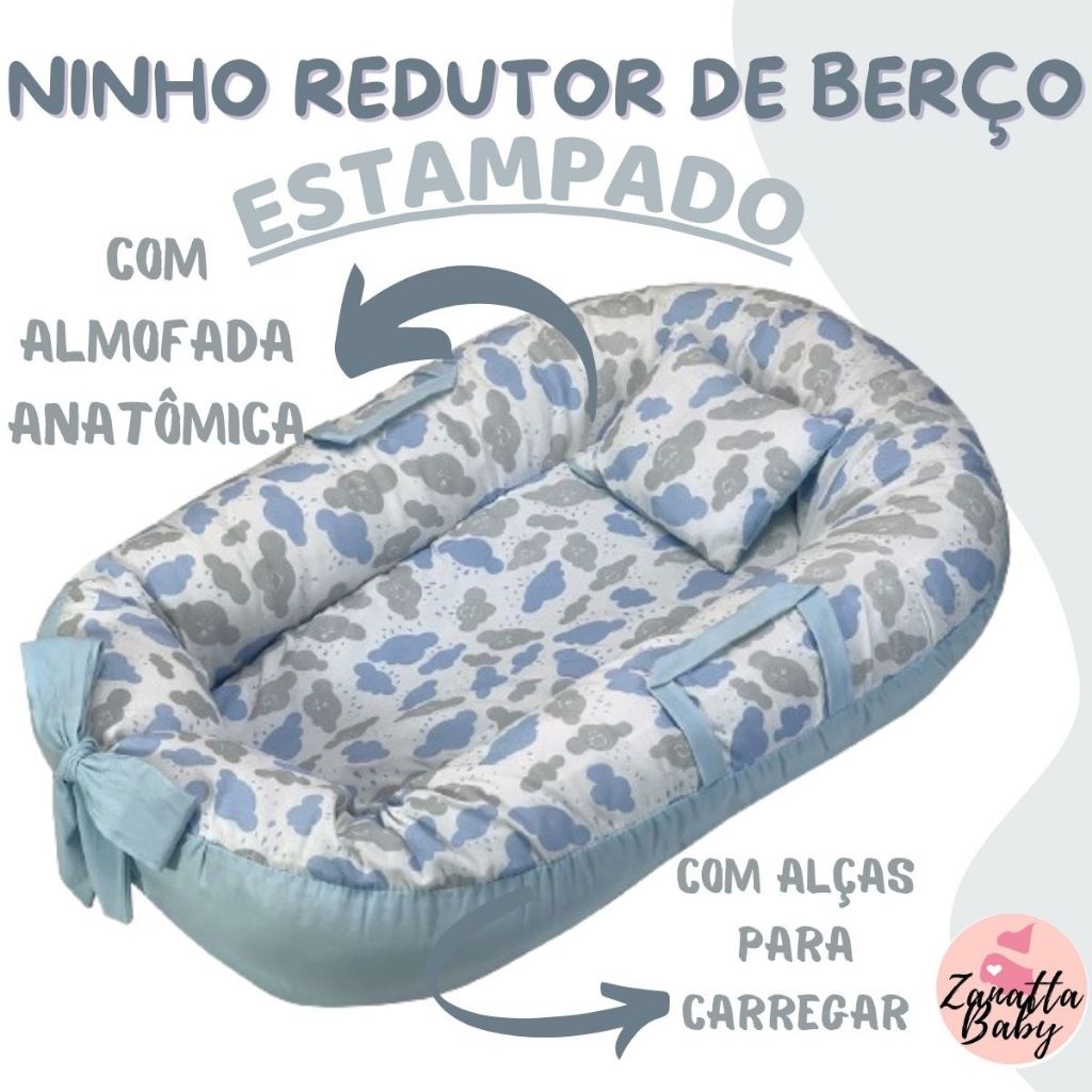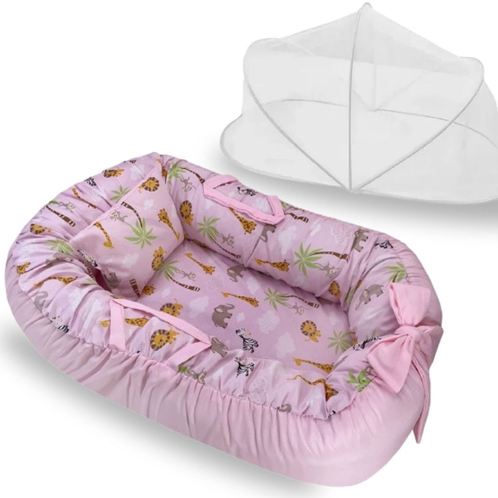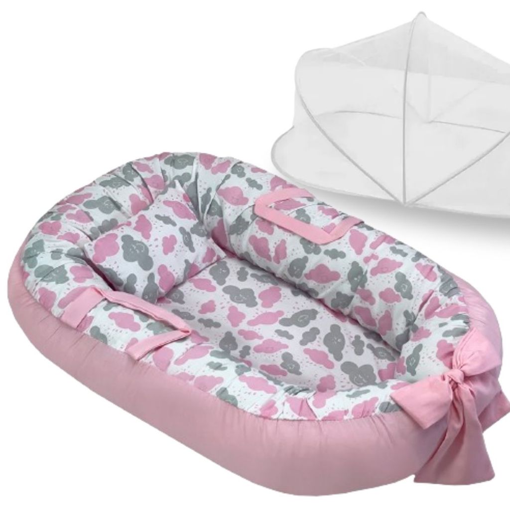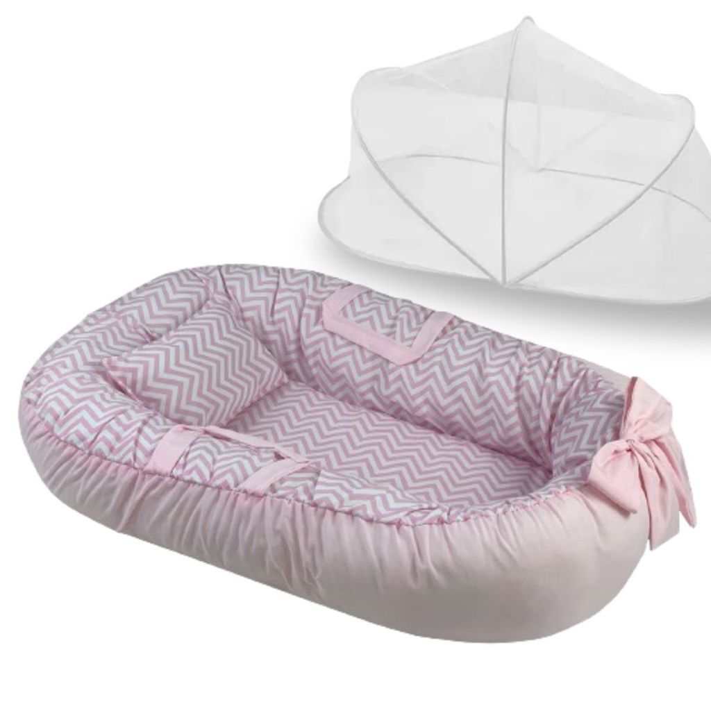 Ninho Redutor de Berço Para Bebe Mosquiteiro Portátil Kit 2 Peças Enxoval Menina Menino Rosa Azul