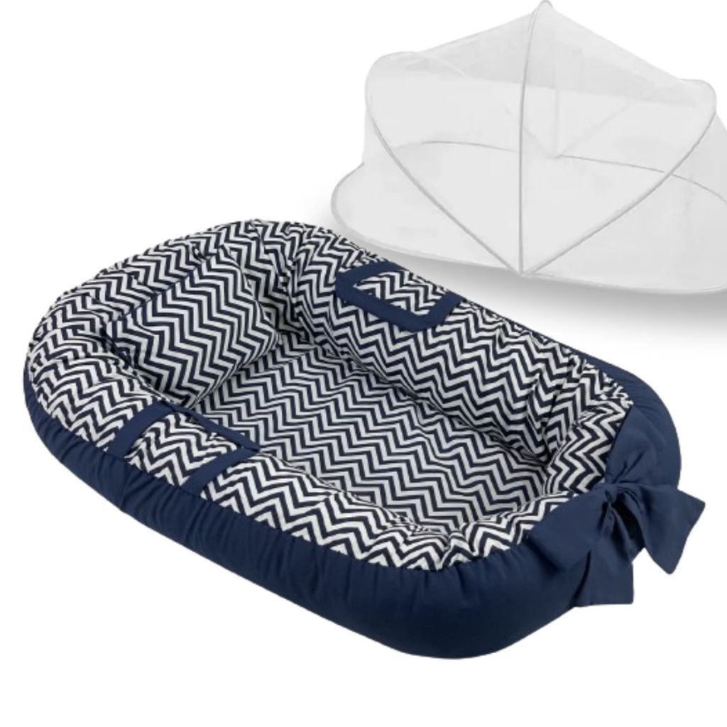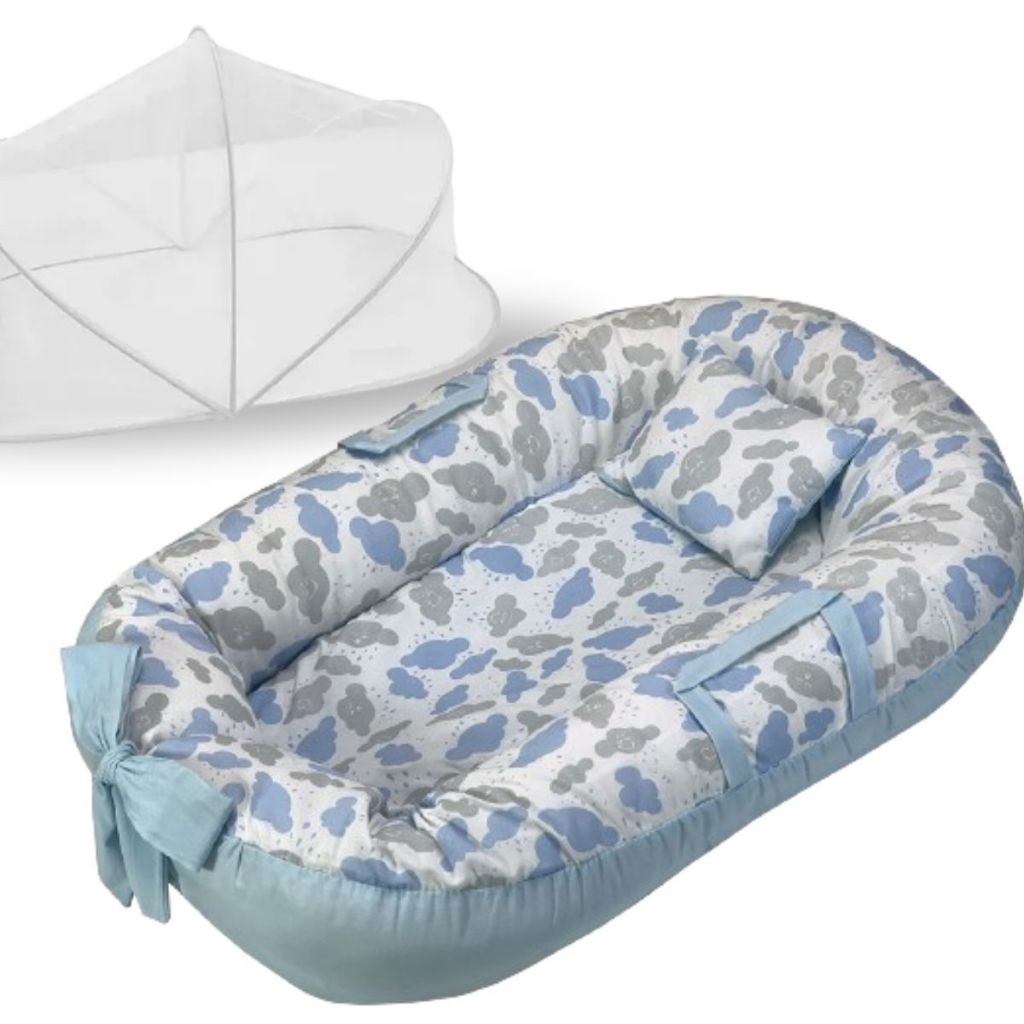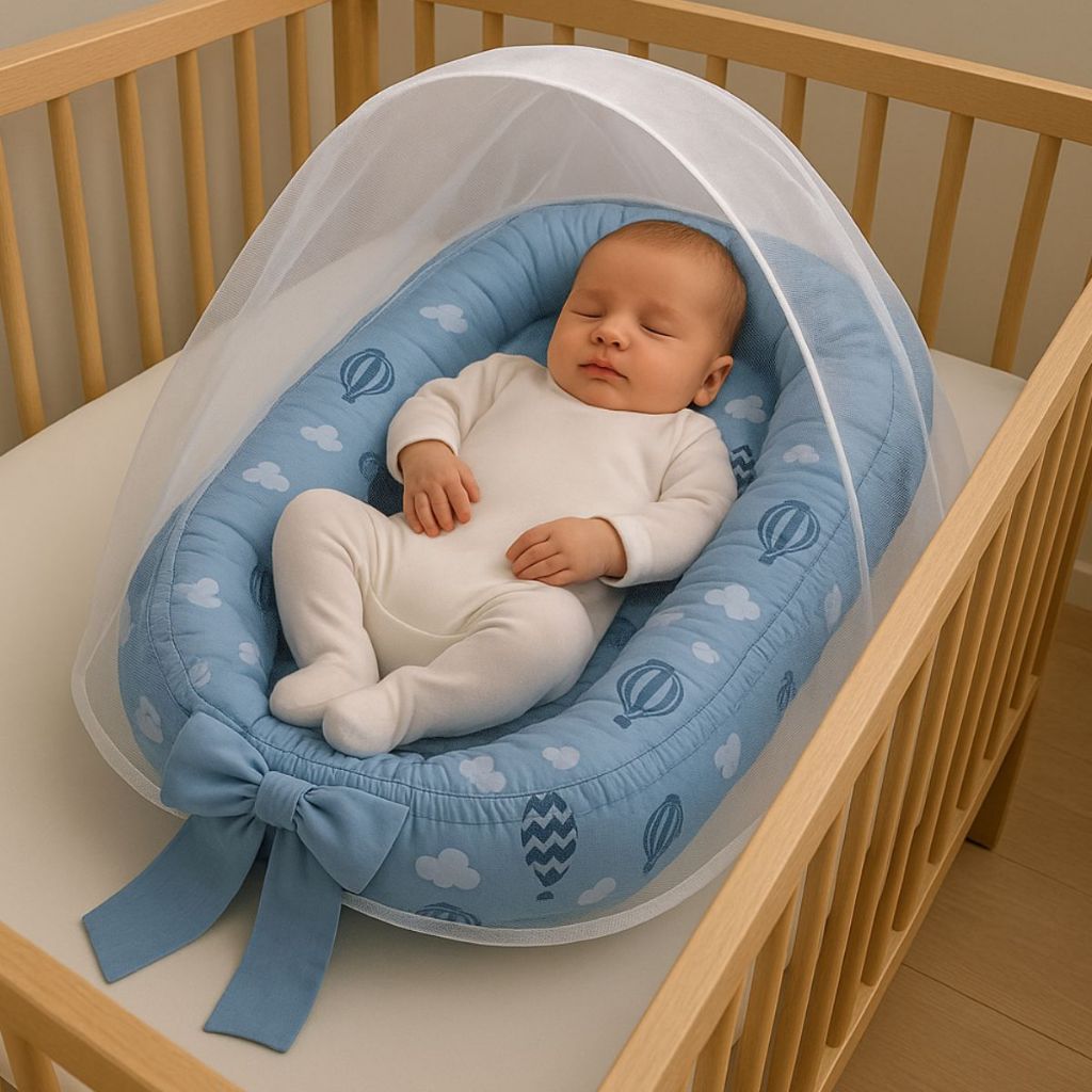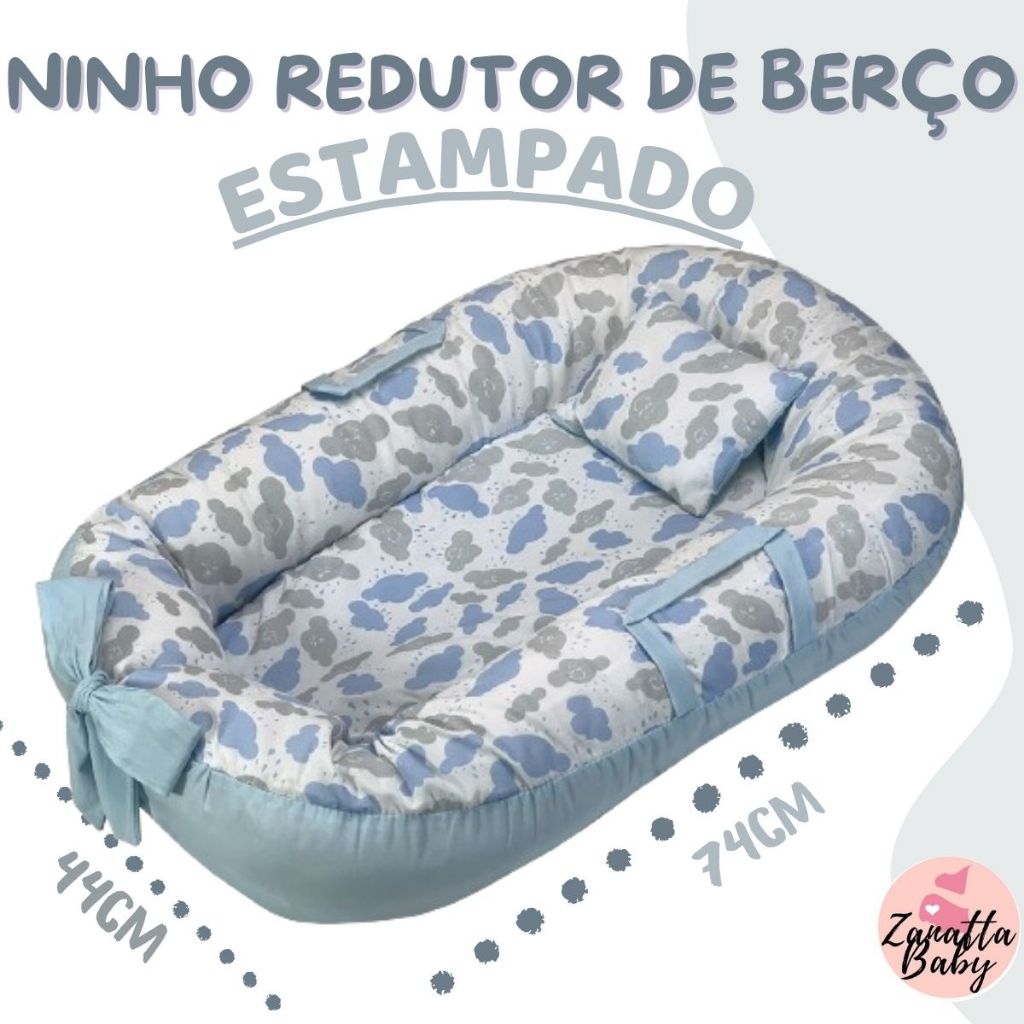 Ninho Redutor de Berço Para Bebe Mosquiteiro Portátil Kit 2 Peças Enxoval Menina Menino Rosa Azul