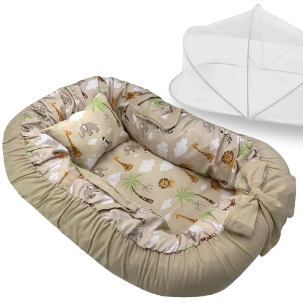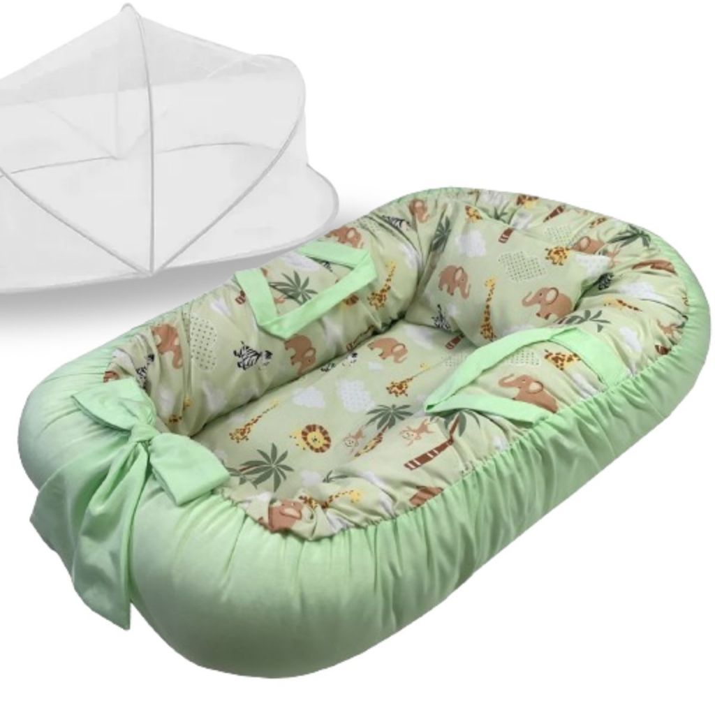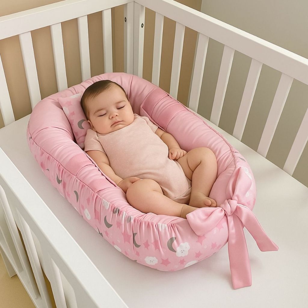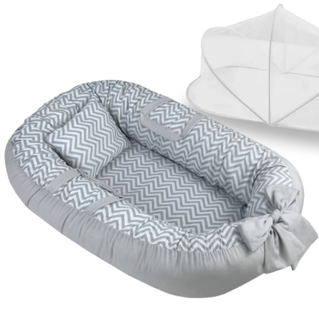 Ninho Redutor de Berço Para Bebe Mosquiteiro Portátil Kit 2 Peças Enxoval Menina Menino Rosa Azul