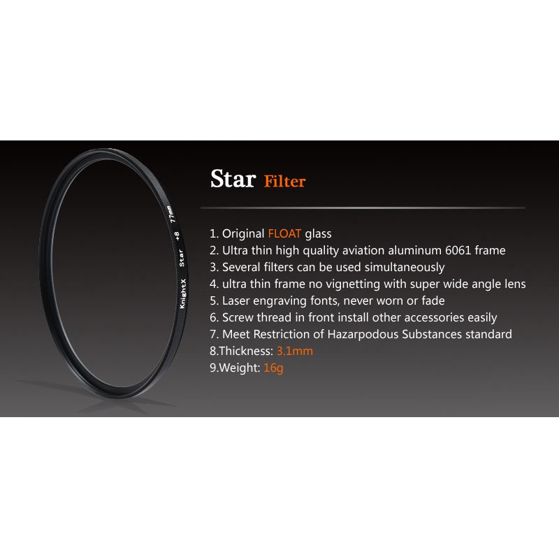 KnightX Star 4X Linha 6X 8X Filtro De Lente De Câmera 49mm 52mm 55mm 58mm 62mm 67mm 72mm 77 dslr Luz