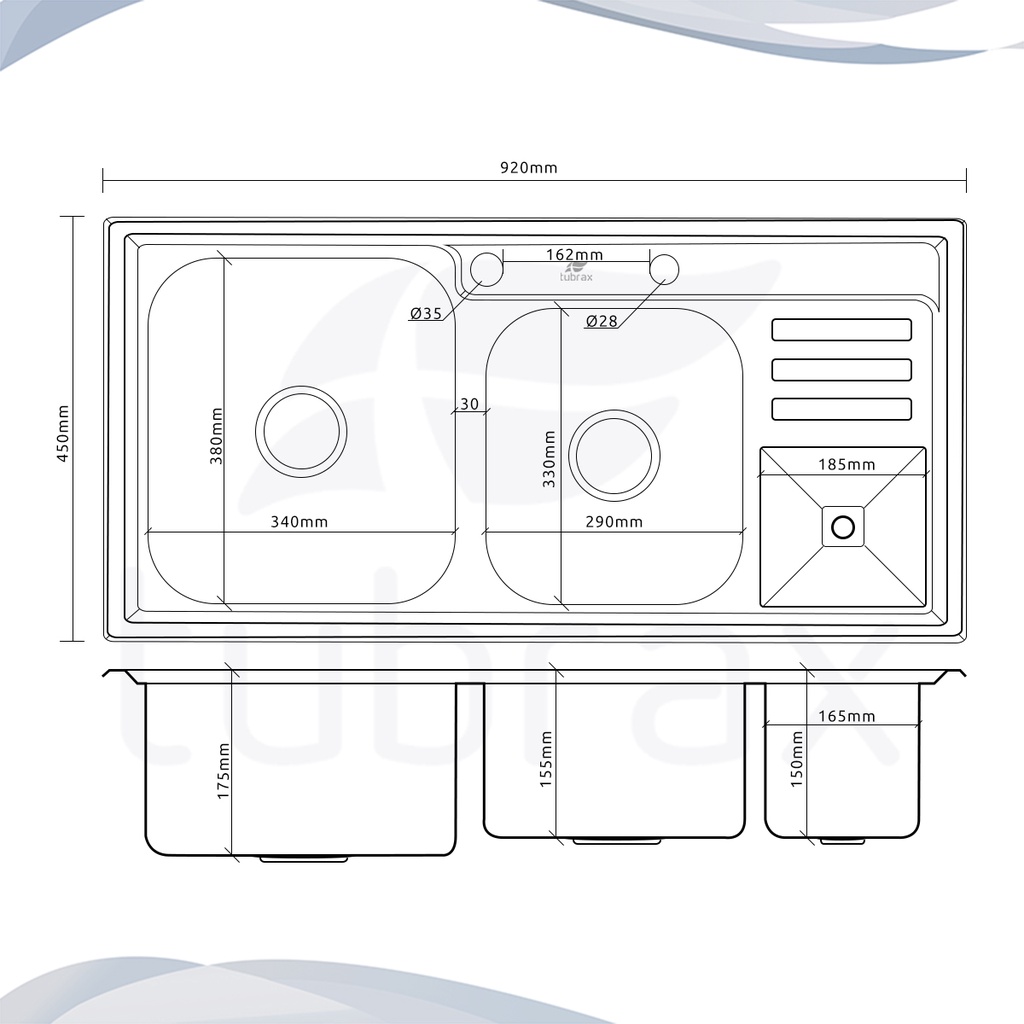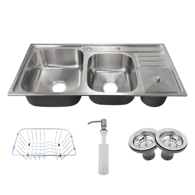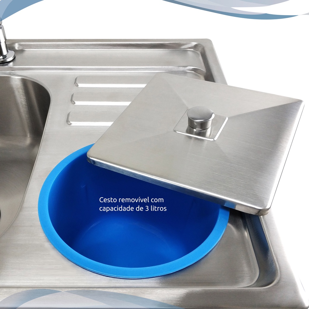 Pia Cuba Dupla de Cozinha Gourmet com Lixeira e Acessórios em Inox 304 - CAC0008-C - Tubrax