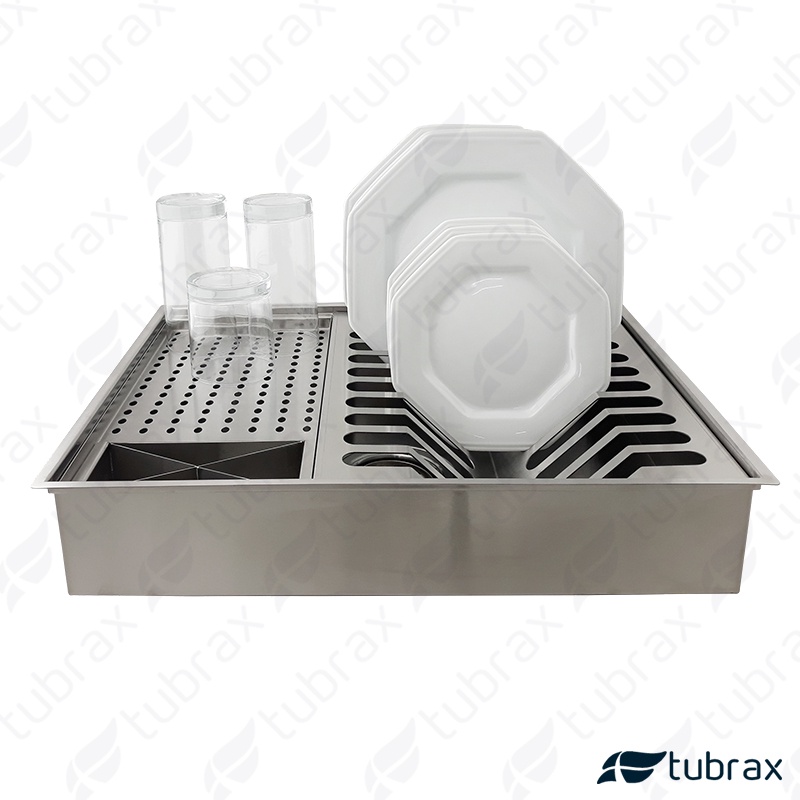Calha Canal organizador Úmido de Cozinha com Tampa Inox 304 c/ 3 módulos 50x40 - Tubrax