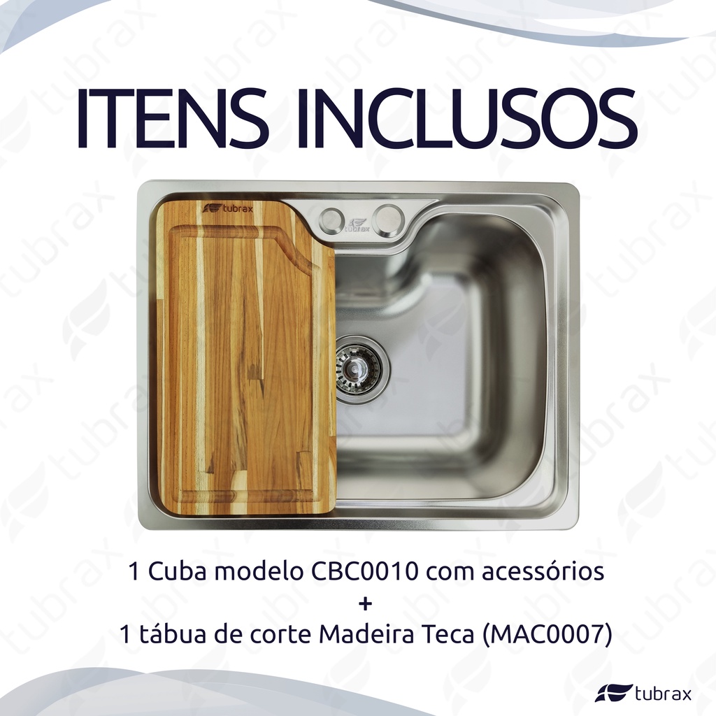 Pia Cuba de cozinha gourmet modelo CBC0010 + Tábua de Corte e Preparação de Alimentos Tubrax