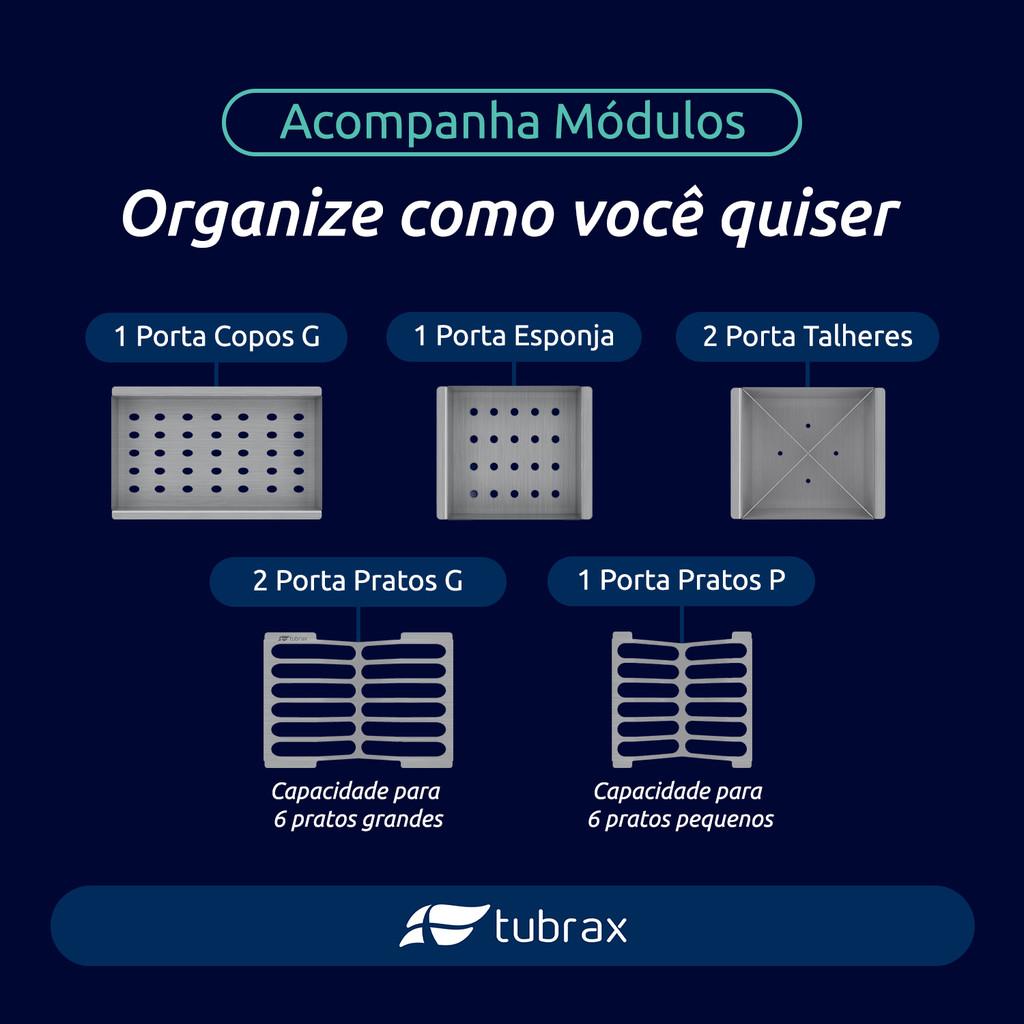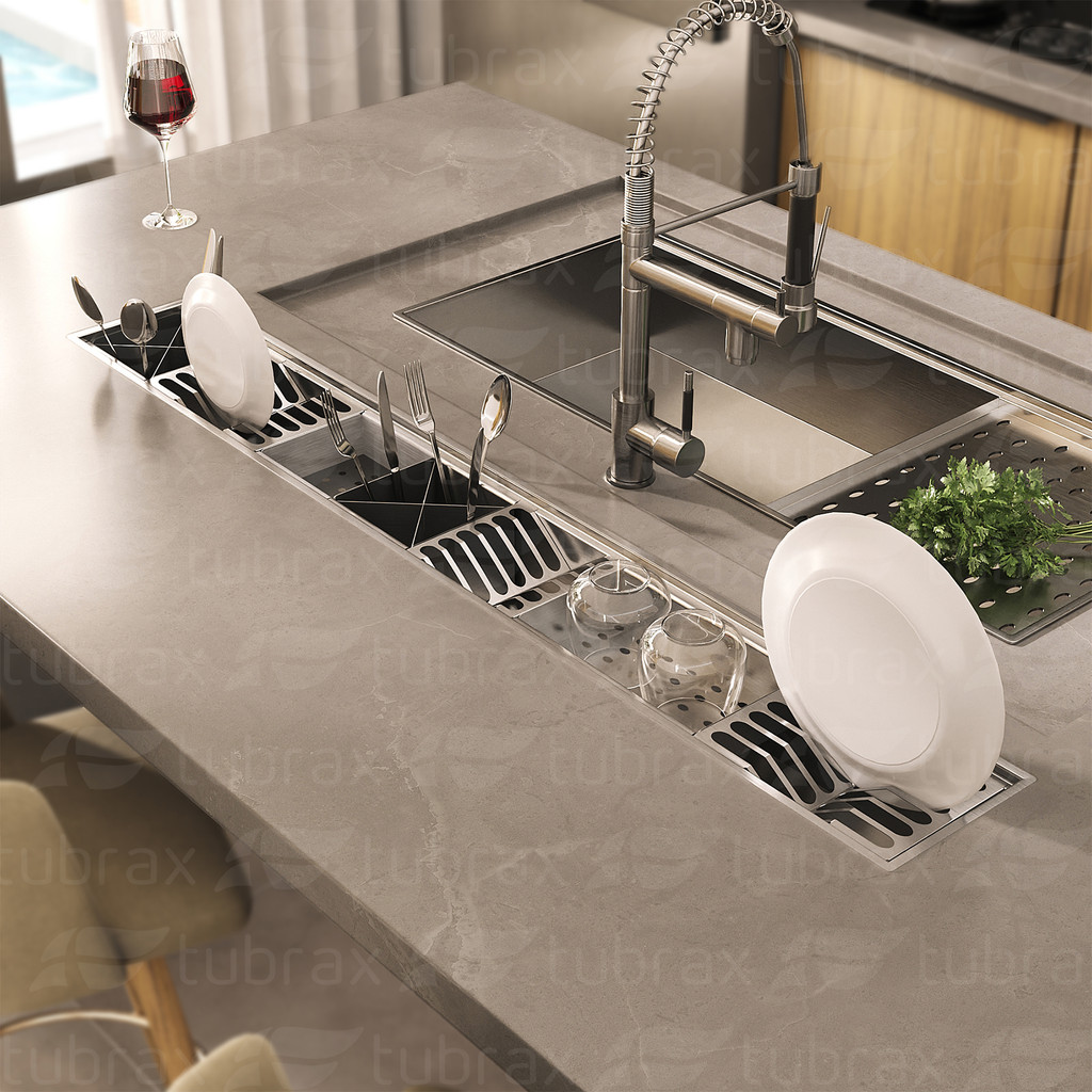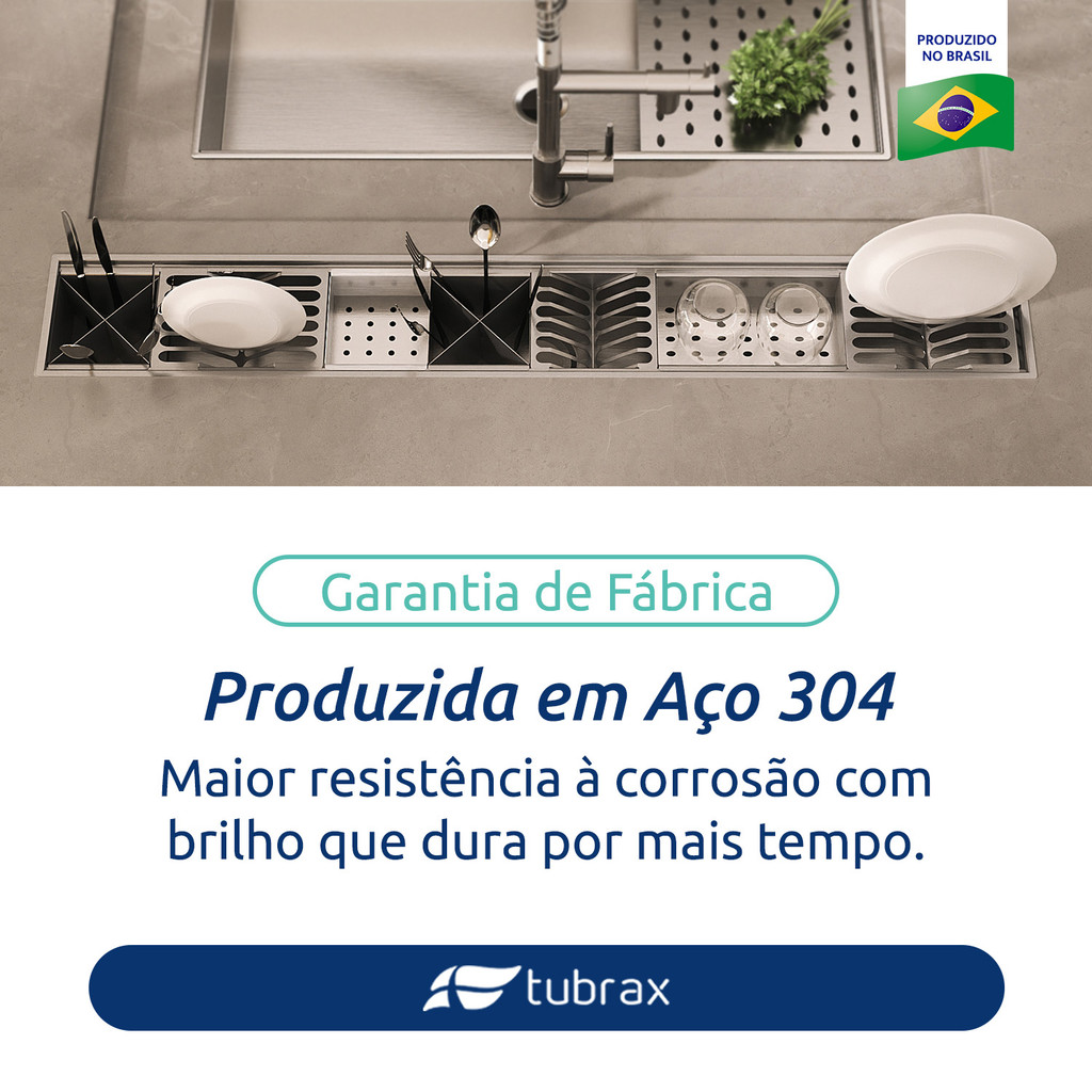 Canal organizador 125x12 para cozinha produzido em aço inox com acessórios - UAC0008-N